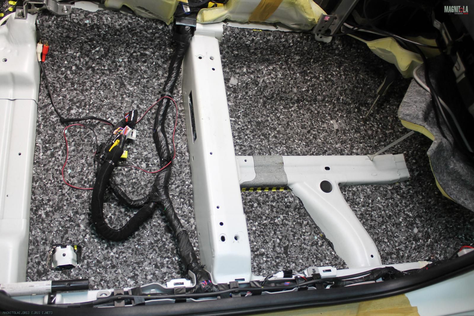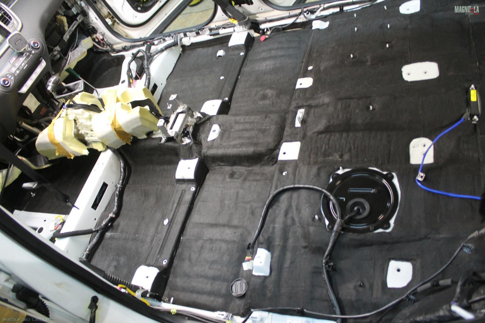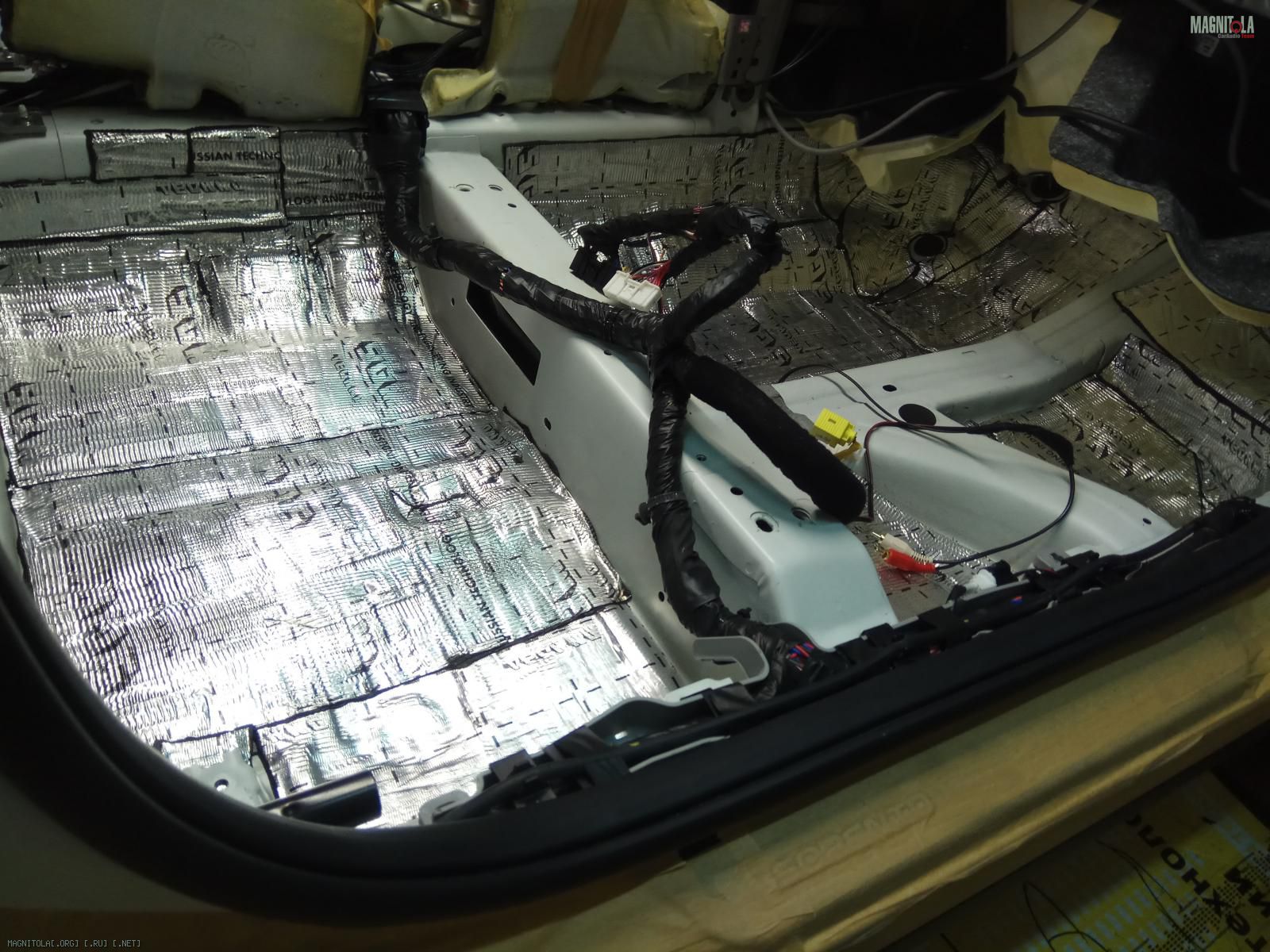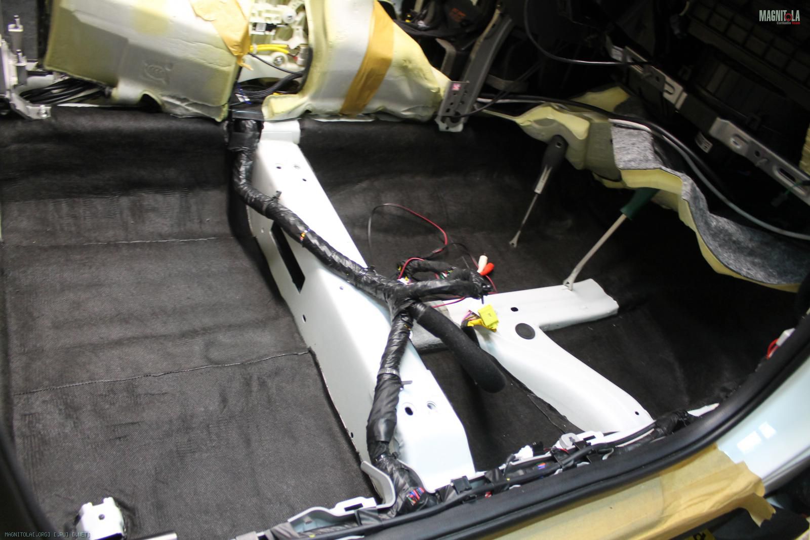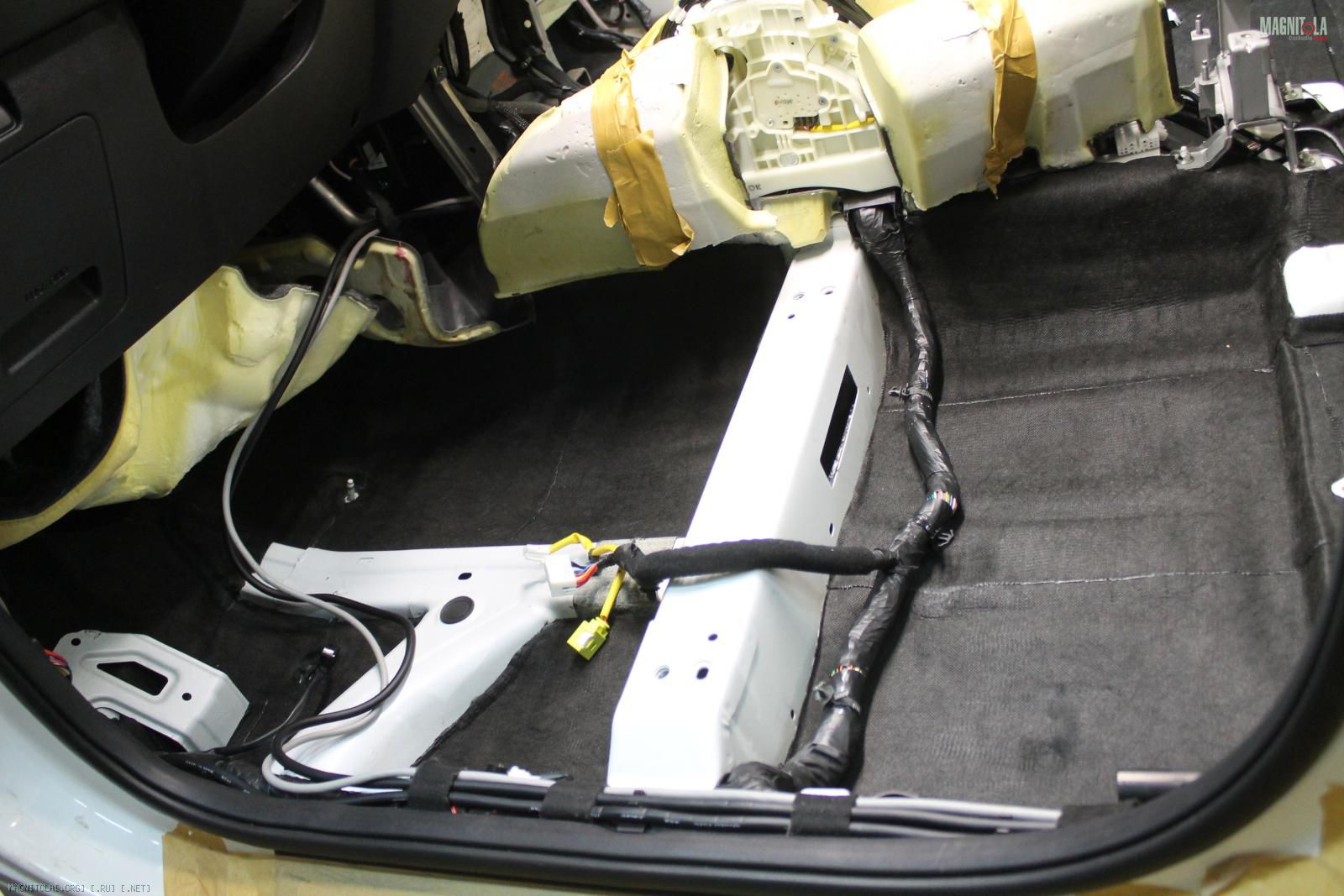 За ковром войлок высокой плотности 10-15мм, далее еще слой войлока вместе с вспененной резиной толщиной 2-8см, далее уже штатная виброизоляция...