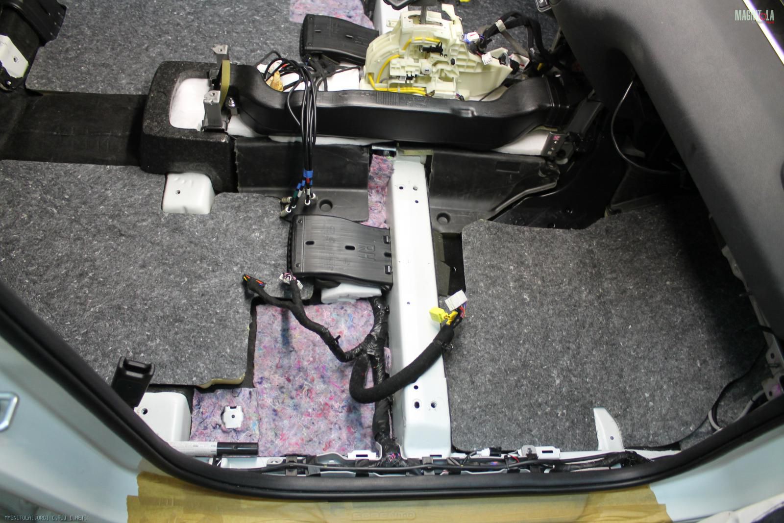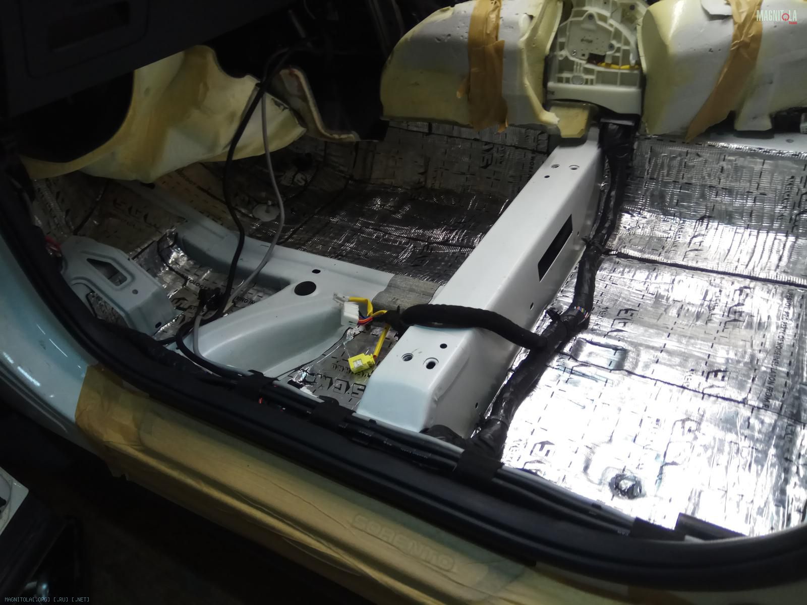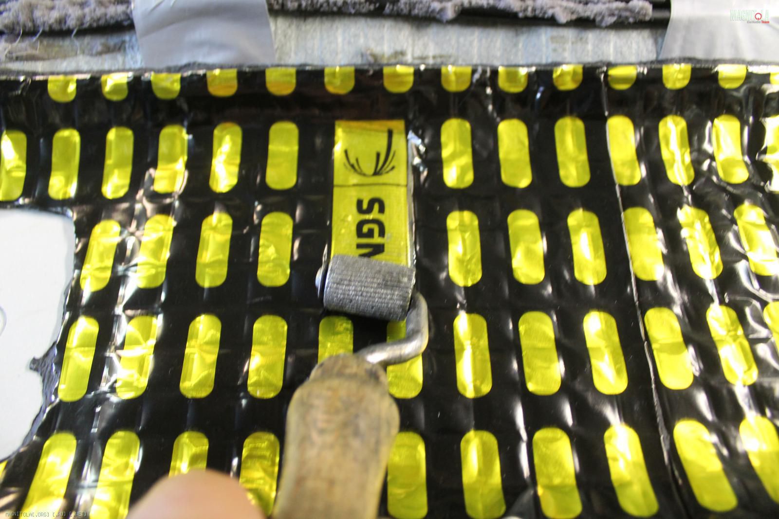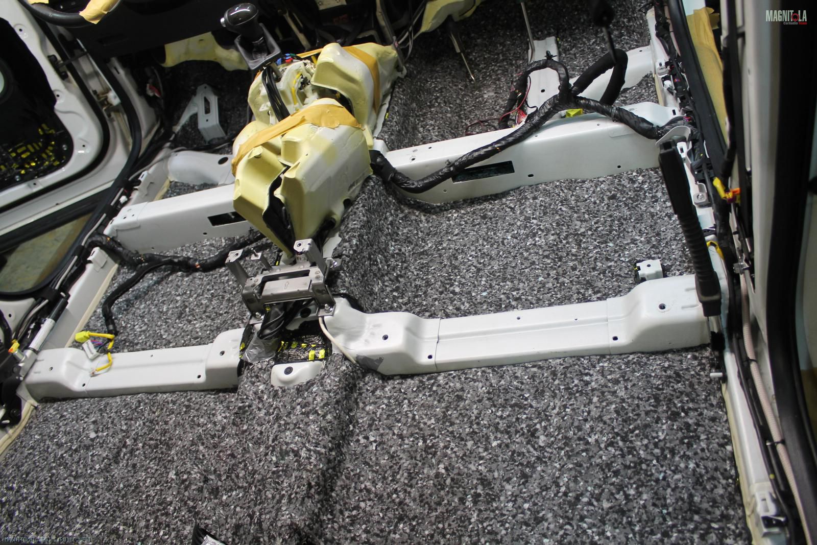 Заполняем полости пола и центрального тоннеля микроволокном SGM Pro.