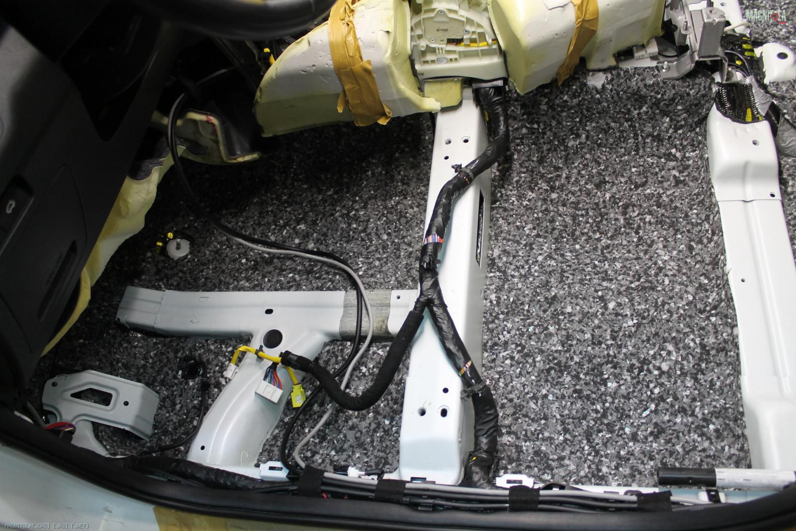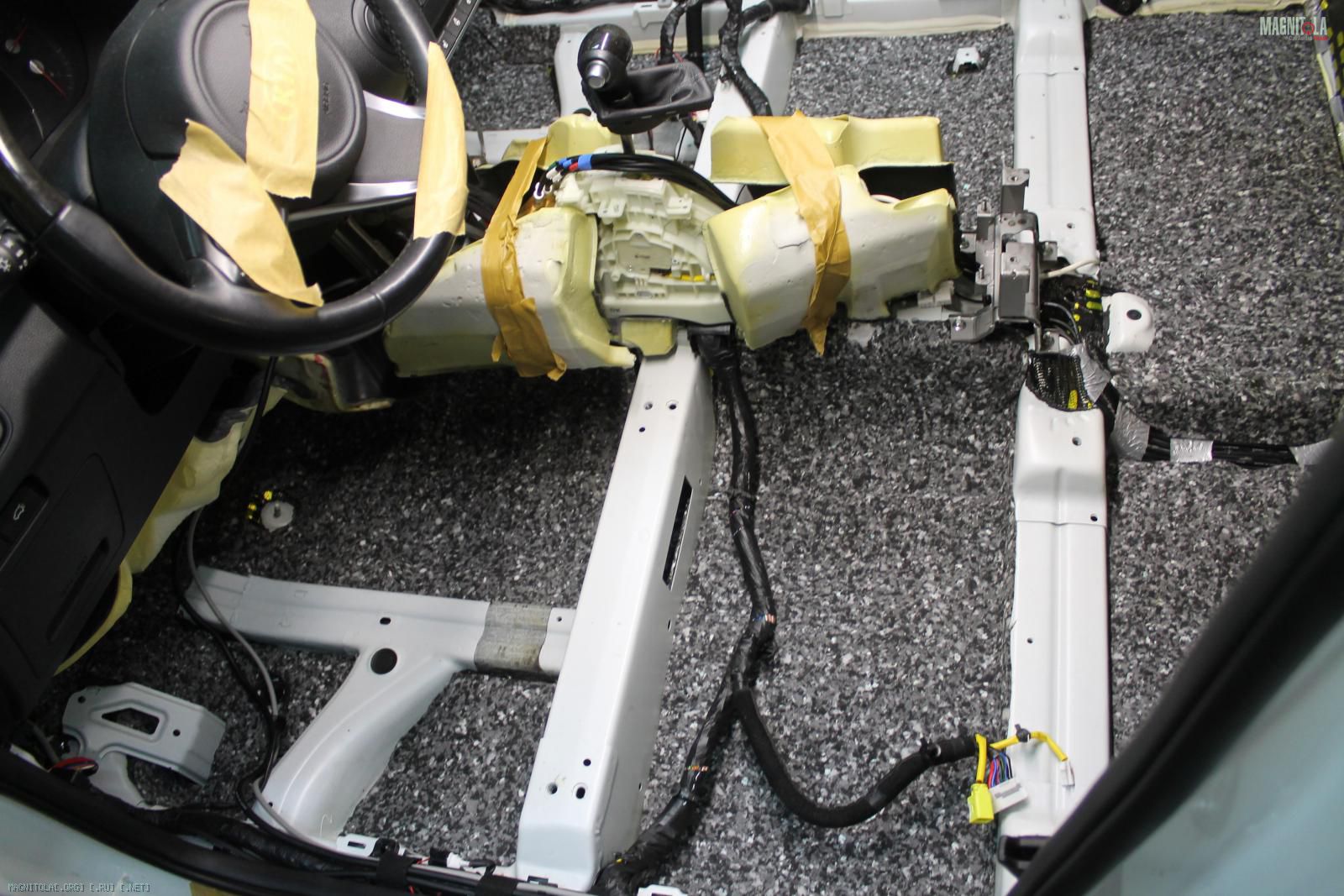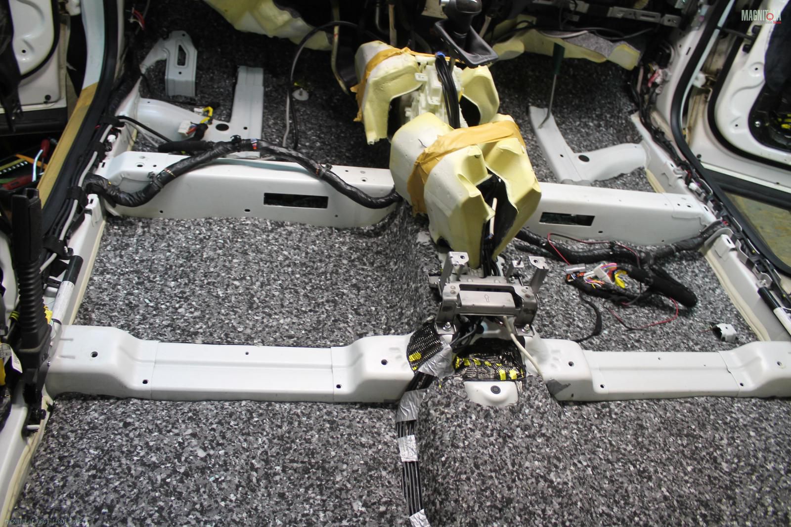Штатная шумка пола, которую обычно скрывают фирмы по шумоизоляции, показывающие голый пол.