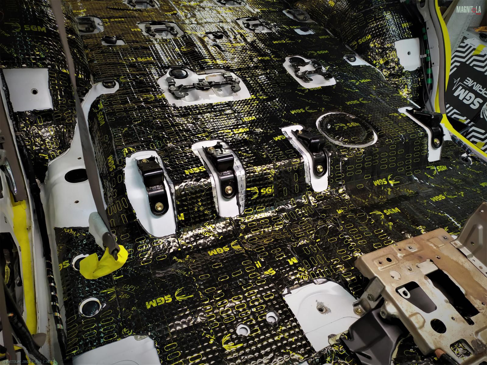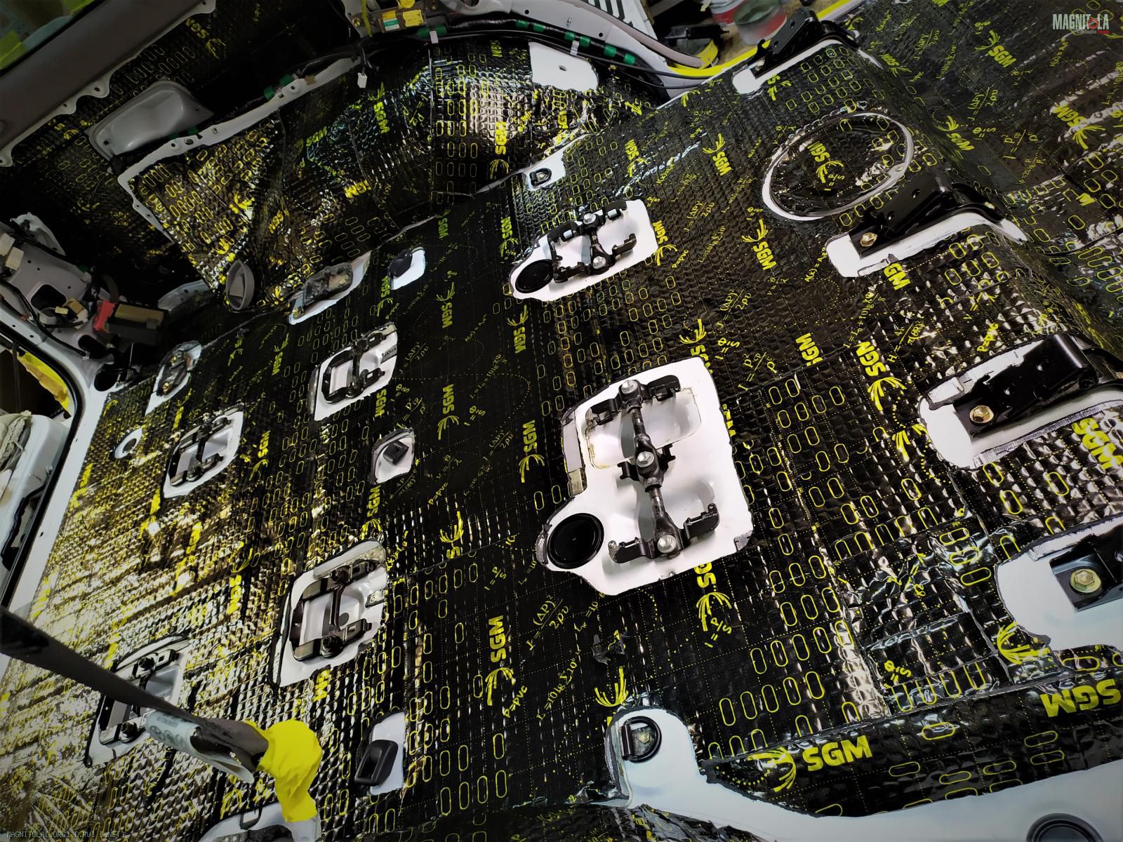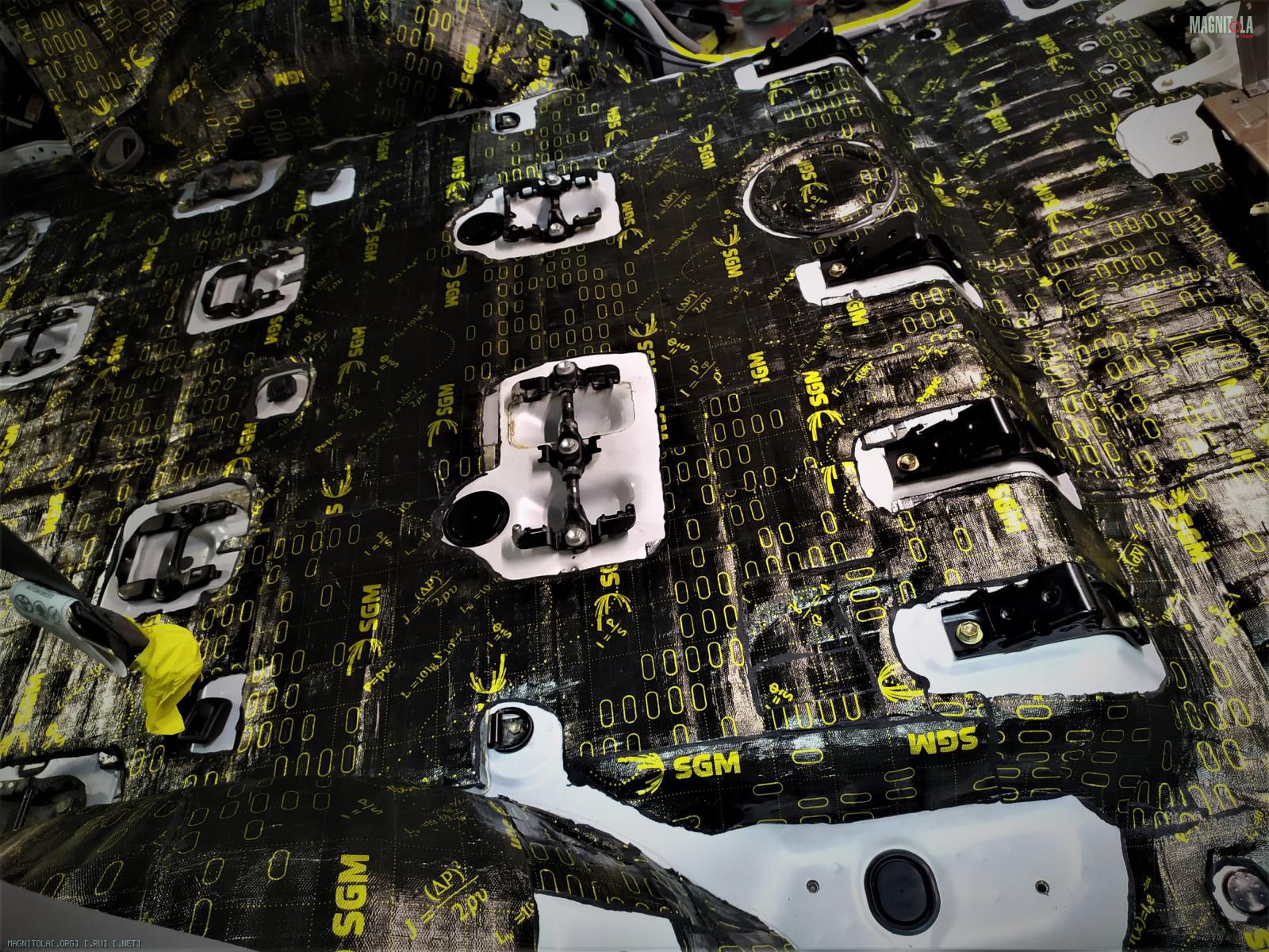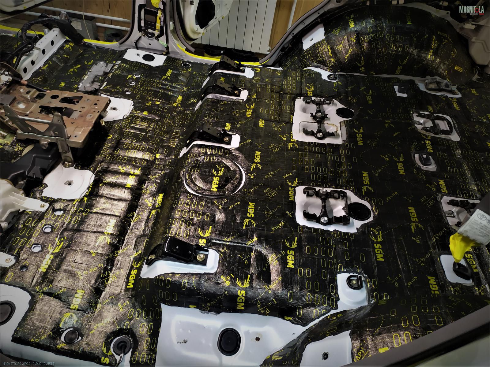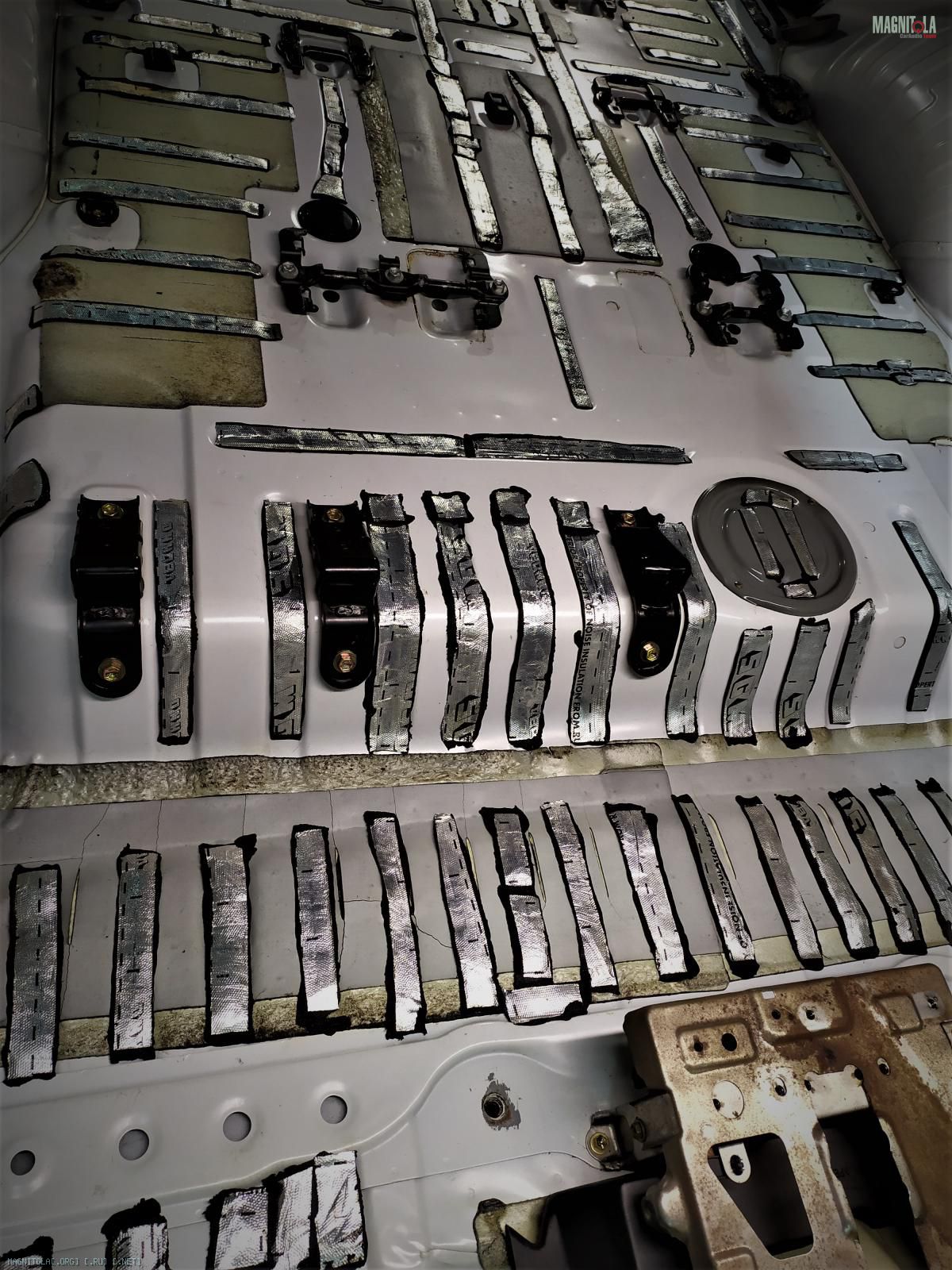 На лицевой металл наносим вибру 4мм, цельным листом, греем, прикатываем.