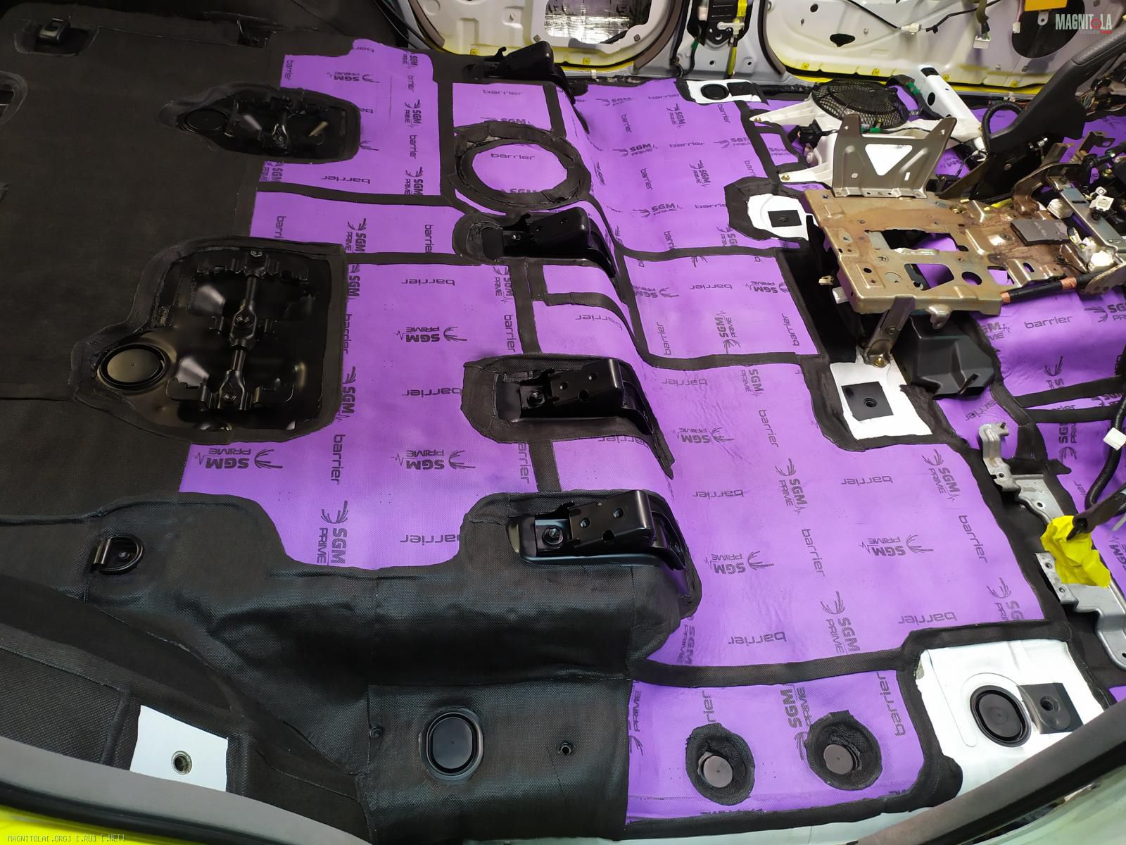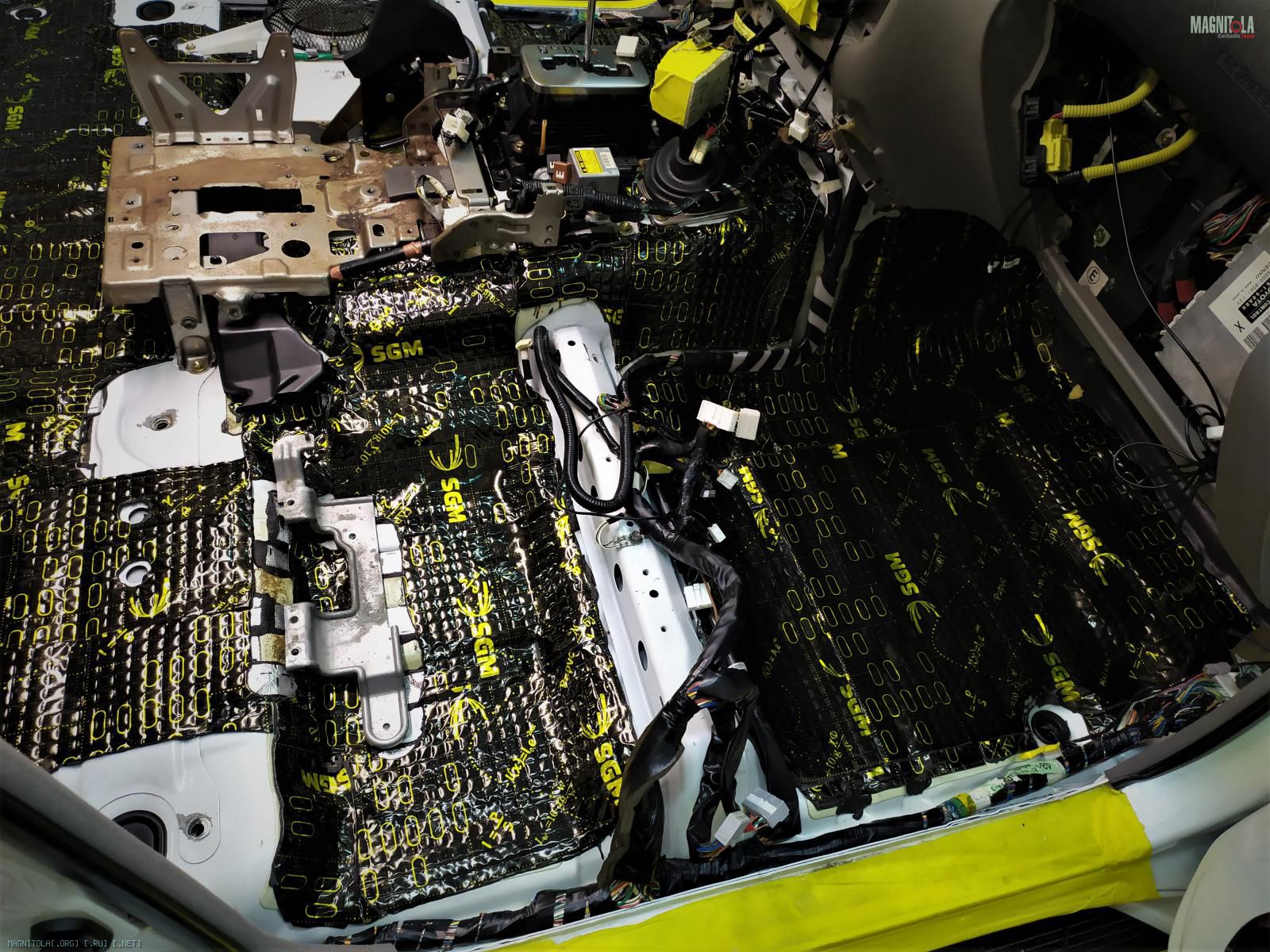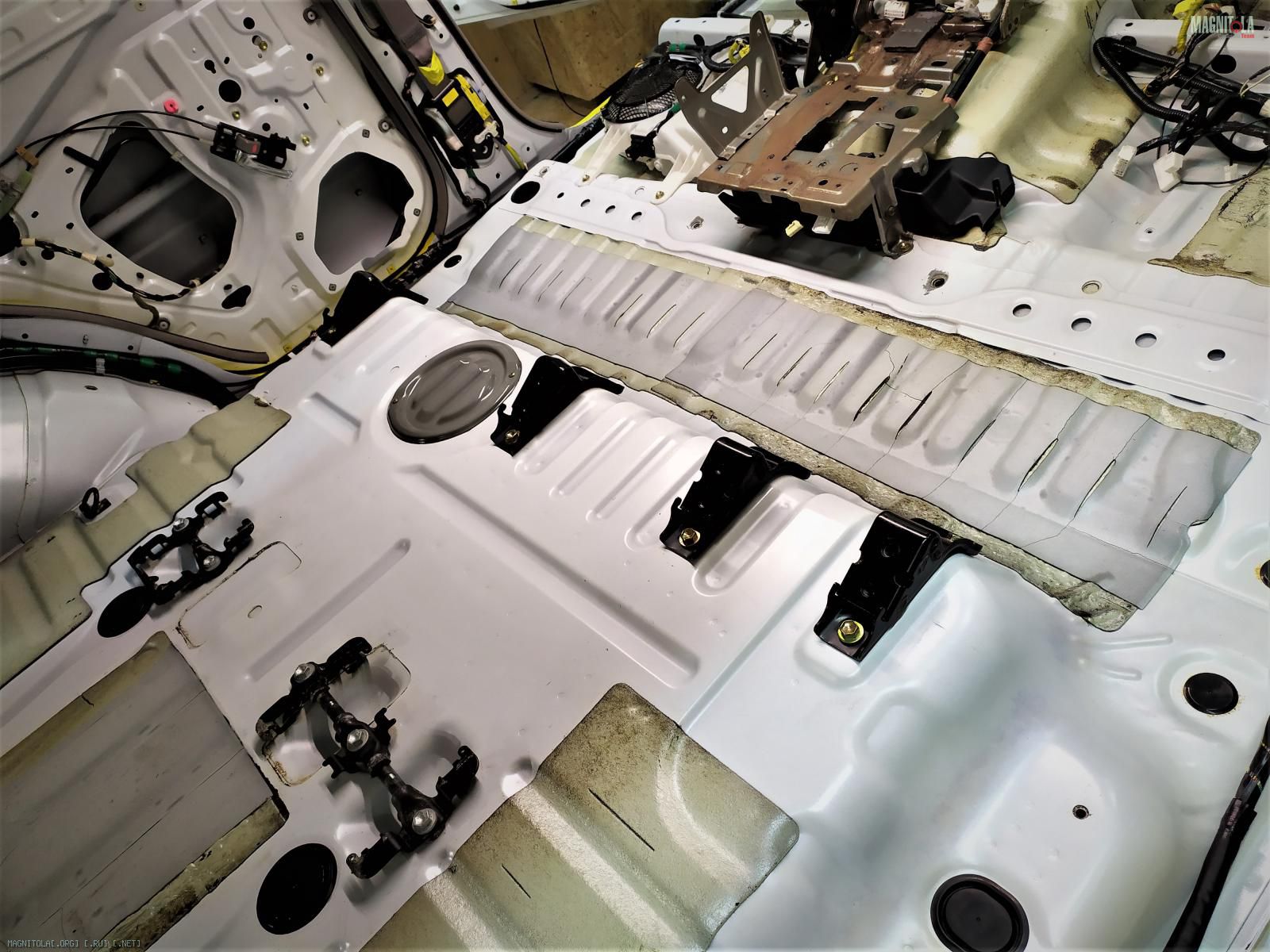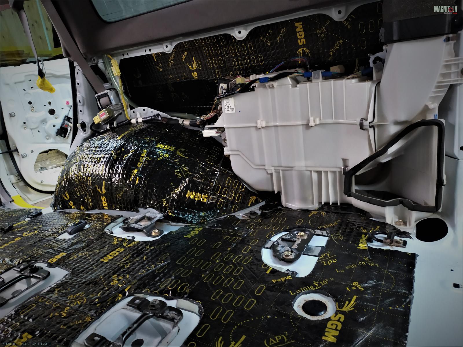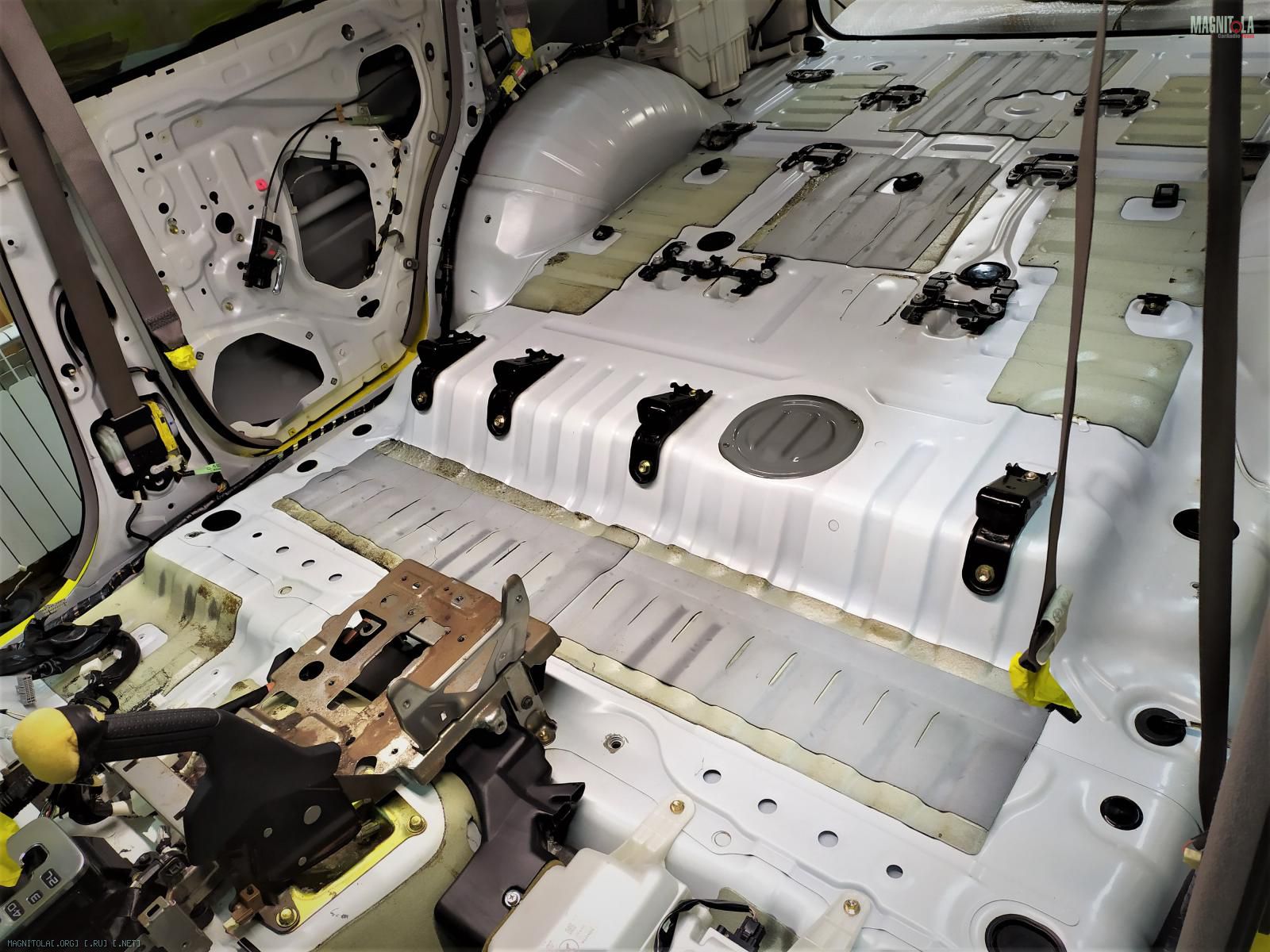 На лицевой металл наносим вибру 4мм, цельным листом, греем, прикатываем.