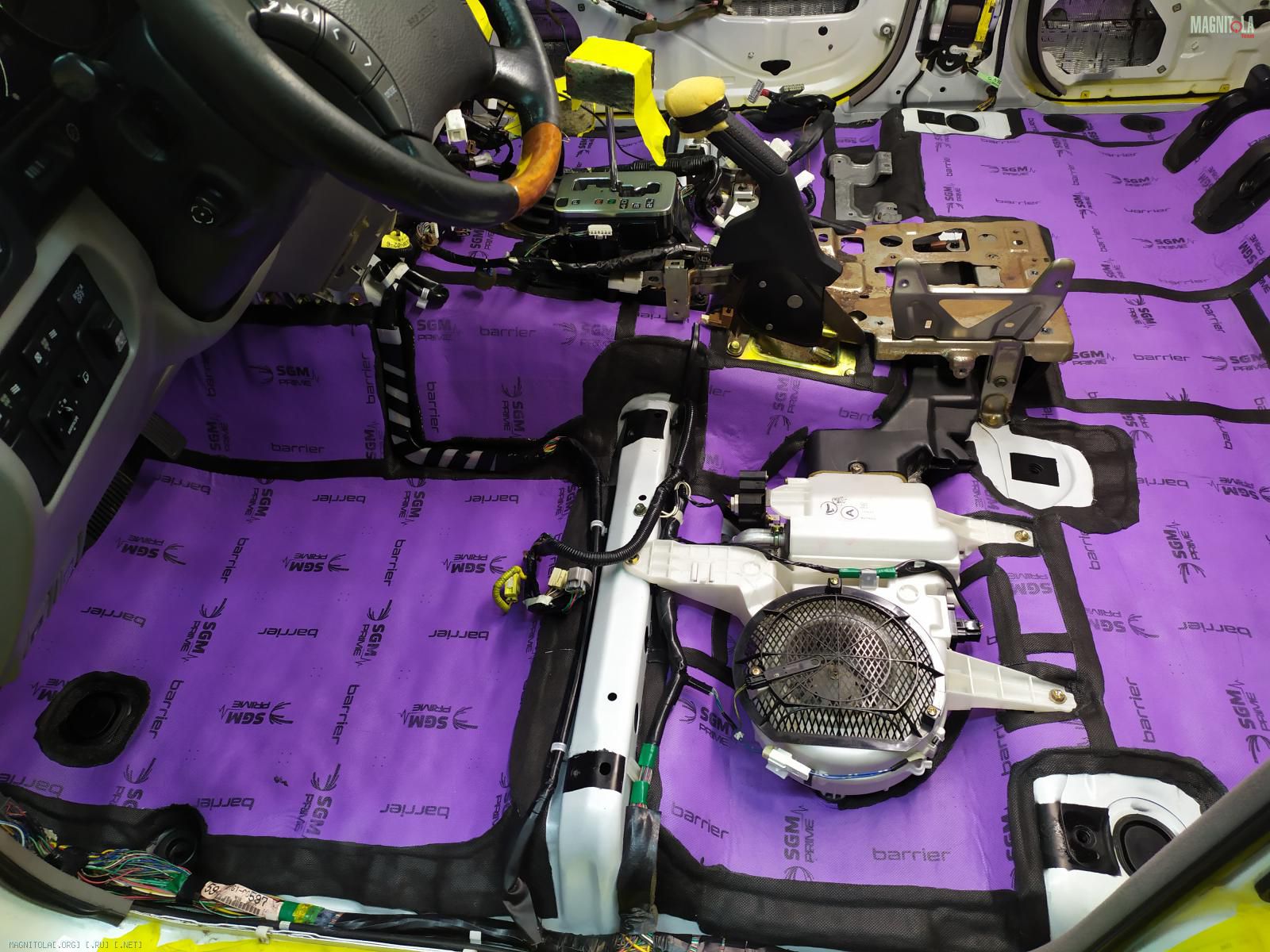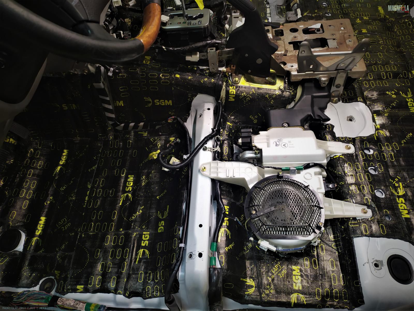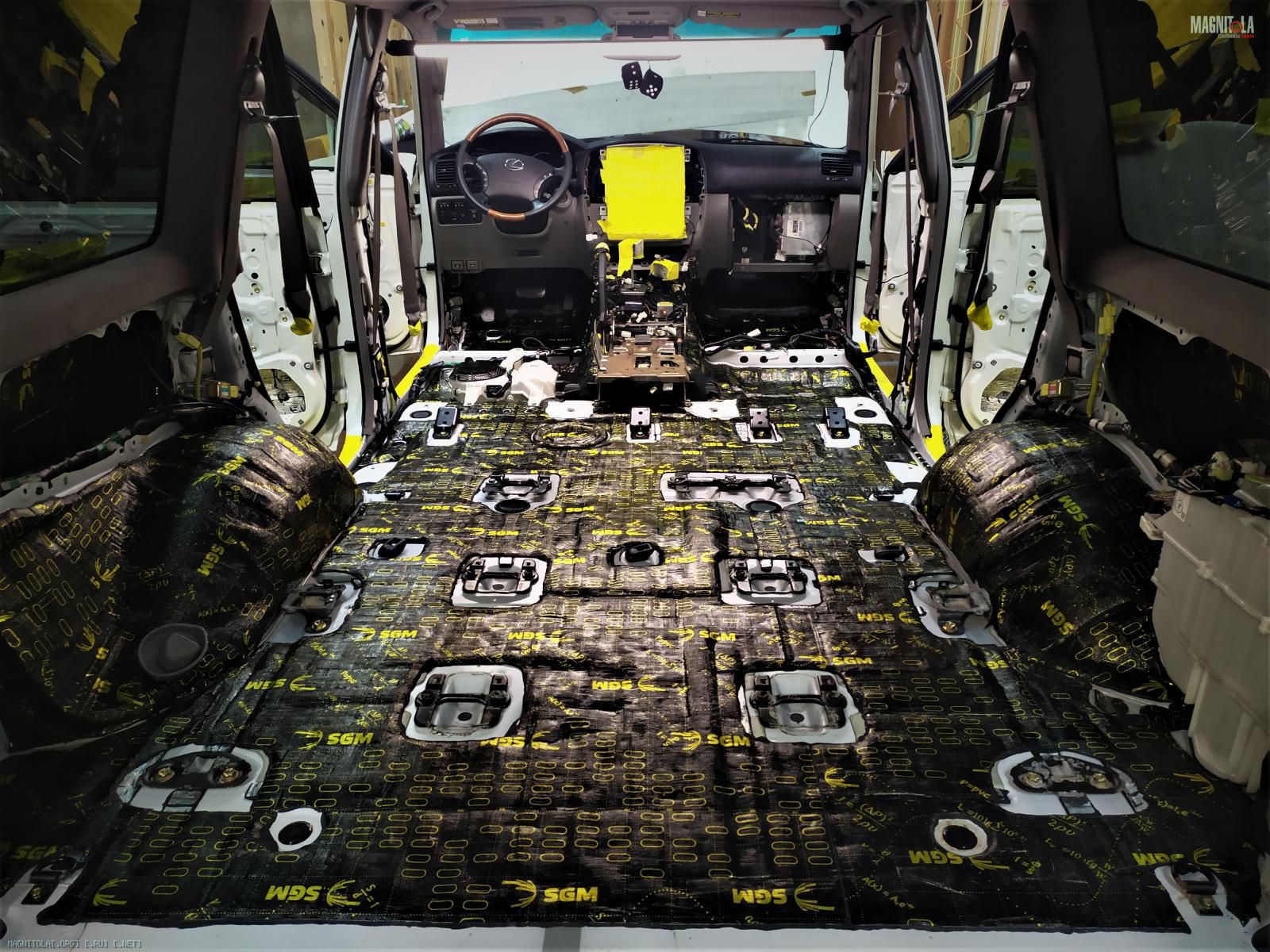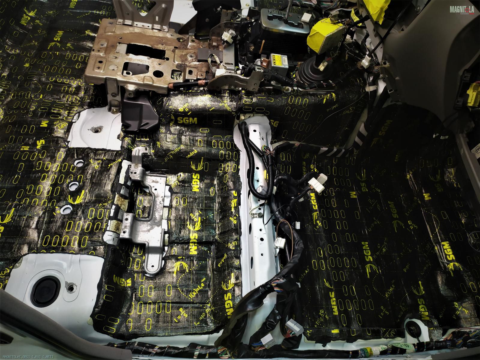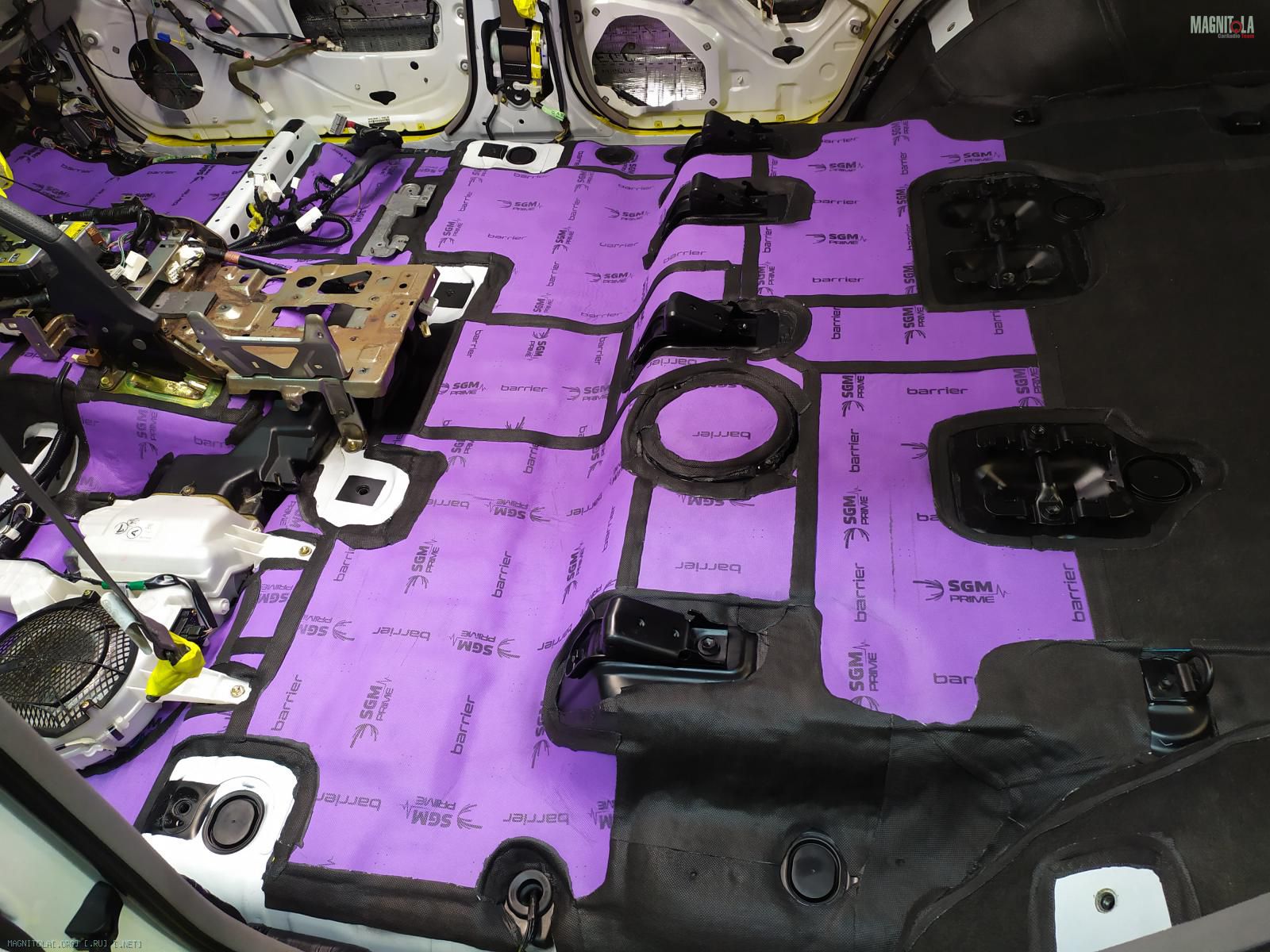 На лицевой металл наносим вибру 4мм, цельным листом, греем, прикатываем.