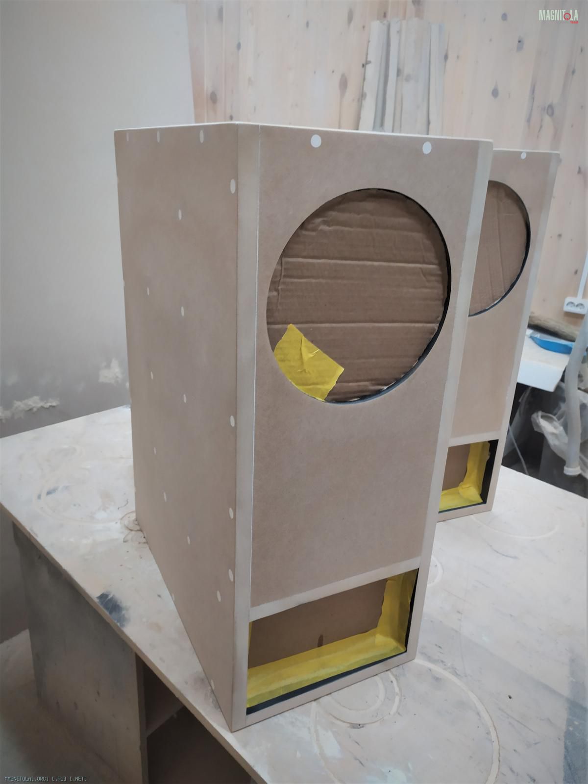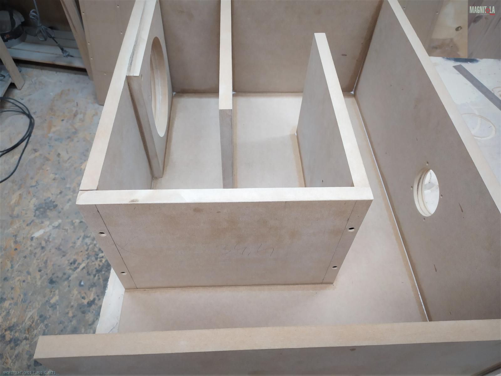 V=35л, Fb=30гц, стенки 19мм, лицевая 38мм.