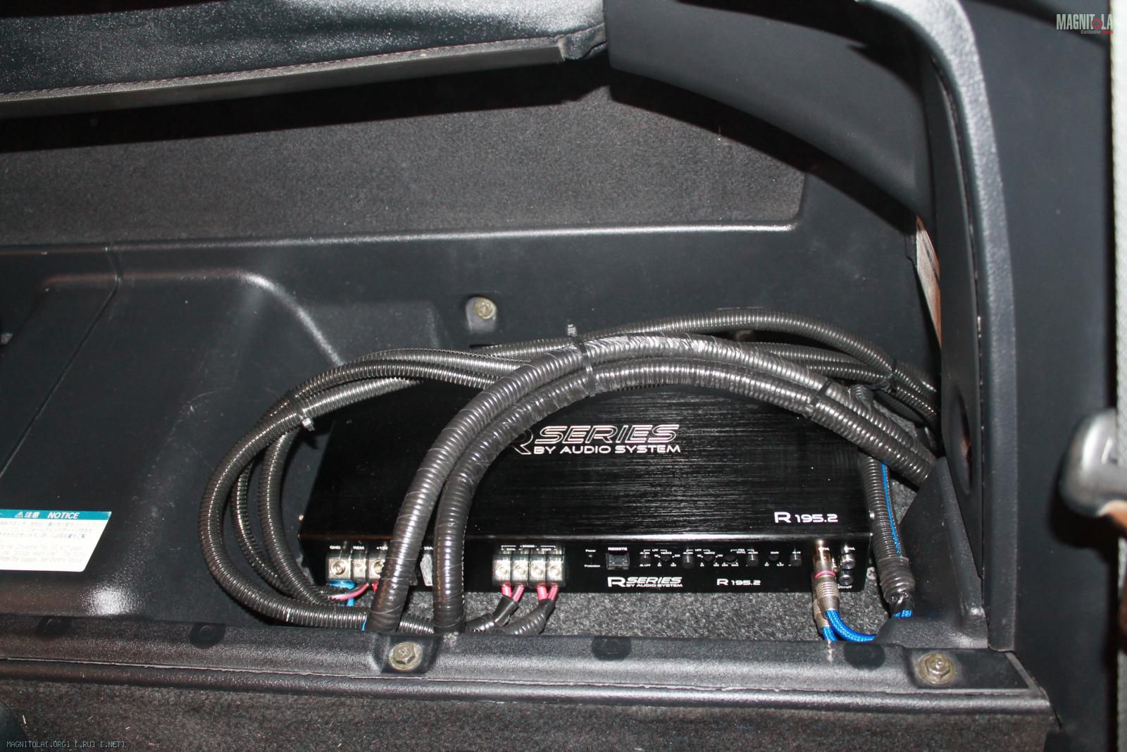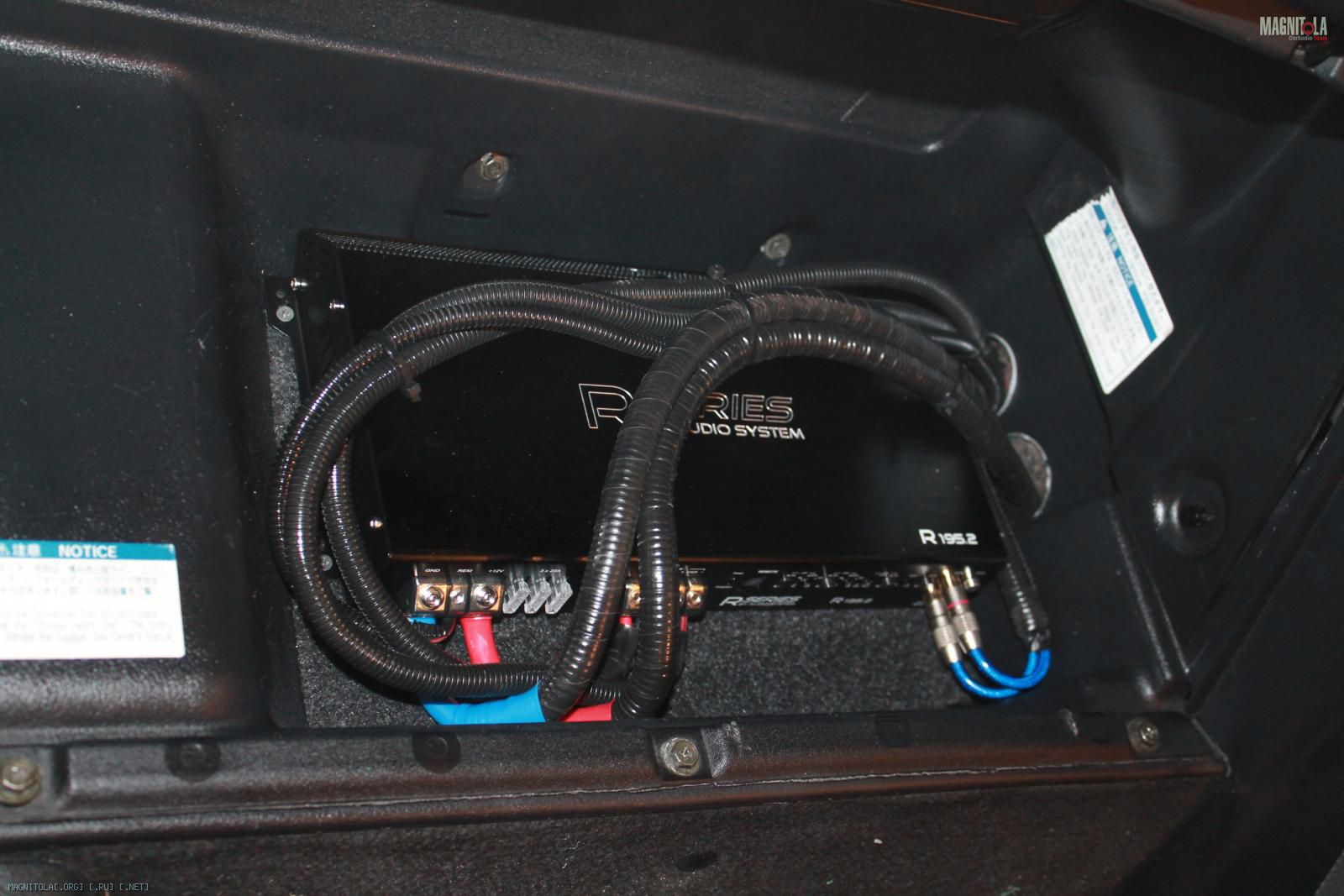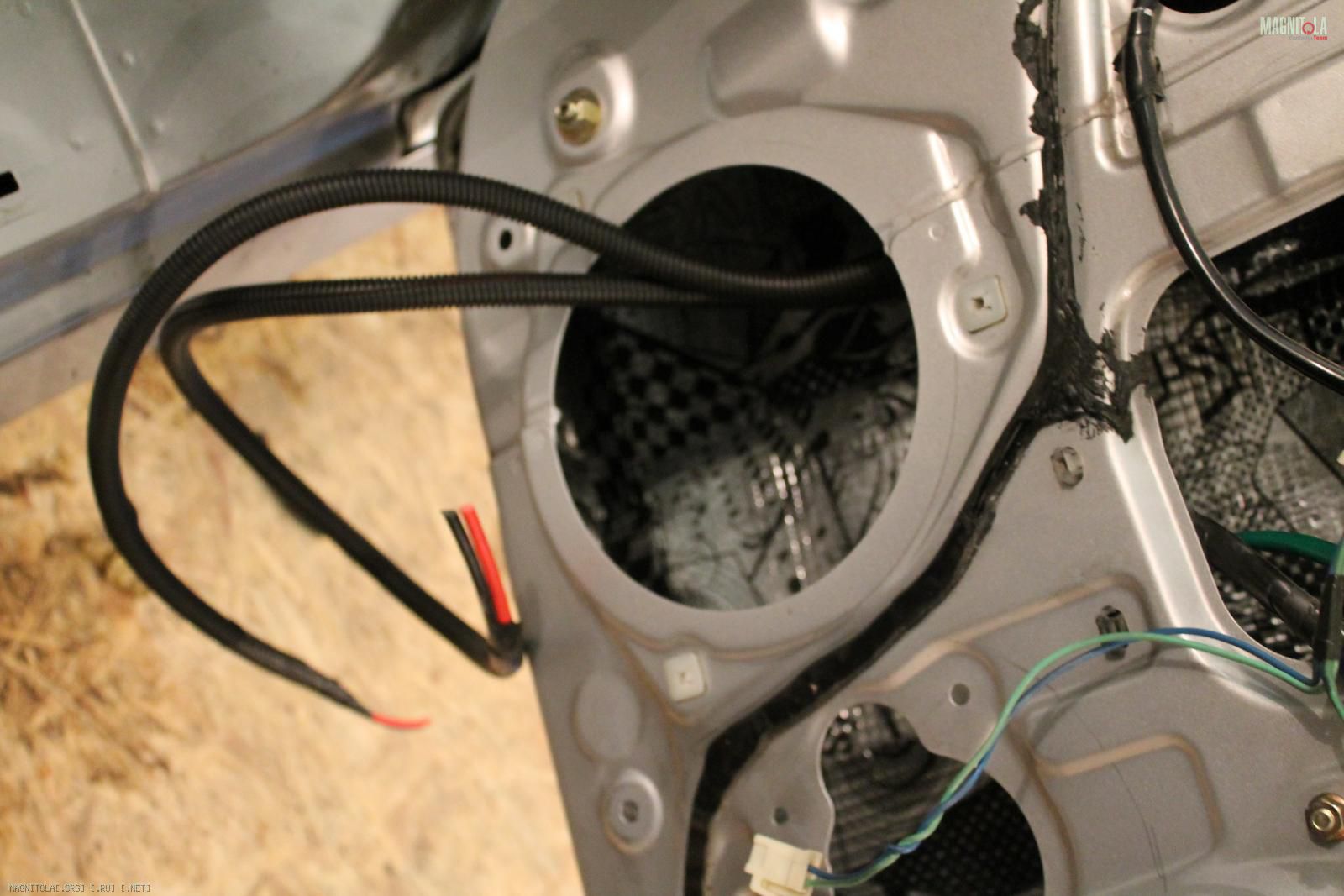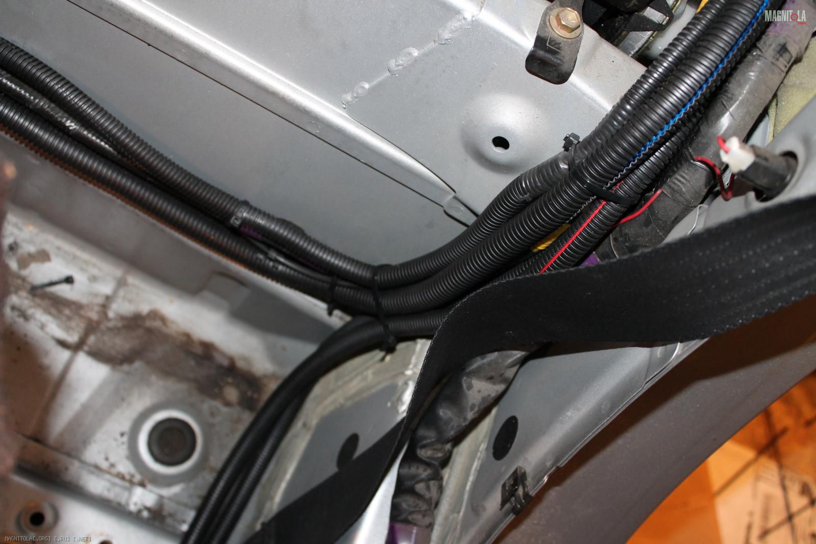 Протяжка акустических проводов в двери, на стойки, вязка жгутов силовых проводов(на каждый усилитель по 35мм2 плюс и минус), межблочники, наведен порядок с силой для магнитолы, установлено ГУ