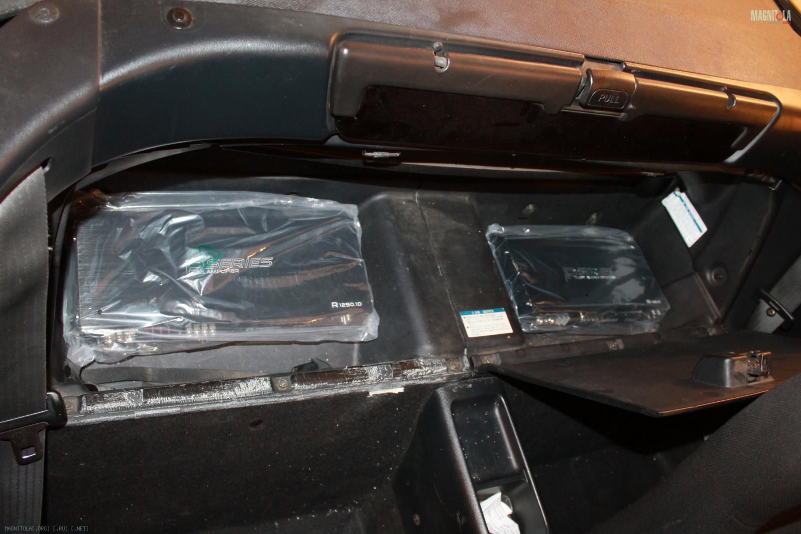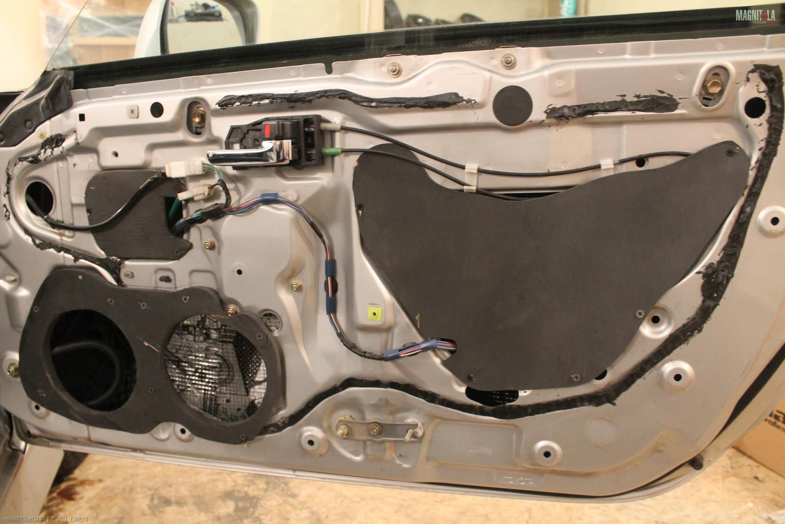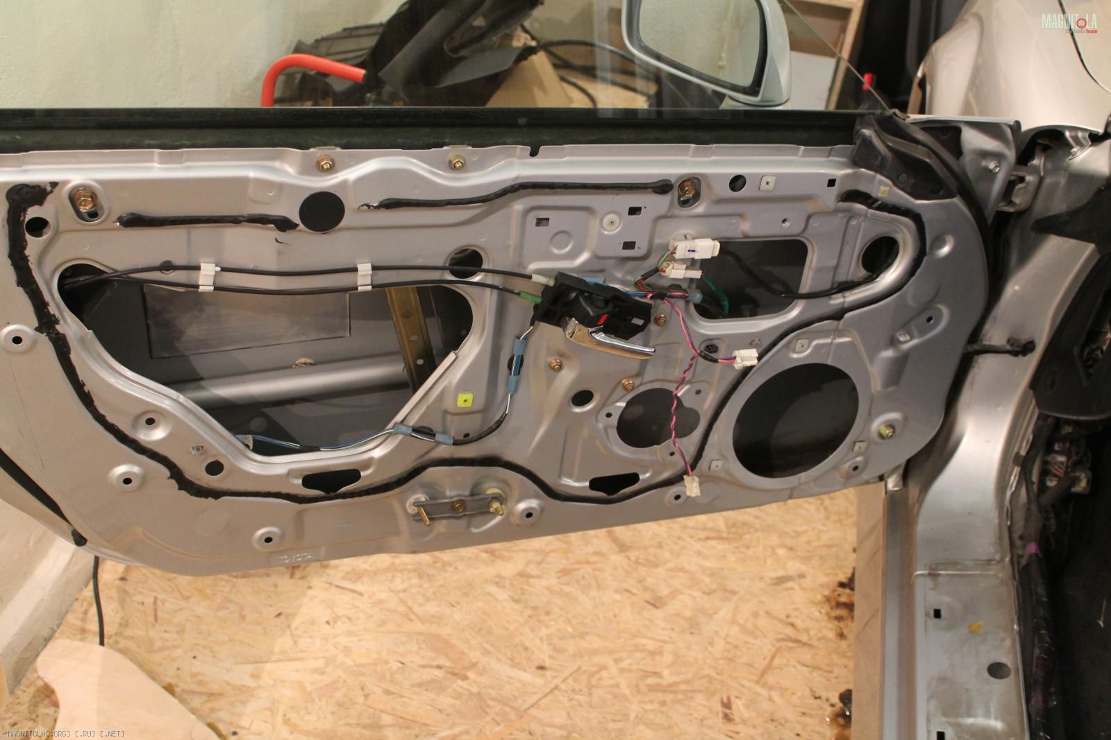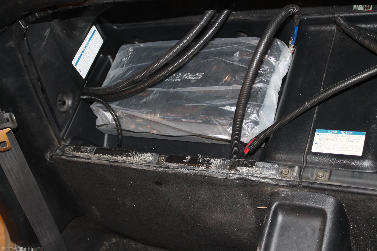 Протяжка акустических проводов в двери, на стойки, вязка жгутов силовых проводов(на каждый усилитель по 35мм2 плюс и минус), межблочники, наведен порядок с силой для магнитолы, установлено ГУ