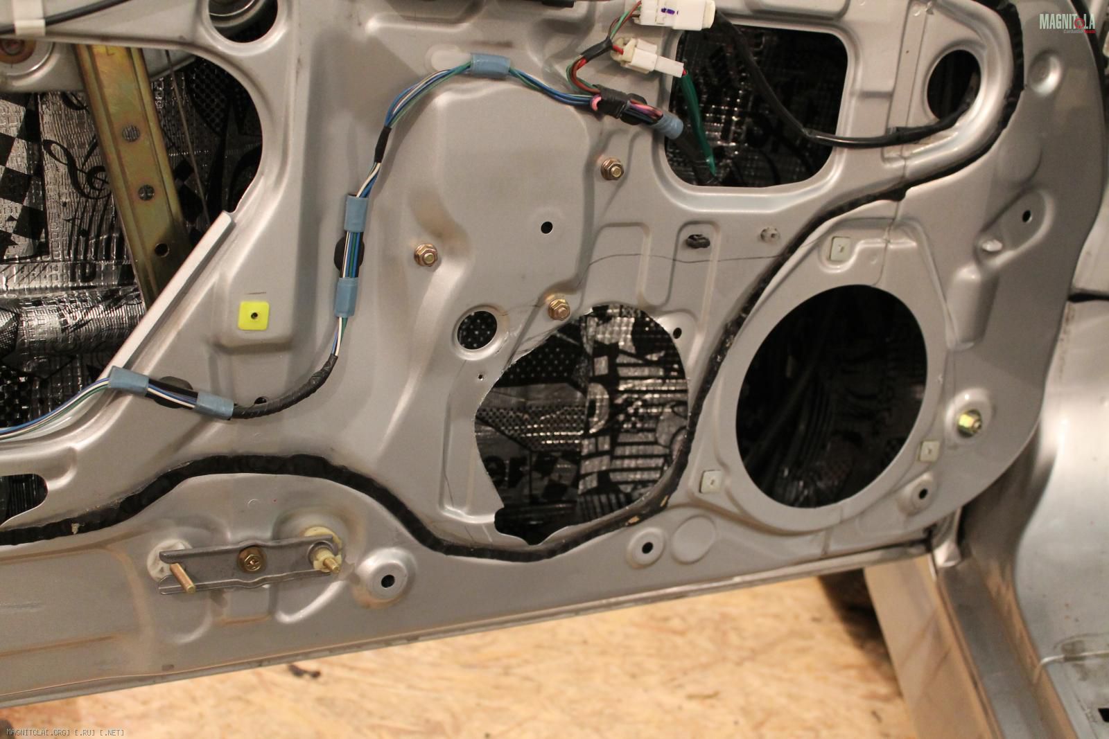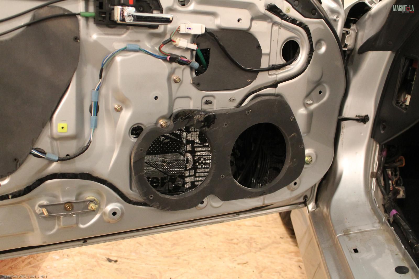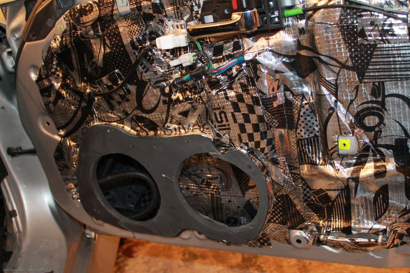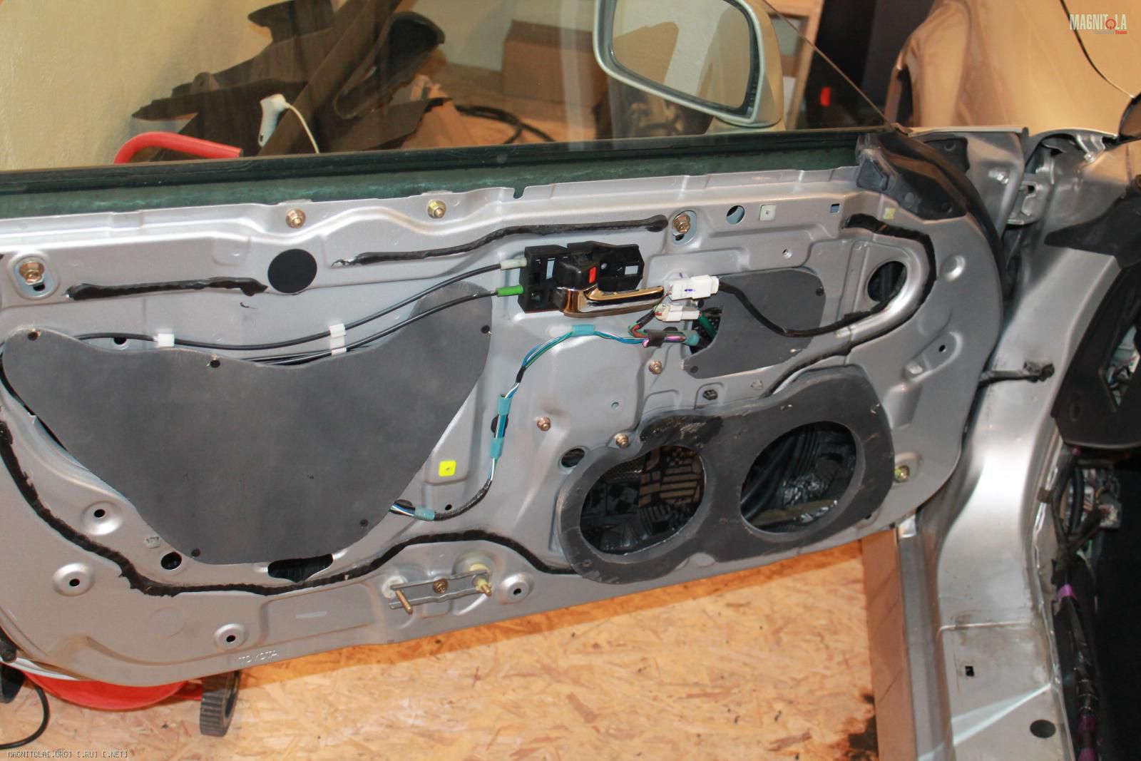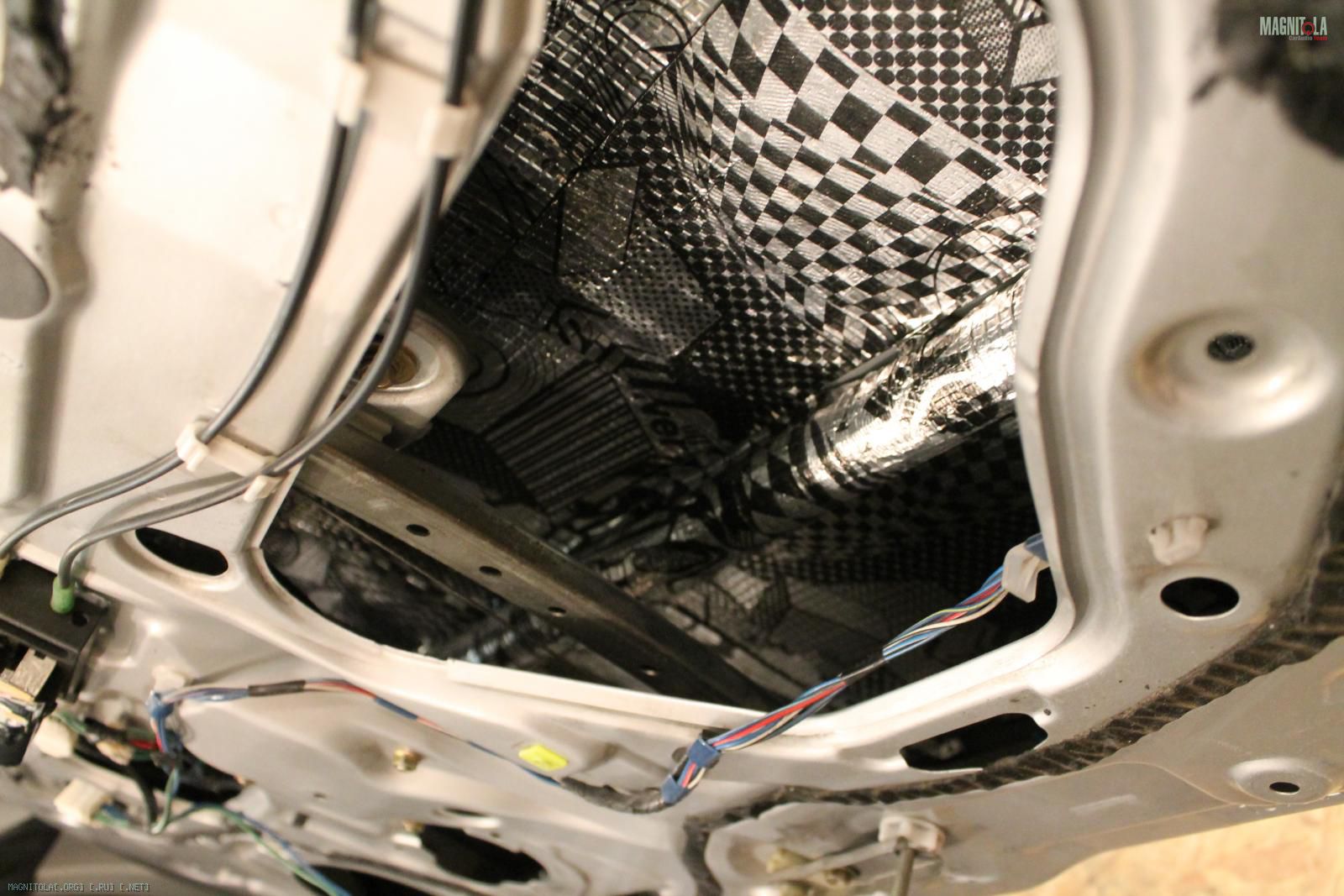 Протяжка акустических проводов в двери, на стойки, вязка жгутов силовых проводов(на каждый усилитель по 35мм2 плюс и минус), межблочники, наведен порядок с силой для магнитолы, установлено ГУ
