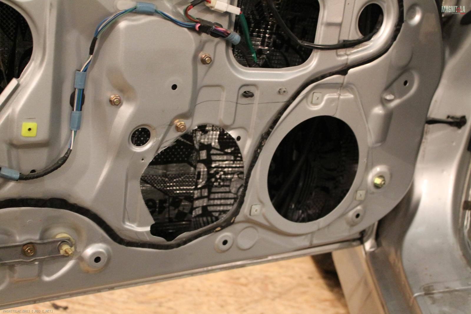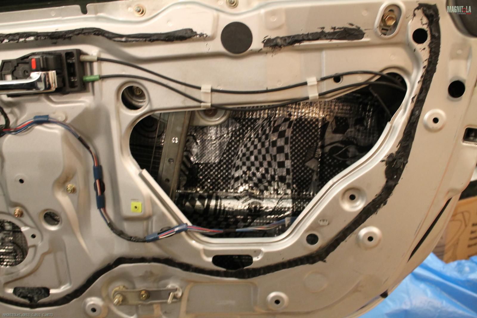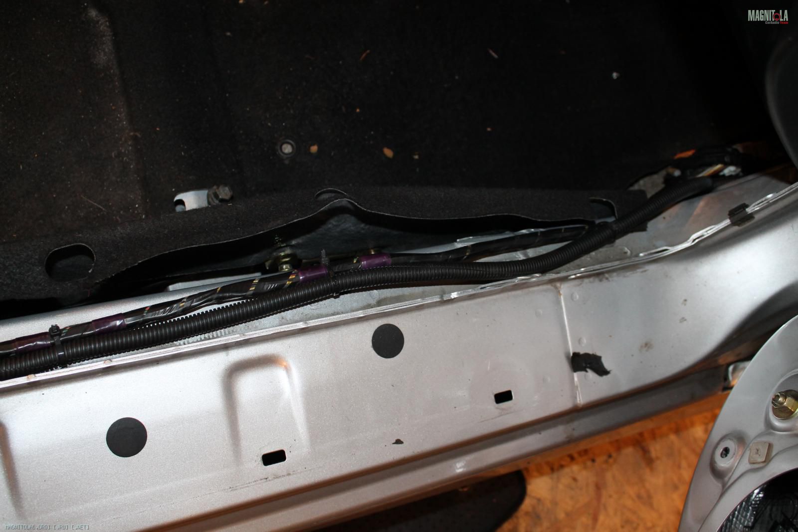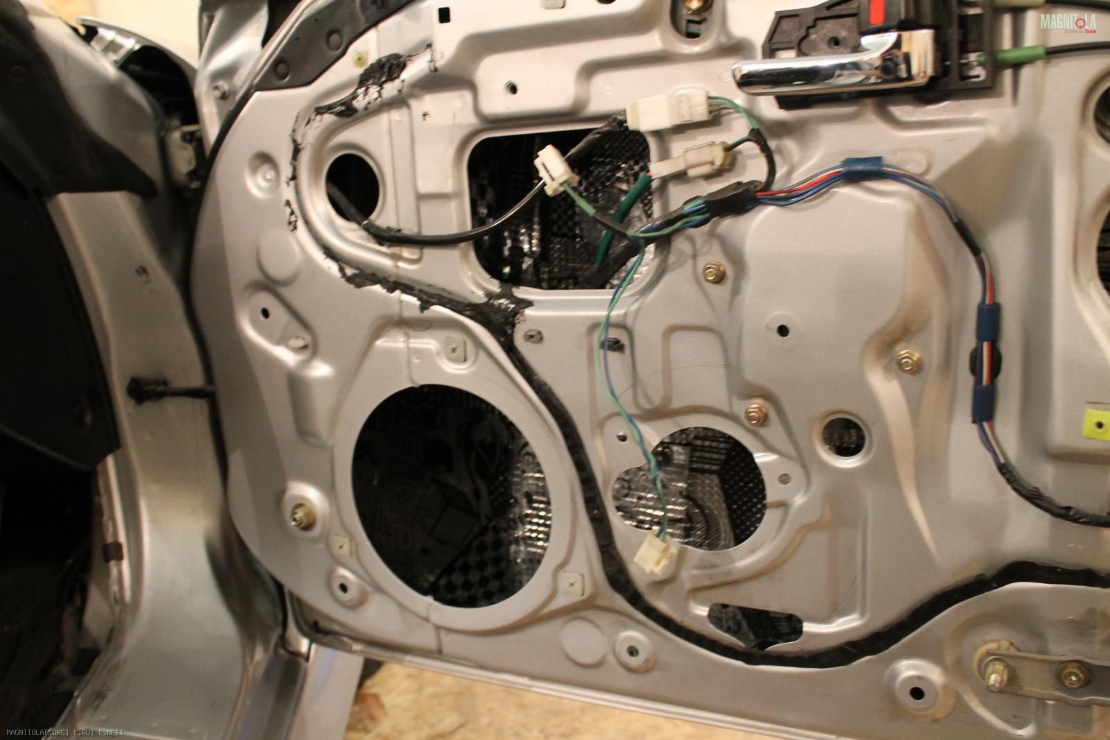 Протяжка акустических проводов в двери, на стойки, вязка жгутов силовых проводов(на каждый усилитель по 35мм2 плюс и минус), межблочники, наведен порядок с силой для магнитолы, установлено ГУ