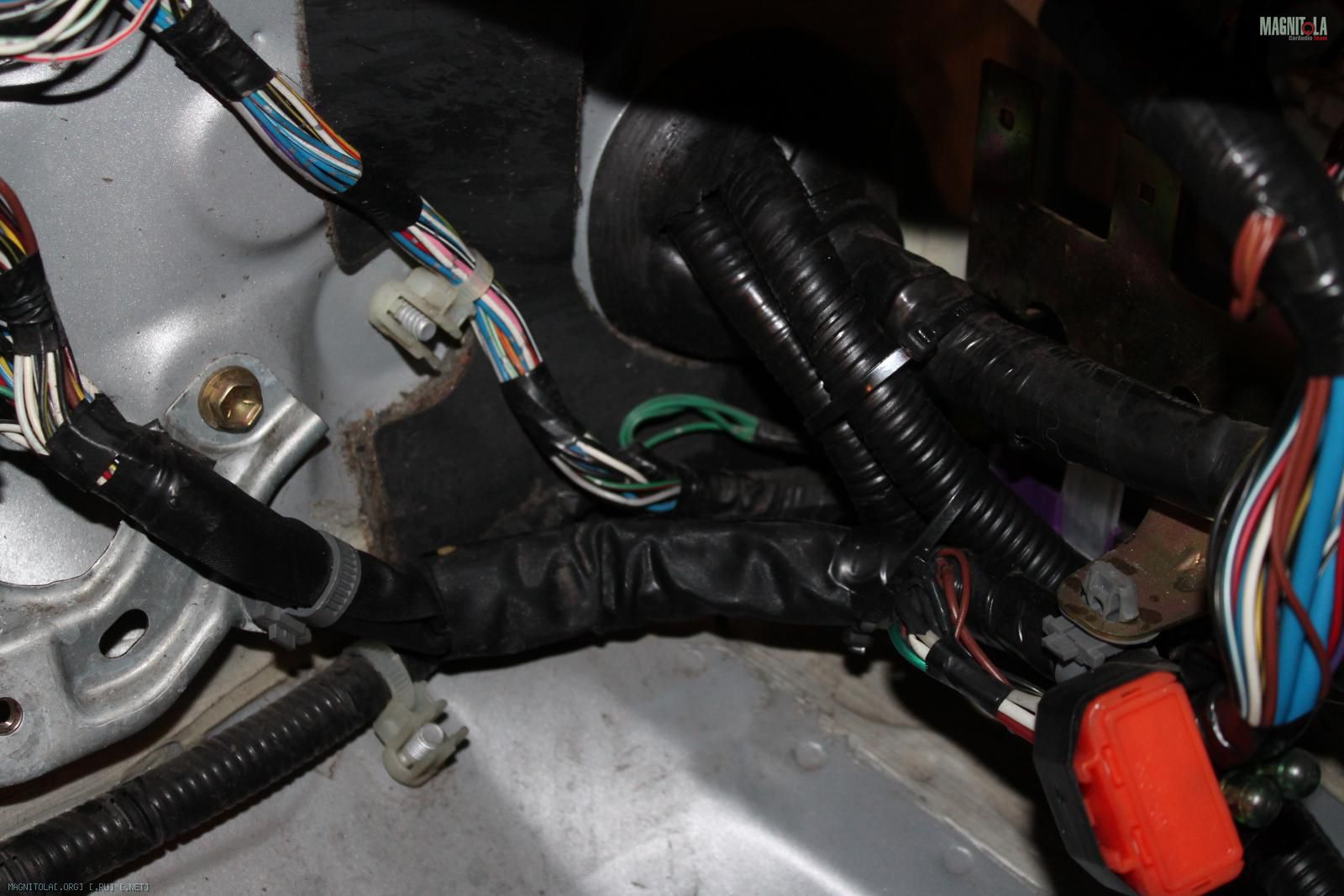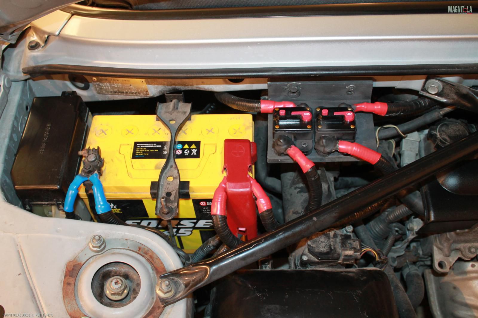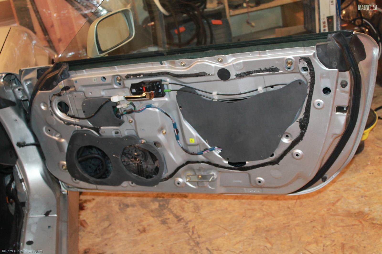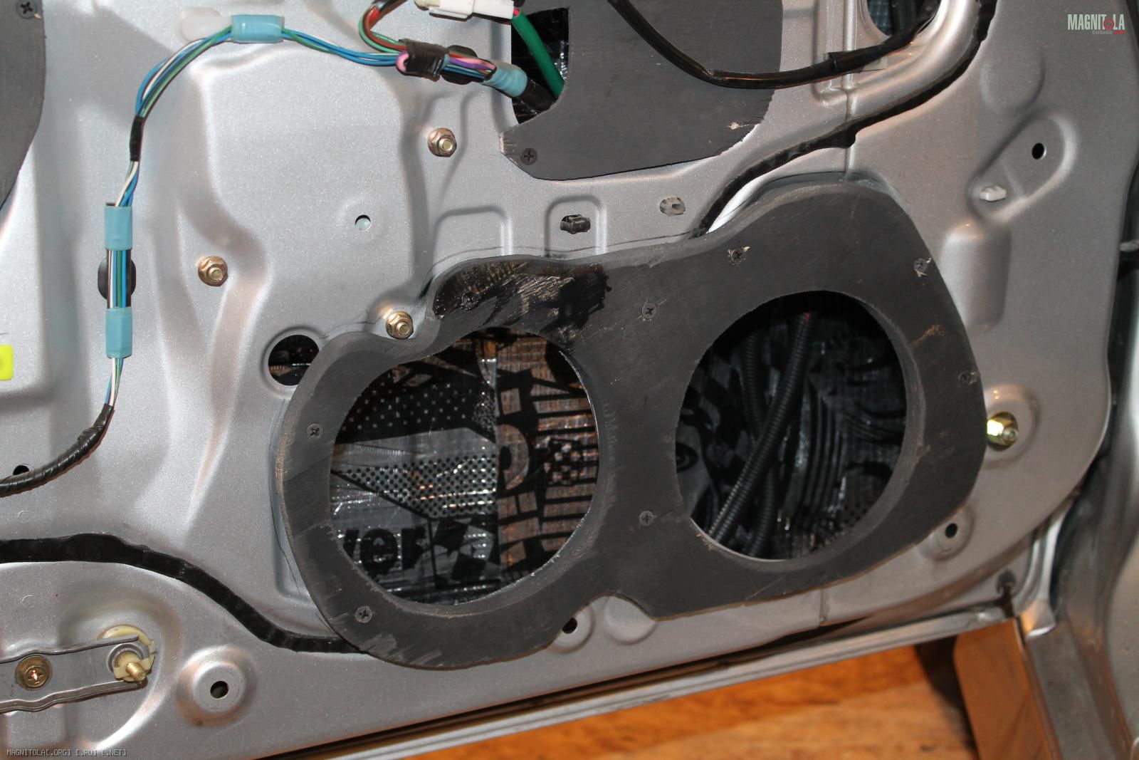 Протяжка акустических проводов в двери, на стойки, вязка жгутов силовых проводов(на каждый усилитель по 35мм2 плюс и минус), межблочники, наведен порядок с силой для магнитолы, установлено ГУ