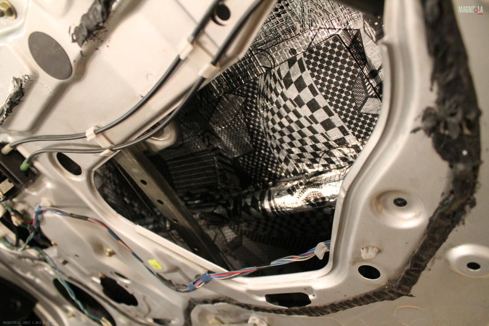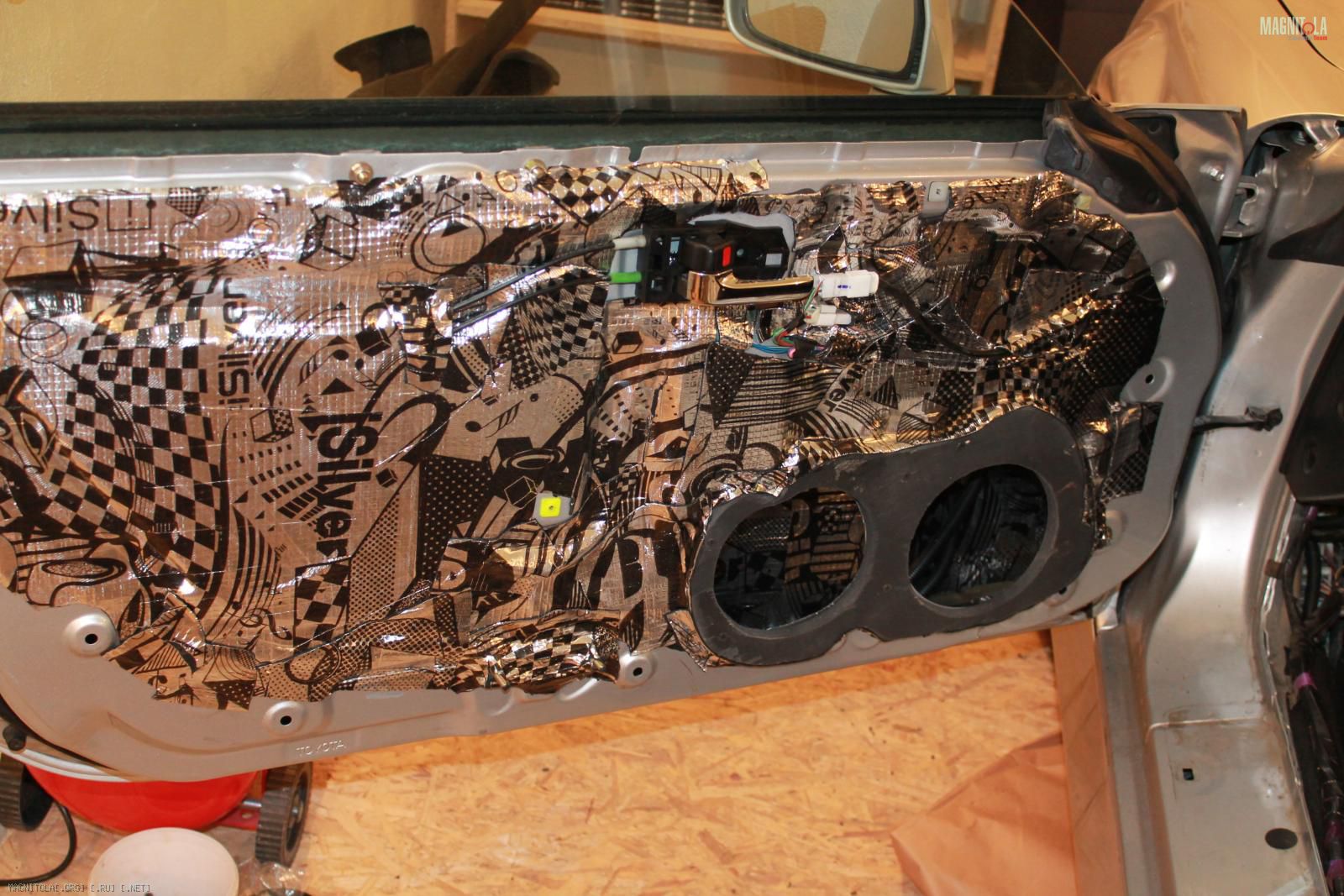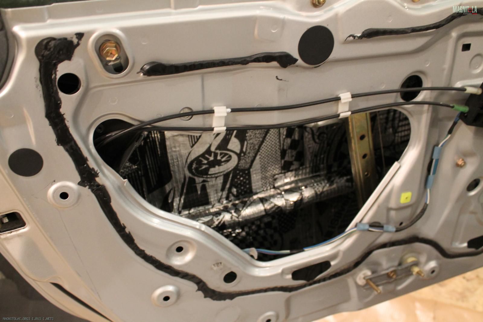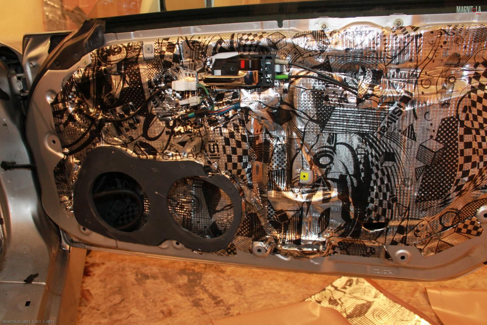 Двери, технологические отверстия закрываем фанерой, очищаем и обезжириваем от пыли для дальнейшей шумоизоляции