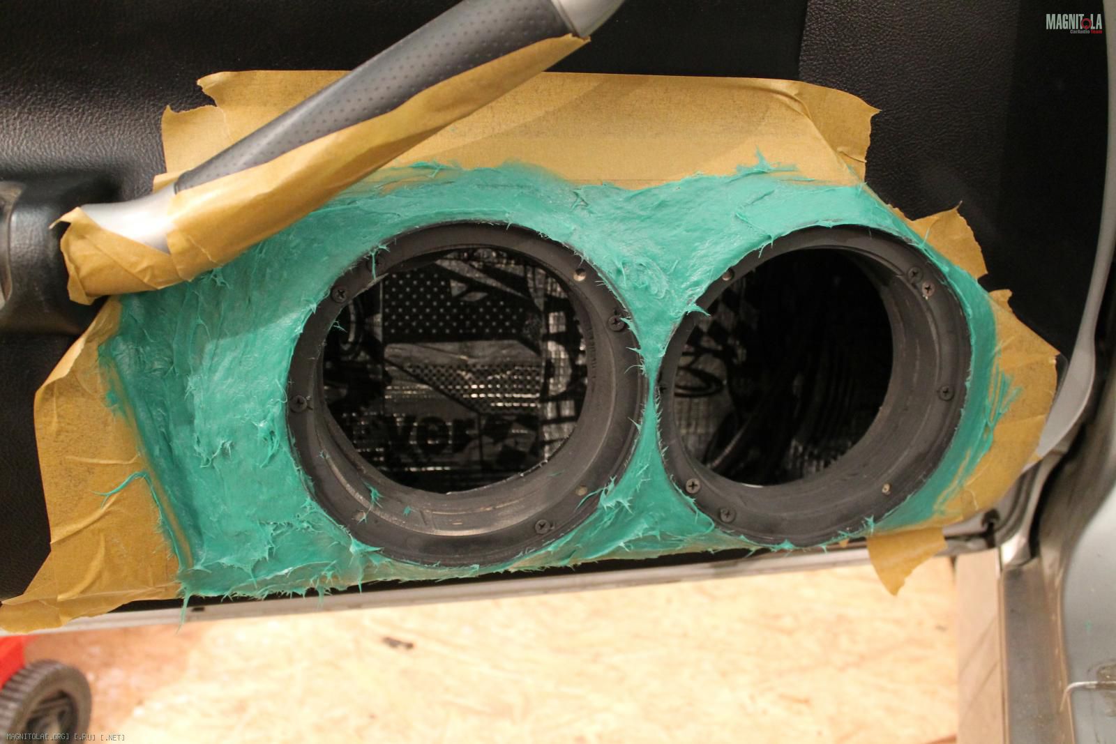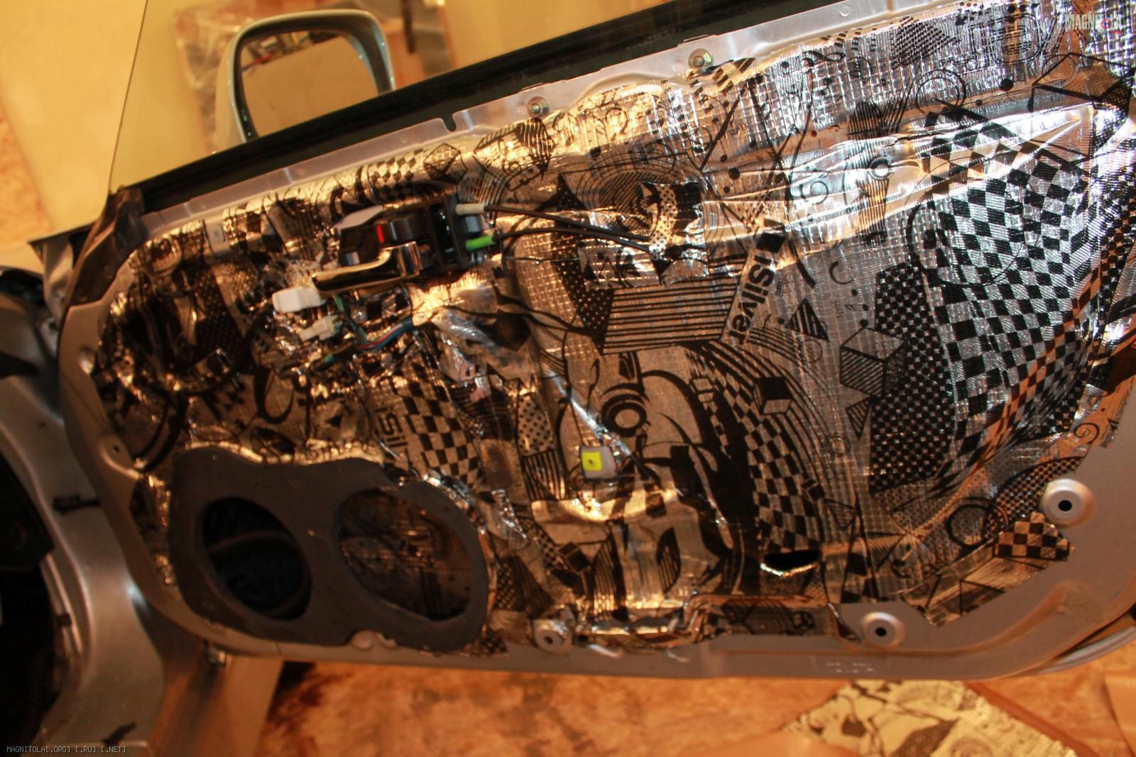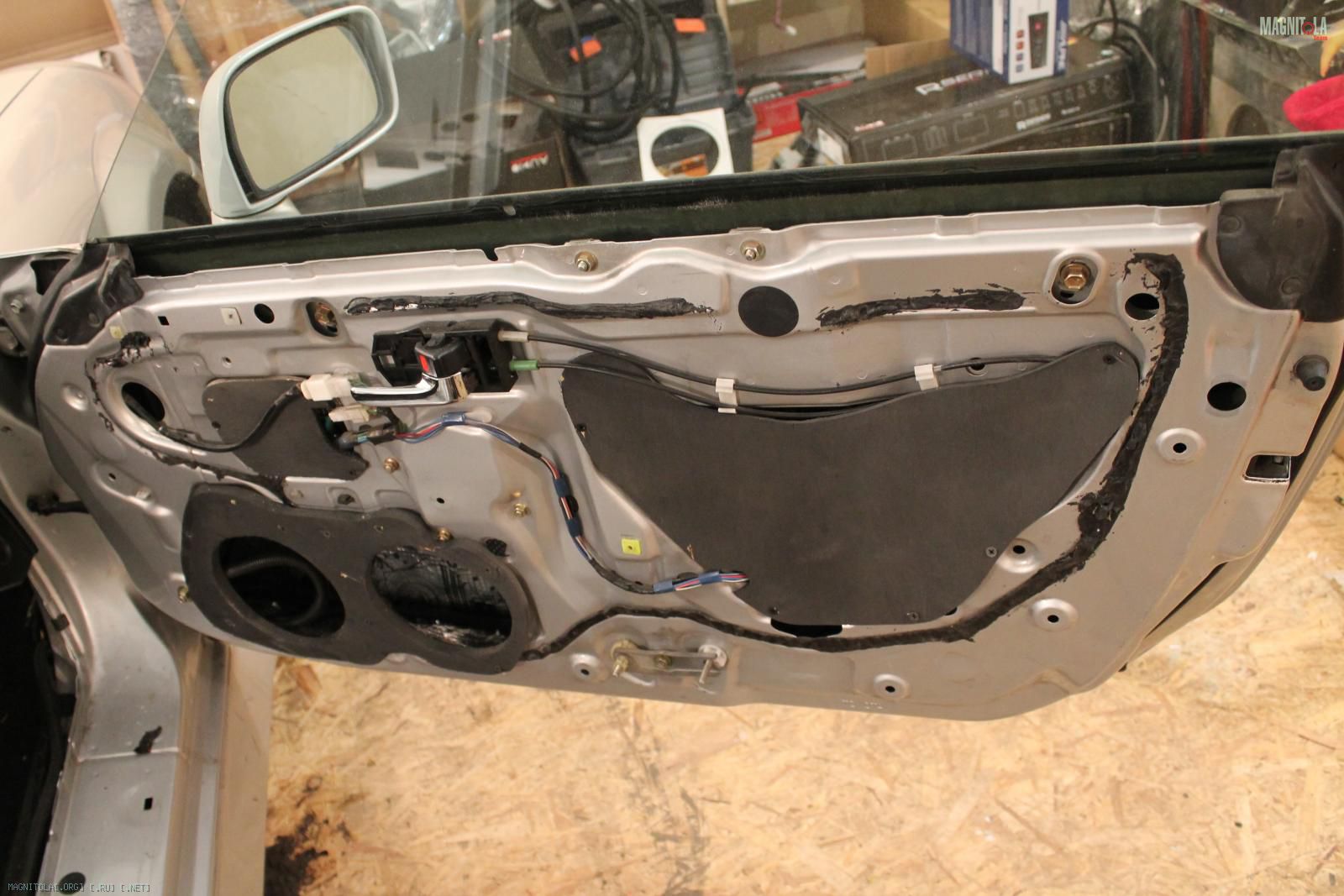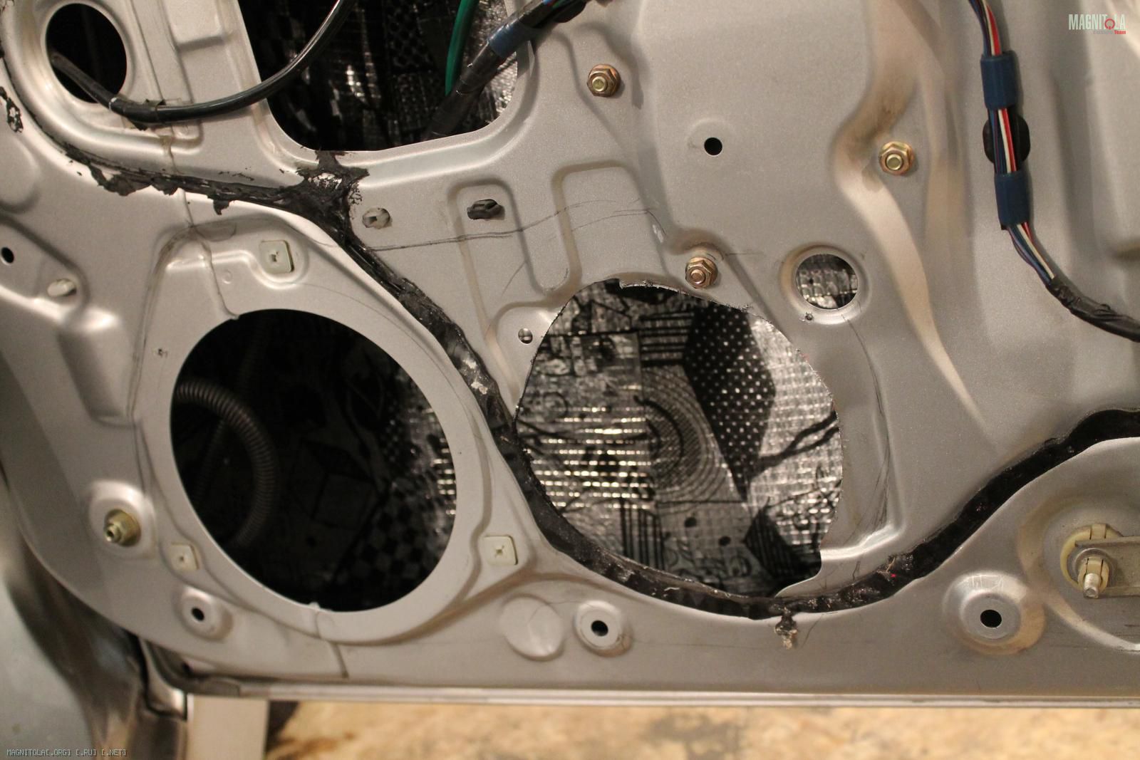 Двери, технологические отверстия закрываем фанерой, очищаем и обезжириваем от пыли для дальнейшей шумоизоляции