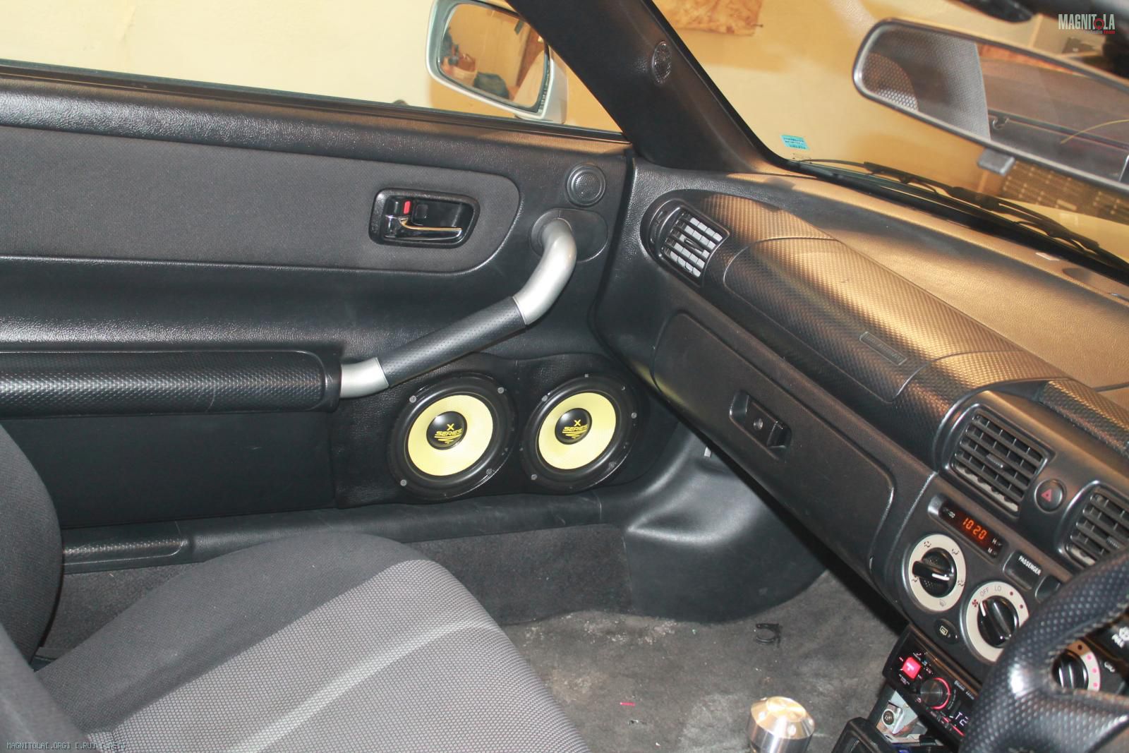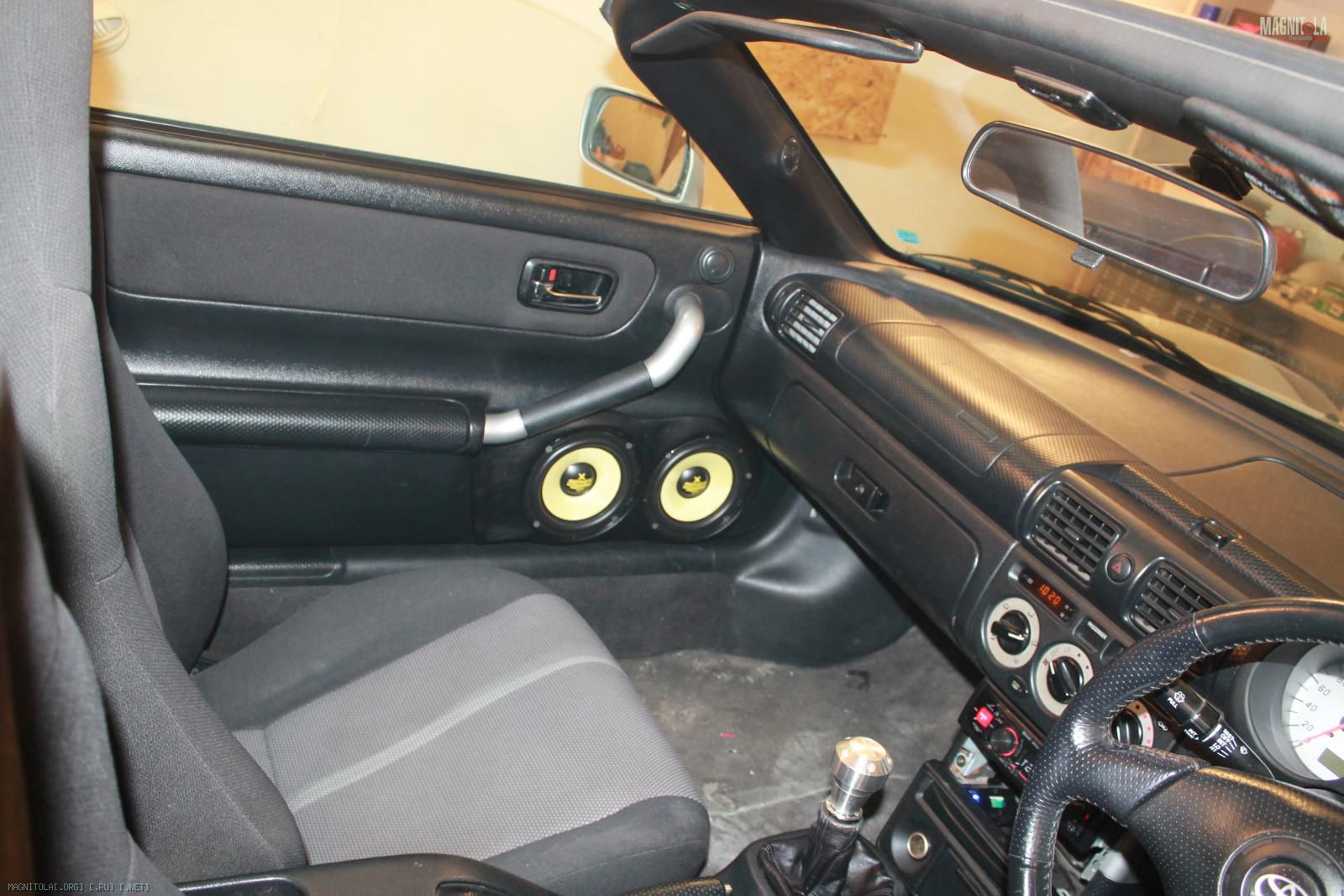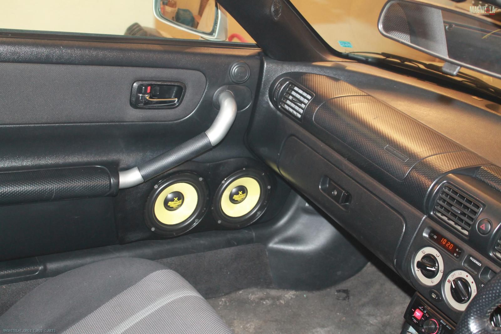 В KF SOUND TECHNOLOGY приехала Тойота MR-S обзавестись громким сабом и фронтом, со сдвоенным мидбасом
