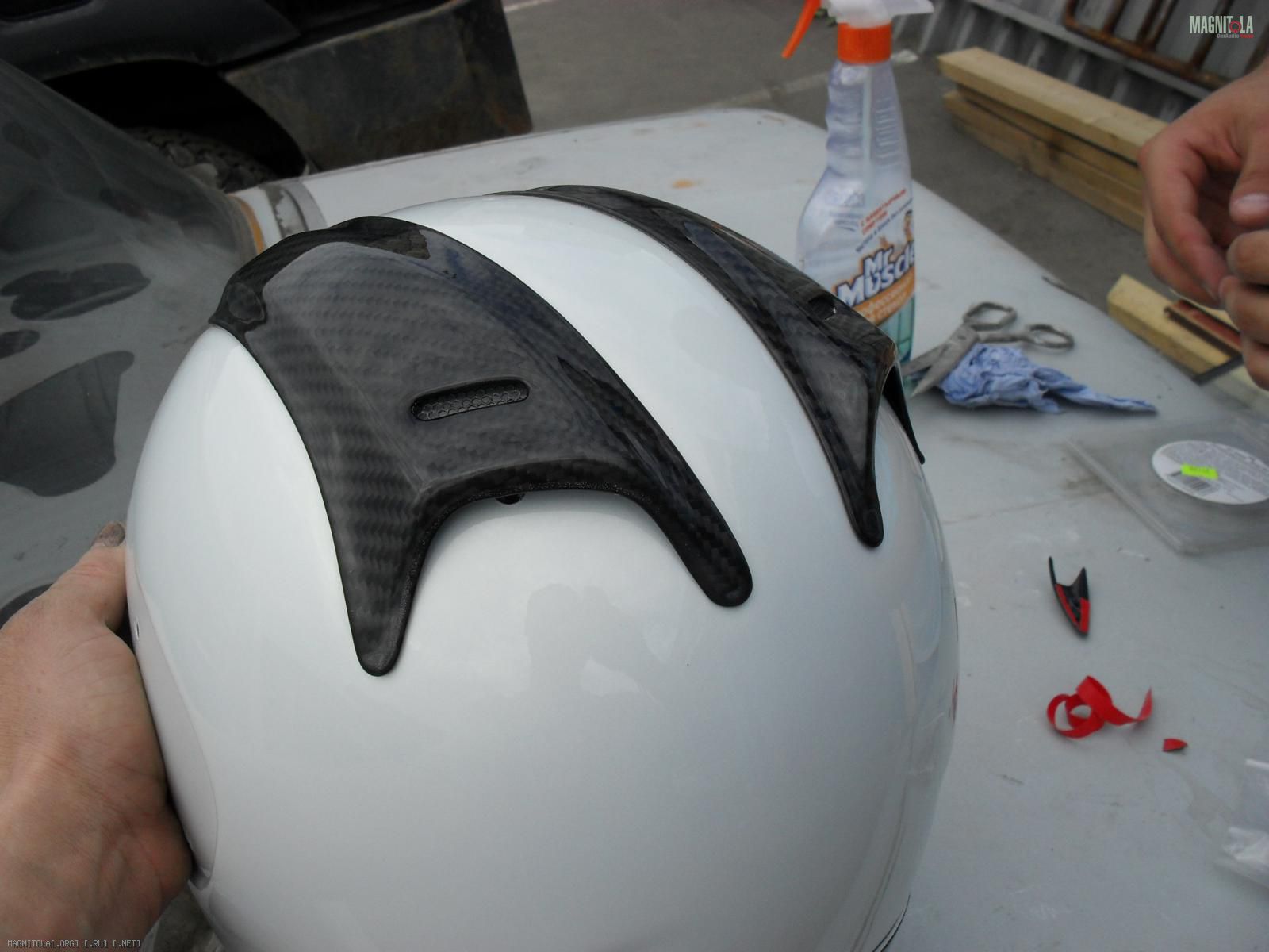 Композитные декоративные накладки на мото шлем в замен старых некрасивых.