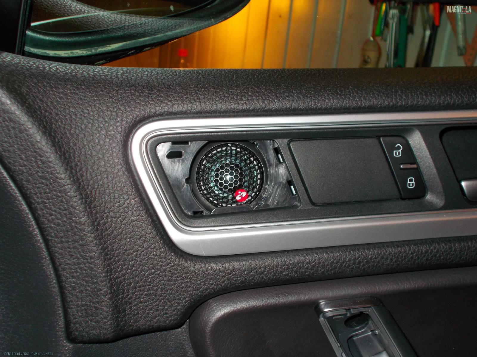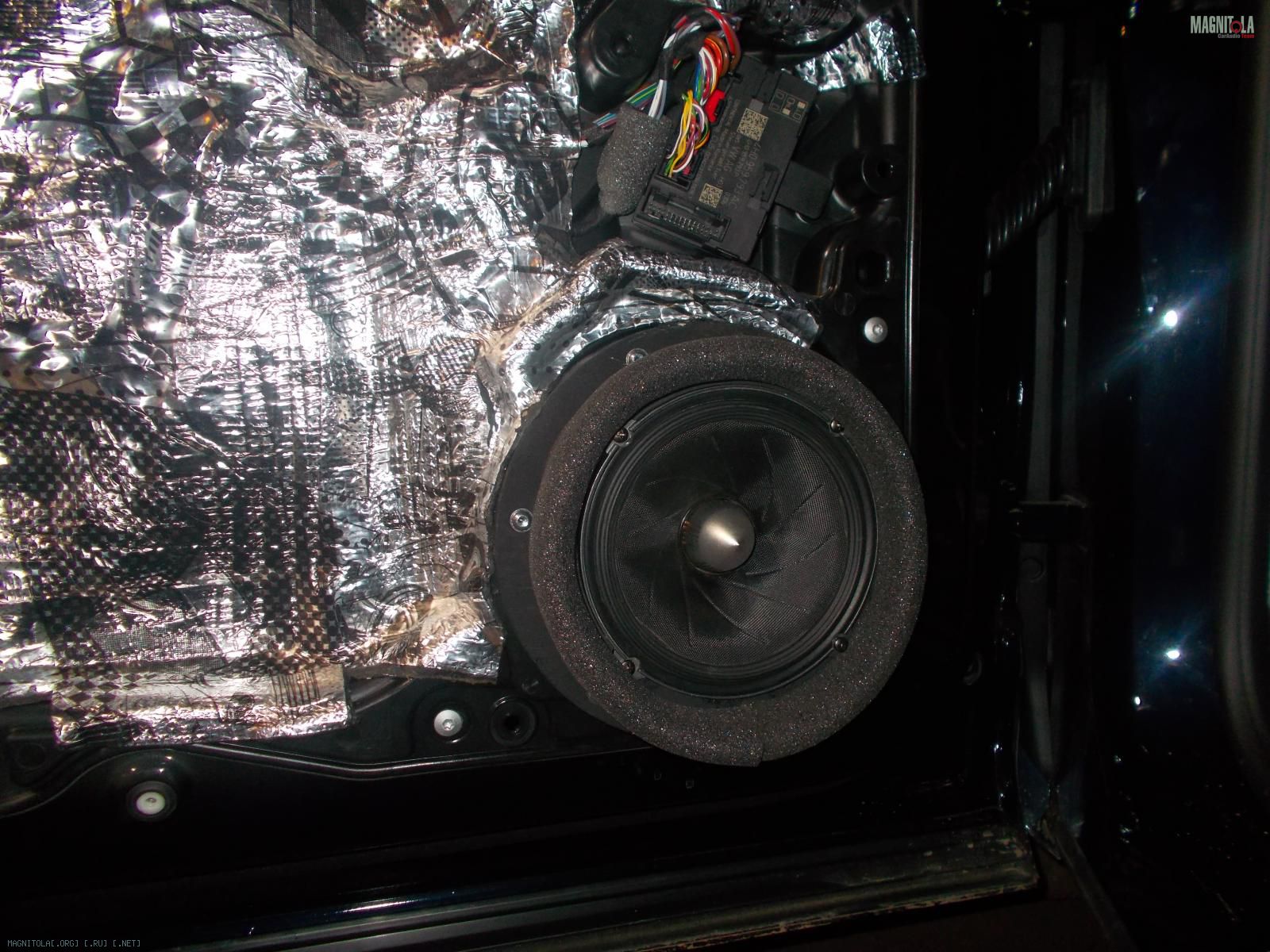 Акустику по желанию клиента поставил в шт места + шумка двух дверей в 4 слоя каждая. Твитеры ( ВЧ) направил максимально в центр лобового стелка, скажу Вам, что даже без задержек играло уже на порядок лучше, чем в штатном, тупом направлении в коленки!