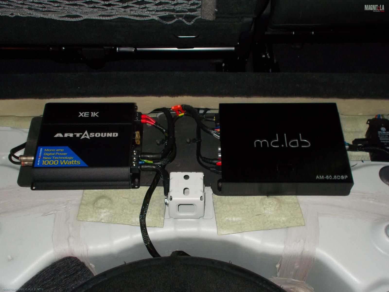 На этот раз никакой оптики, голова стоит 550 + акустика в штатные места из относительно новой линейки CDT ES kwd 62 подключенной поканально от 4 каналов 6-ти кан. усилителя АВ класса audiosystem x 80.6 + саб в докатку с динамиком Pioneer ts sw3002 s4 от остальных 2-х каналов мостом на 4 ом. Усилитель с охлаждением и двумя регулируемыми куллерами, 1 куллер на 5-6 мощные каналы ( 500 ватт мостом на 4 ом, совсем не дурно) и 4 канала по 75 ватт от своего куллера. Процессор поставил, мд лаб dsp 8 + с блоком вай фай, сегодня его проверим как раз через приложение для андроид, будем слушать музу с телефона напрямую по вай фаю, минуя шт голову. Хотел взять бит тен, но их не было в наличии.