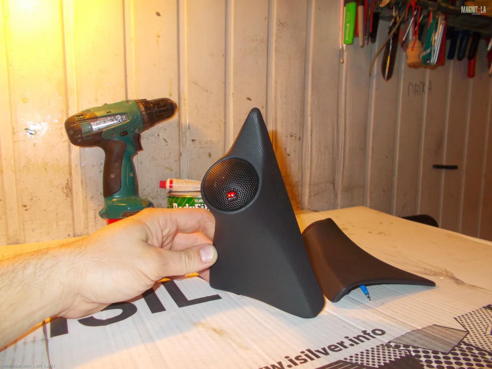 Изготовлен стелс по матричной технологии в докатку объемом 19 литров. Изготовлены новые проставочные кольца для НЧ акустики, а новые ВЧ впаиваются сеткой в штатные места и направленны максимально на лобовое стекло, для ухода от привязки левой стороны, да и сцена намного интереснее получается.
