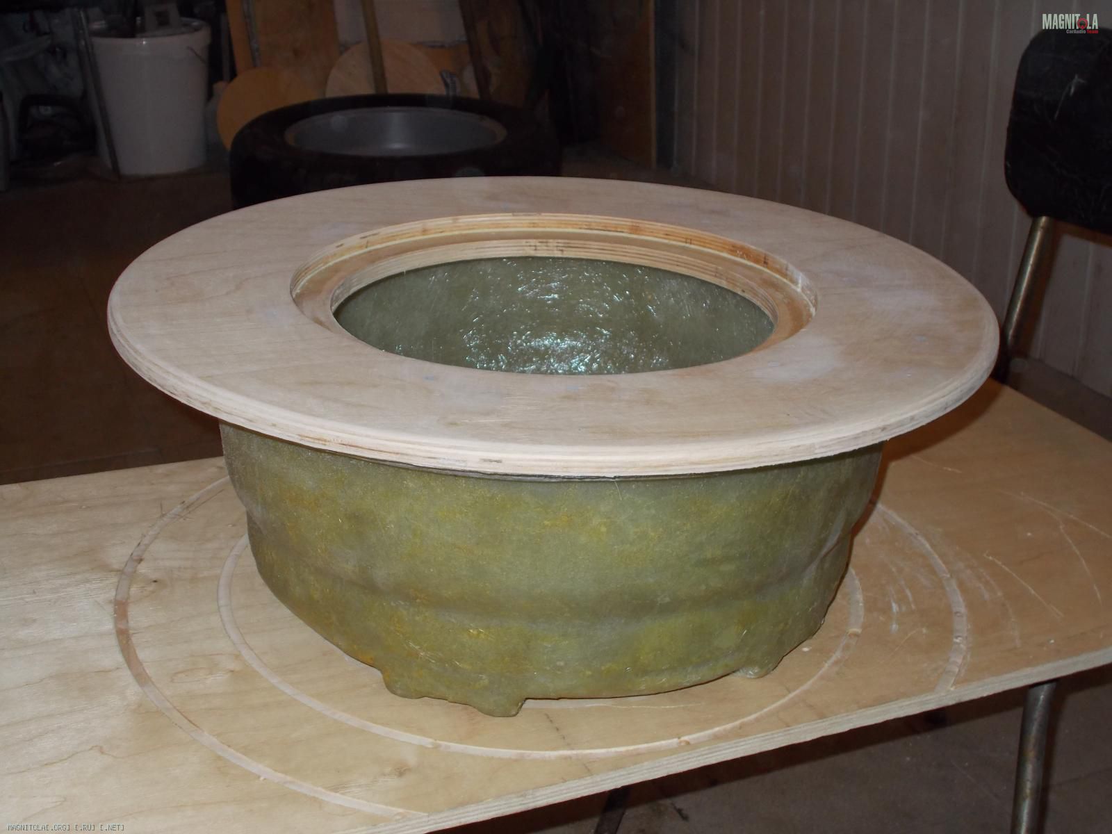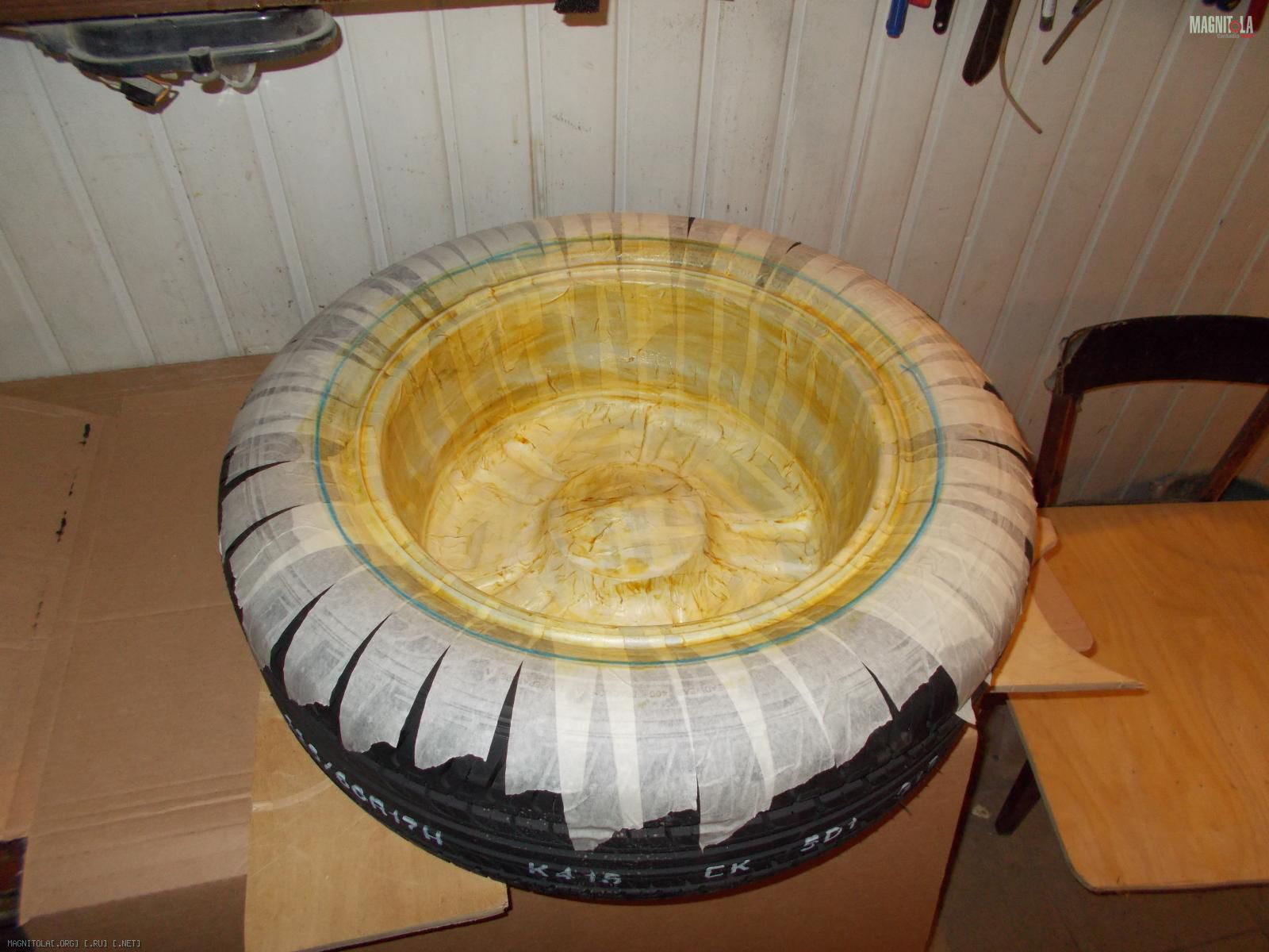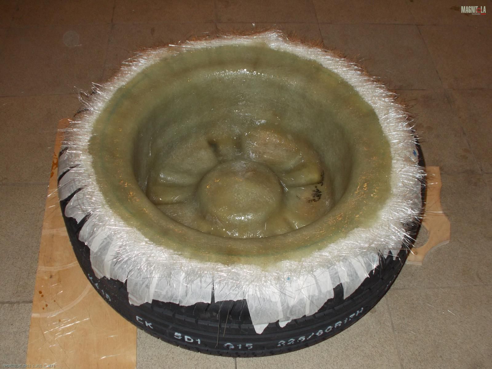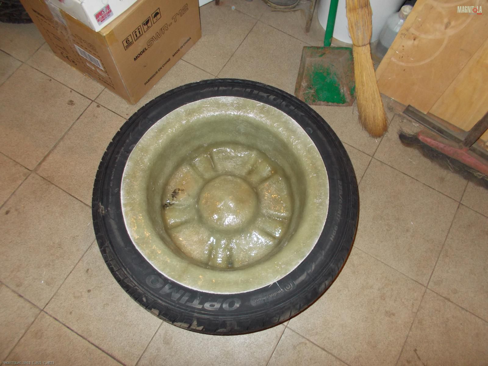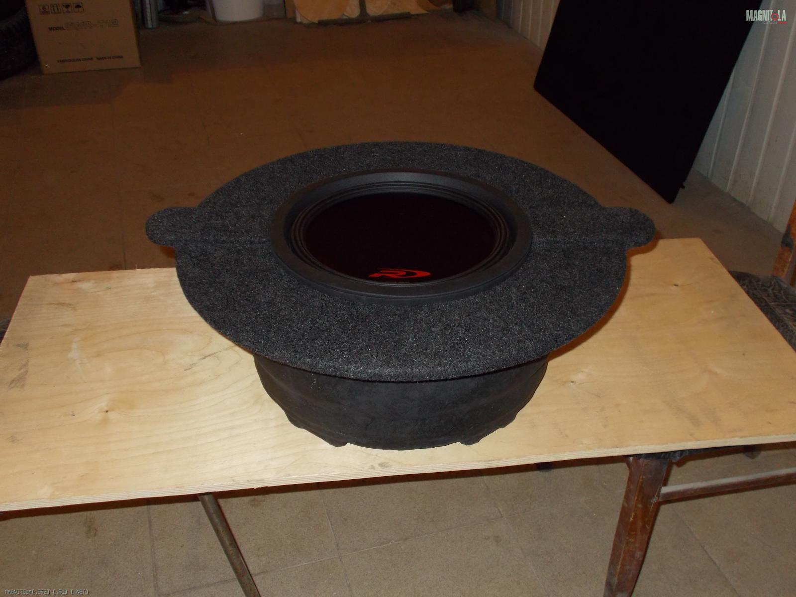 заклеиваем диск скотчем и обильно смазываем его солидолом чтоб потом без проблем вынуть скорлупуВложение 448658 потом кладем 8 слоев стекломата и смолыВложение 448660 даем высохнуть часик и вынимаем и вот что получилось Вложение 448662Вложение 448664Вложение 448666Вложение 448668 после делаем верхнюю крышку и сожаем ее на шпатлевку и саморезы, в принципе саб готов под обтяжку.