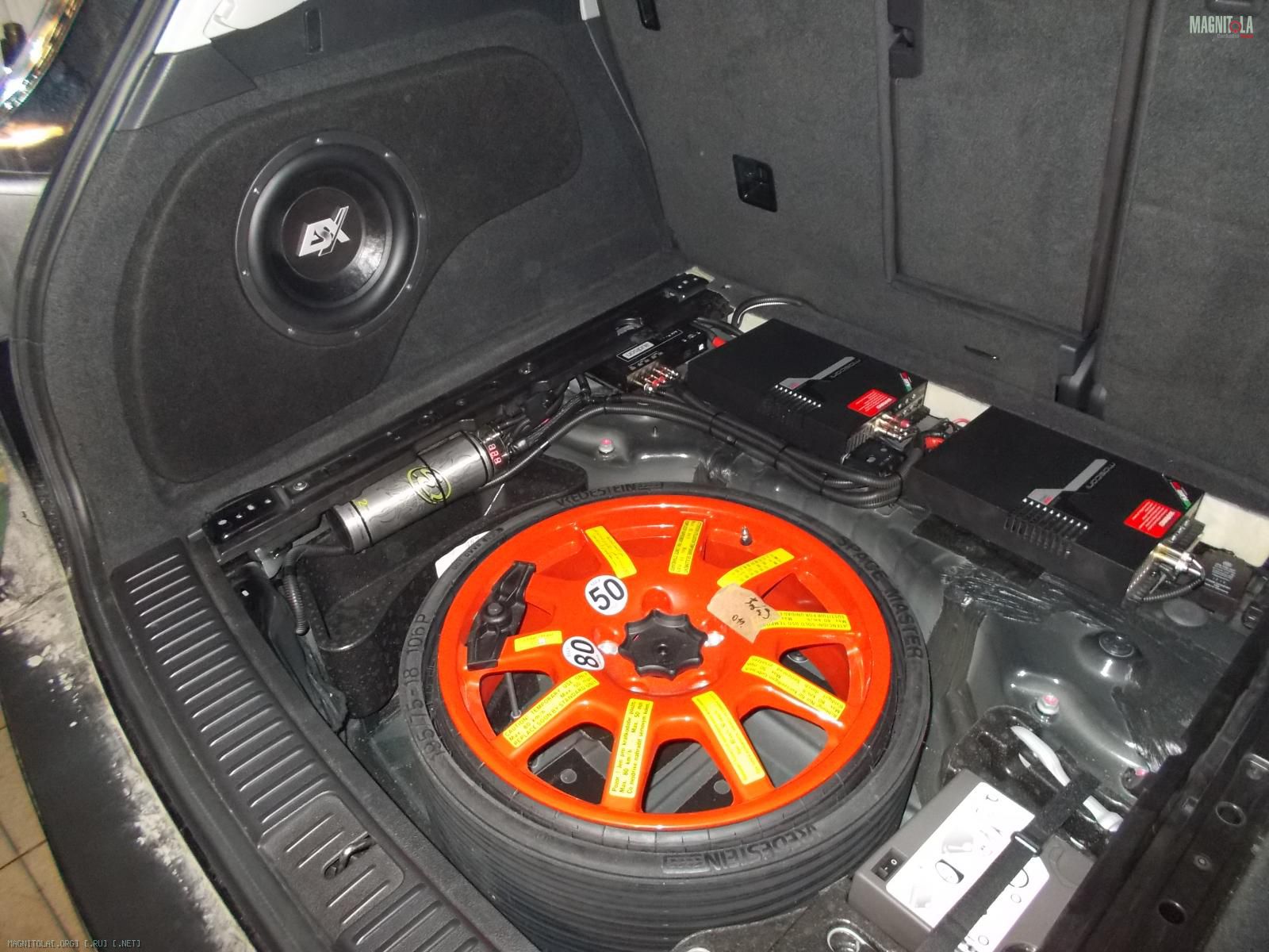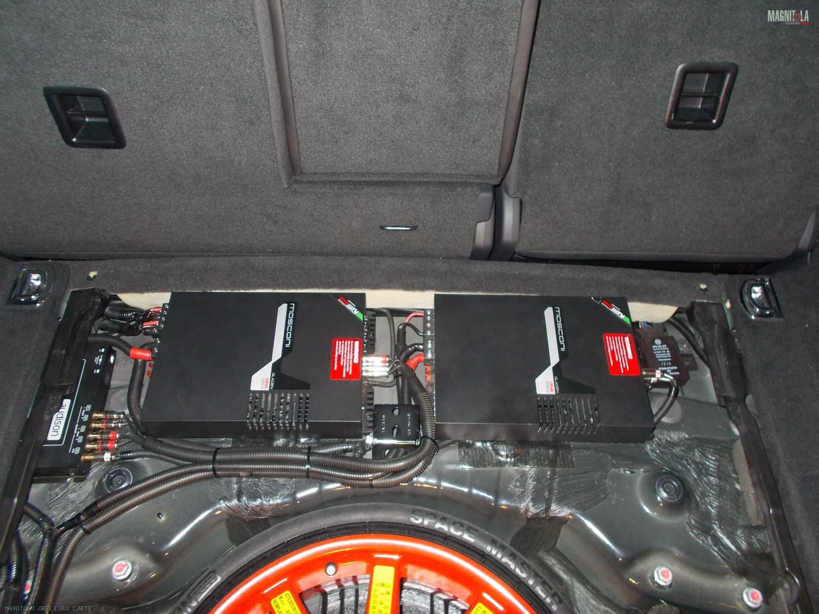 Трехкомпонентный фронт (morel mt 23, hertz hv165 l, crescendo ) + стелс ESX sx 1040 в левую нишу. Два Mosconi через bit ten от ГУ RNS 850
