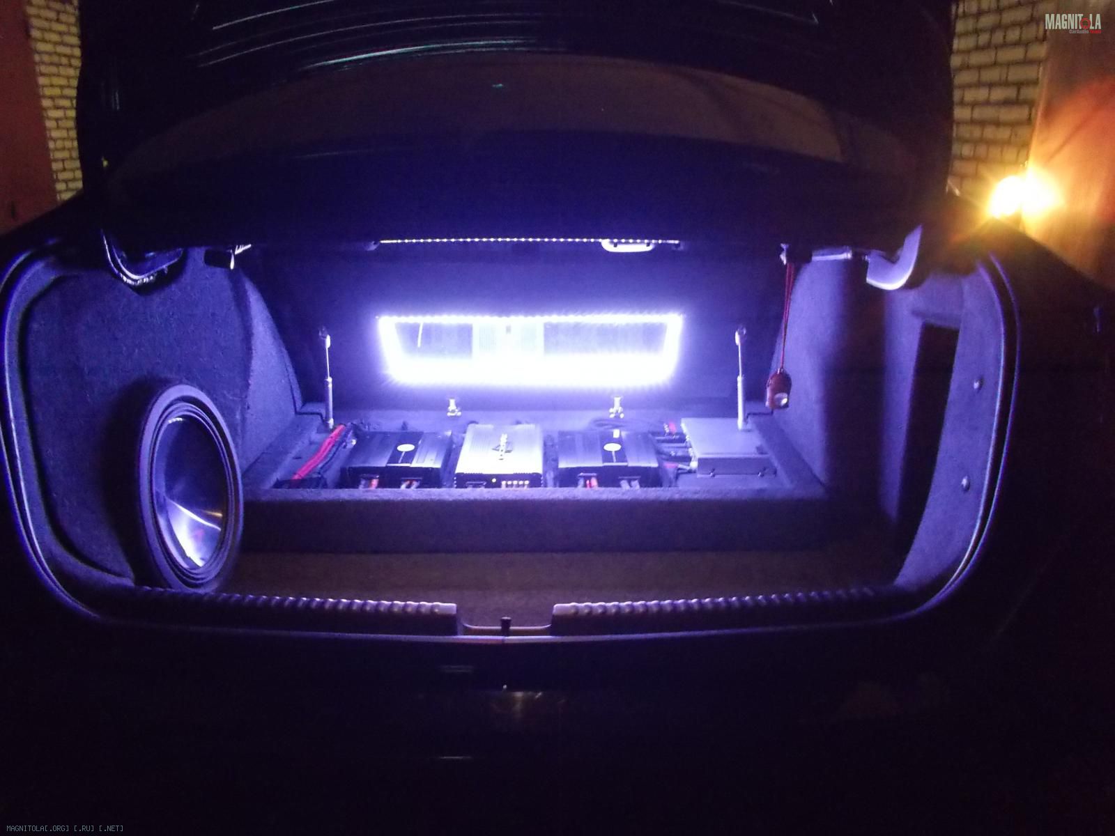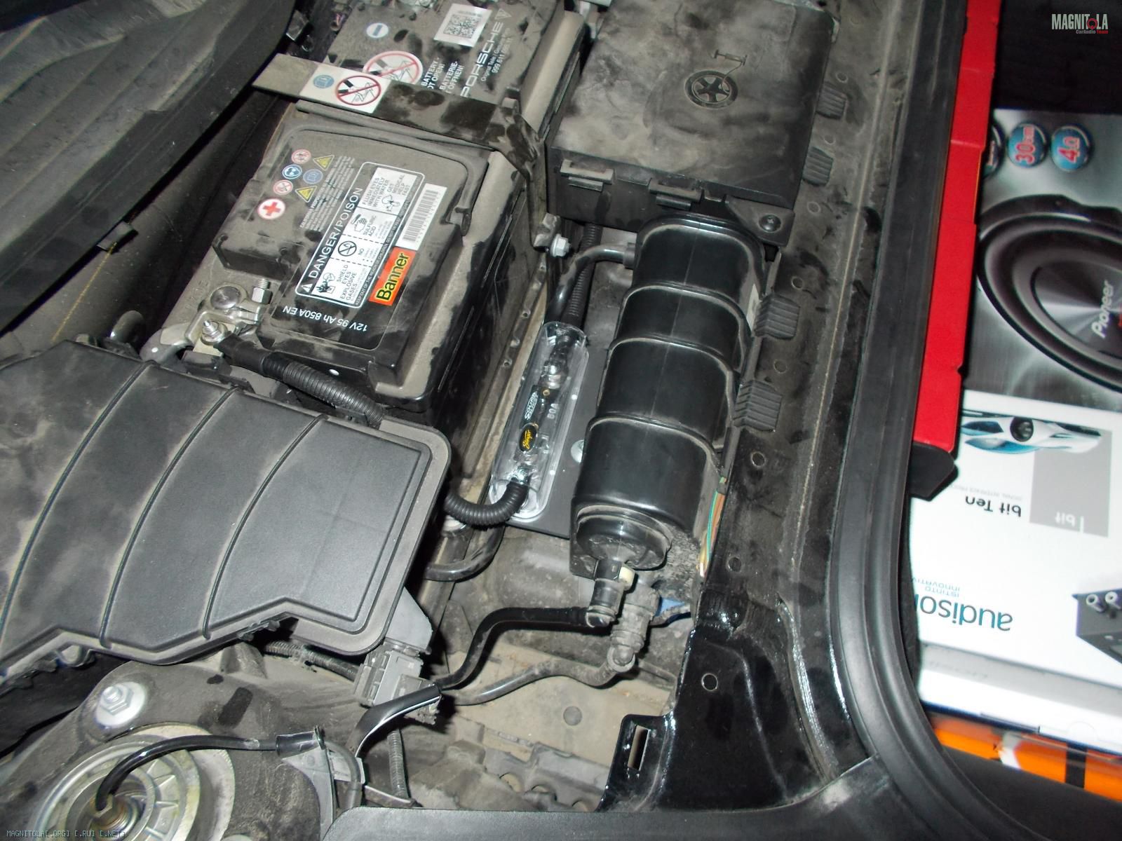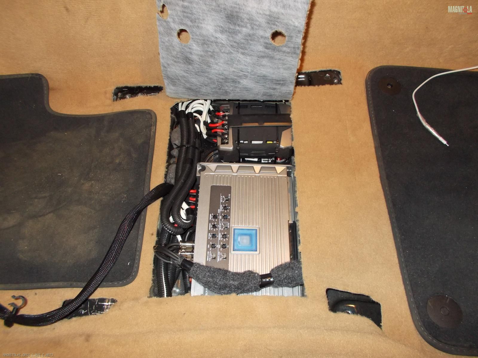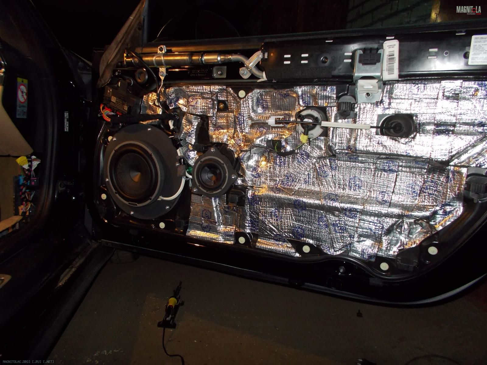 По началу хозяин заказал себе комплект из англии топовой акустики burmeister для порше. В него входили: микро сабвуфер 13 см, который вешается передней частью дифузора в швеллер и играет наверно на весь кузов, мидбас 20 см , серединка 10 см и ц.канал.Вложение 766868. Все это дело надо было подключить от процессора и 5 канального уся, но!!!!! Читаем дальше...;)