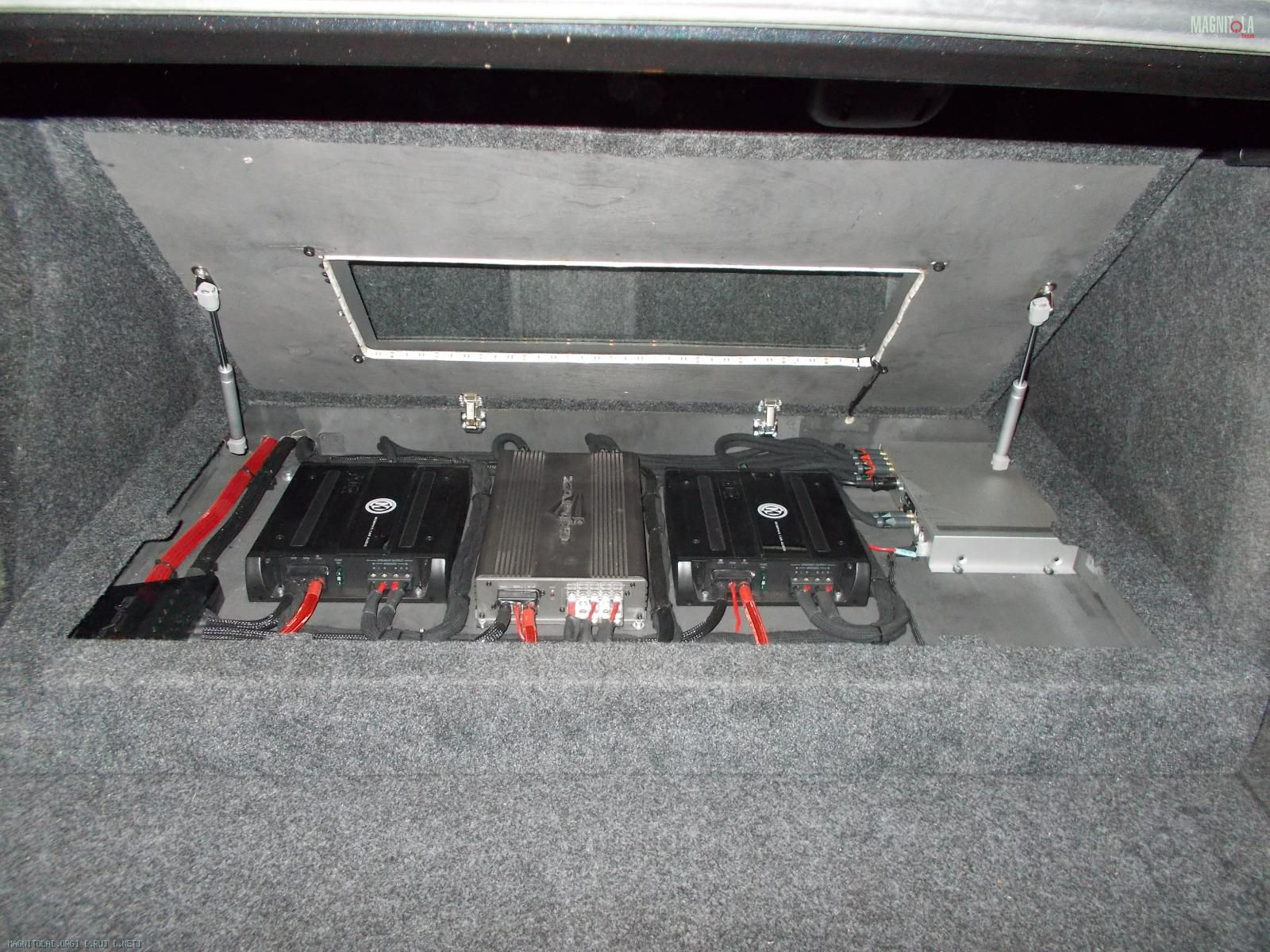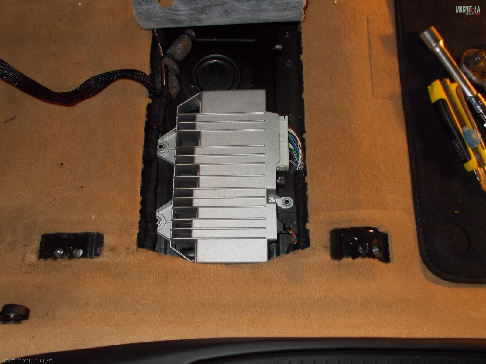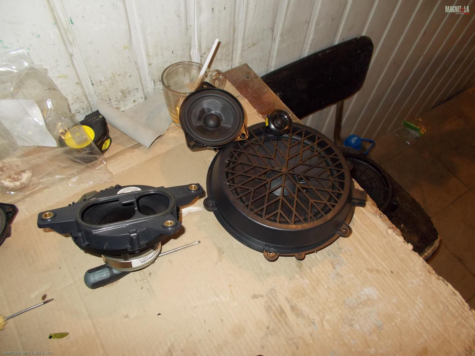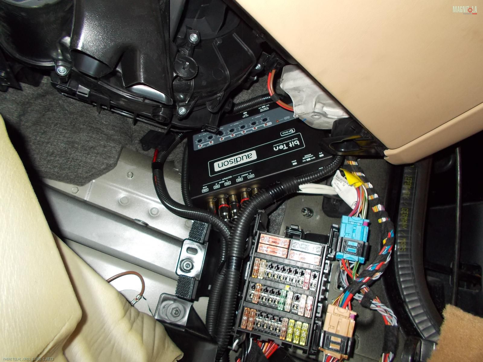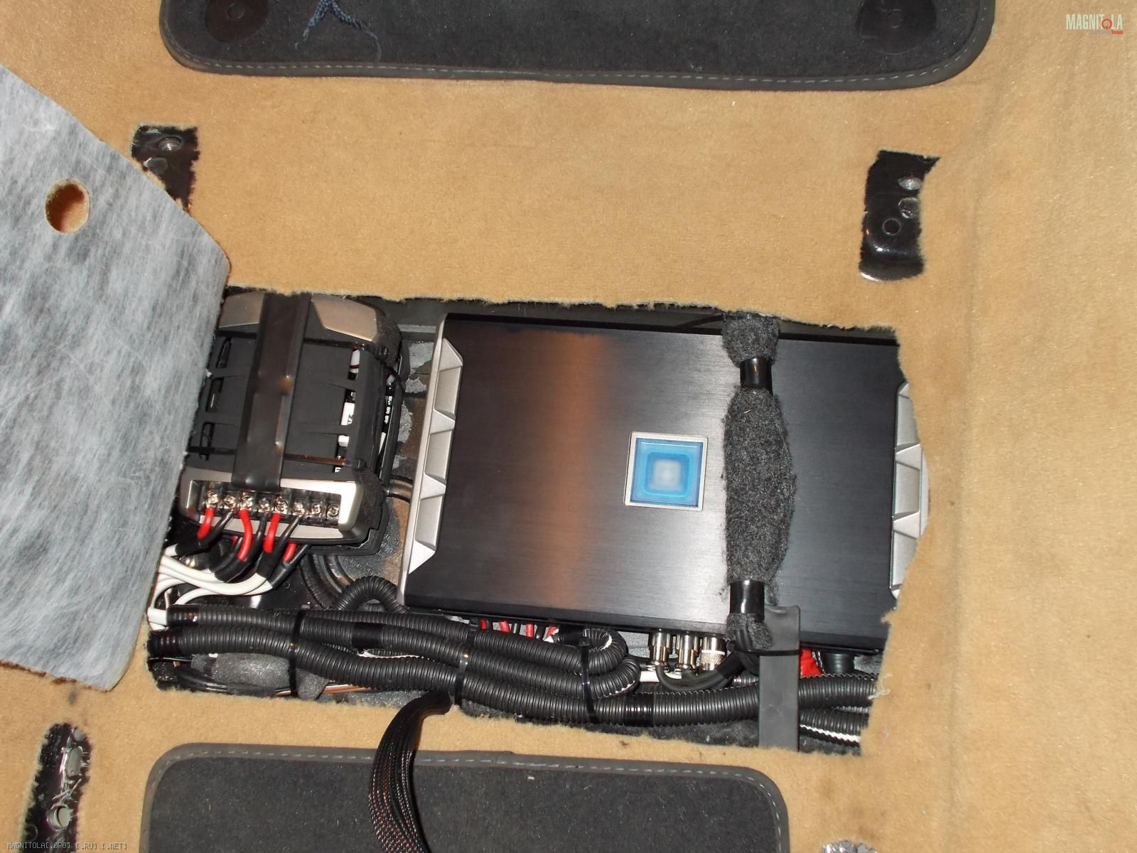 По началу хозяин заказал себе комплект из англии топовой акустики burmeister для порше. В него входили: микро сабвуфер 13 см, который вешается передней частью дифузора в швеллер и играет наверно на весь кузов, мидбас 20 см , серединка 10 см и ц.канал.Вложение 766868. Все это дело надо было подключить от процессора и 5 канального уся, но!!!!! Читаем дальше...;)