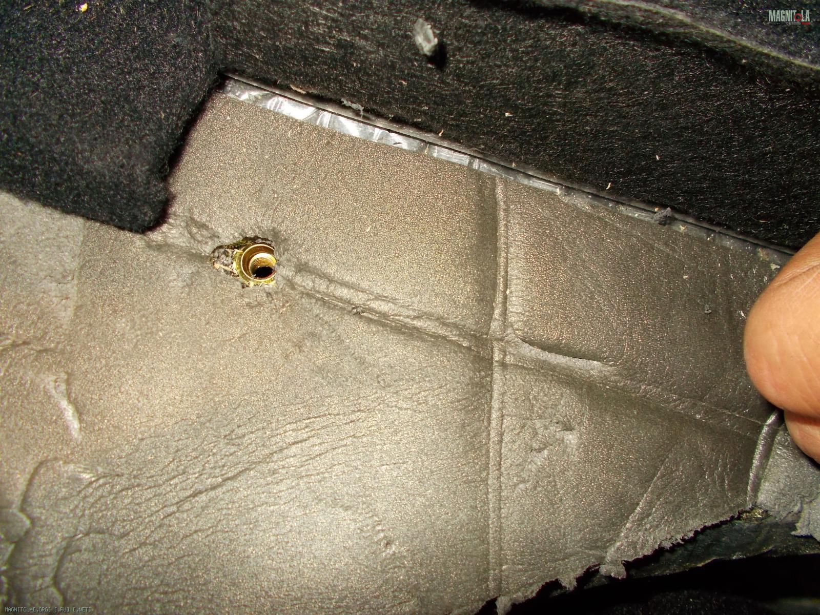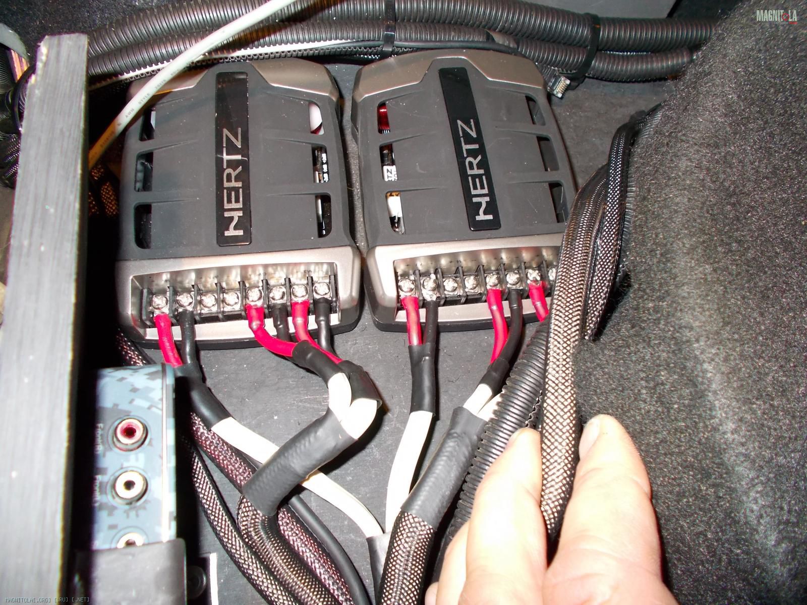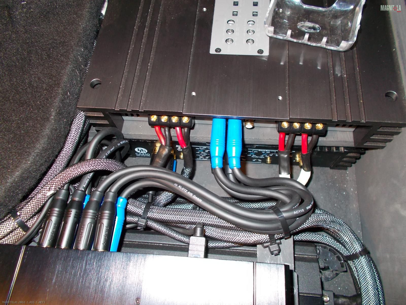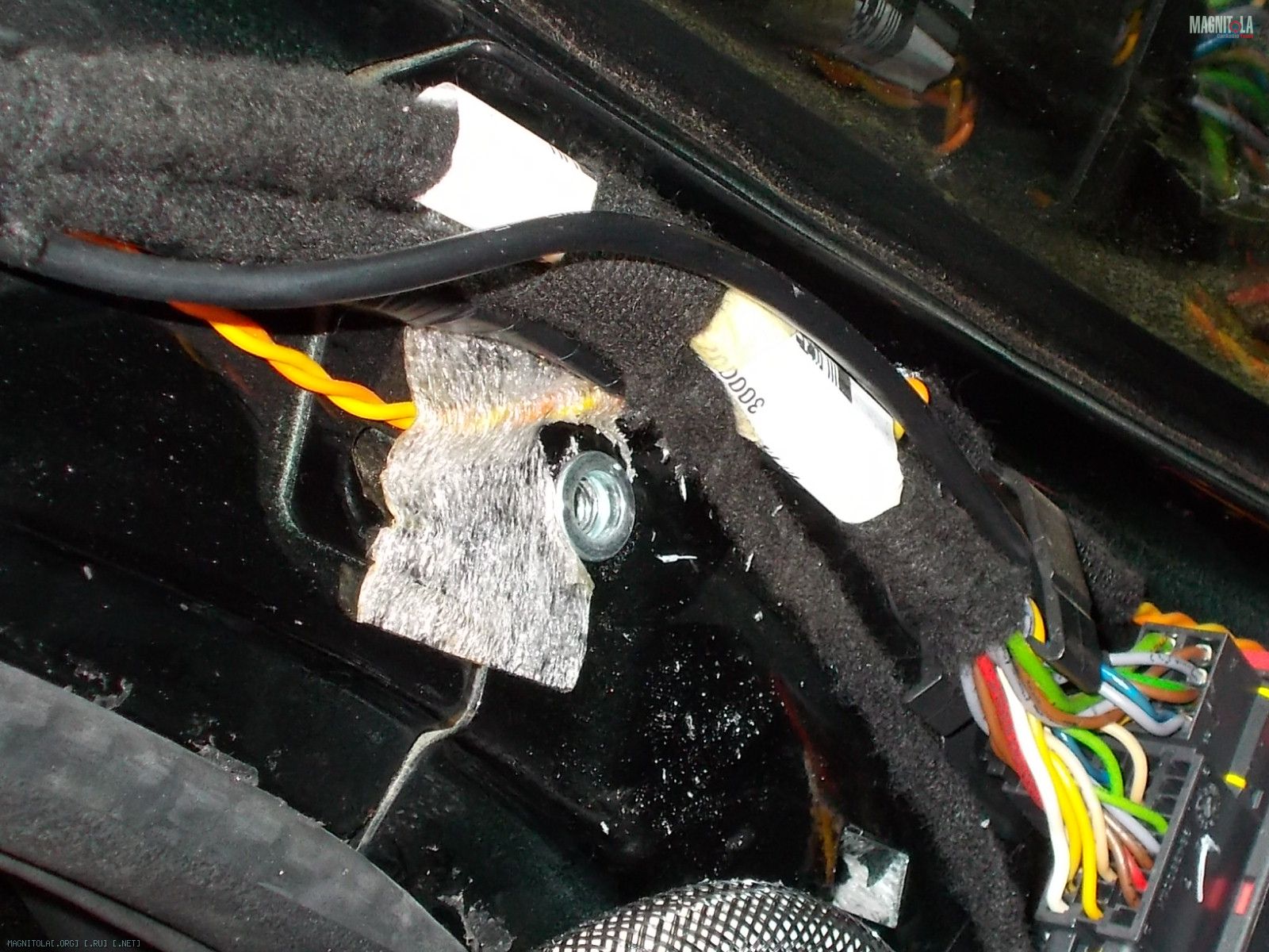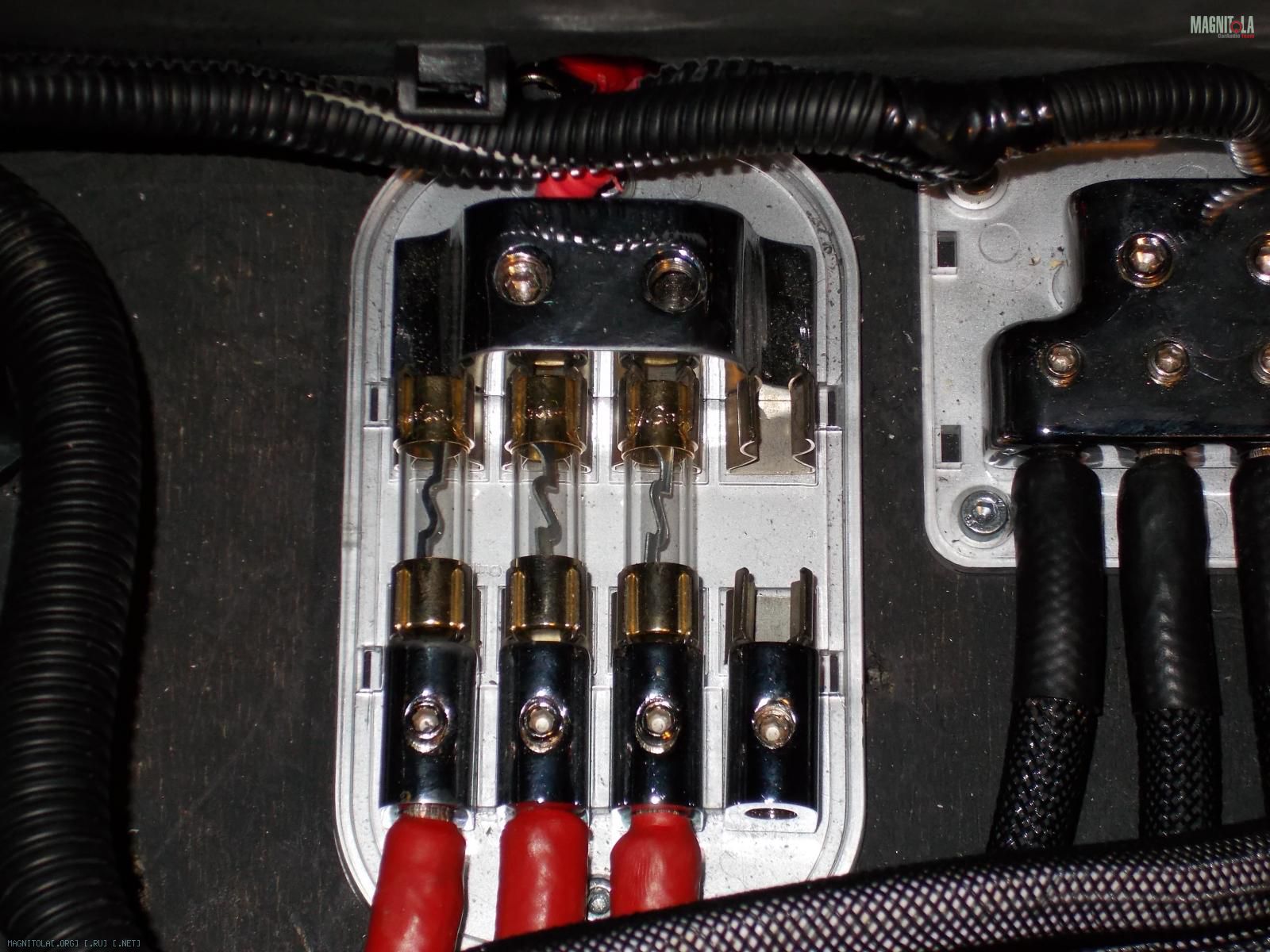 Вся проводка была заменена на новую и уложена под полом в штатном пластиковом кабель-канале. Все концы проводки залужены , к акустике припаяны. Усилитель расположил под штатным полом с левой стороны и закрепил на фальш-панельке, а ее закрепил на болты м6 вкрученные в заранее заклепанные в железо резьбовые заклепки.