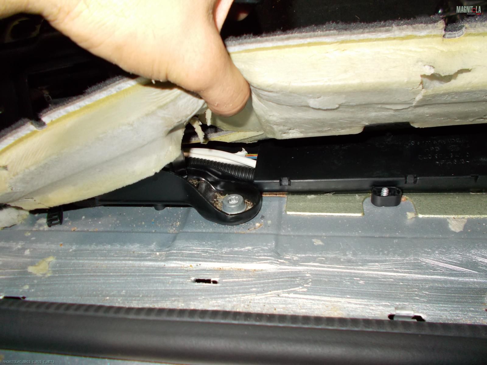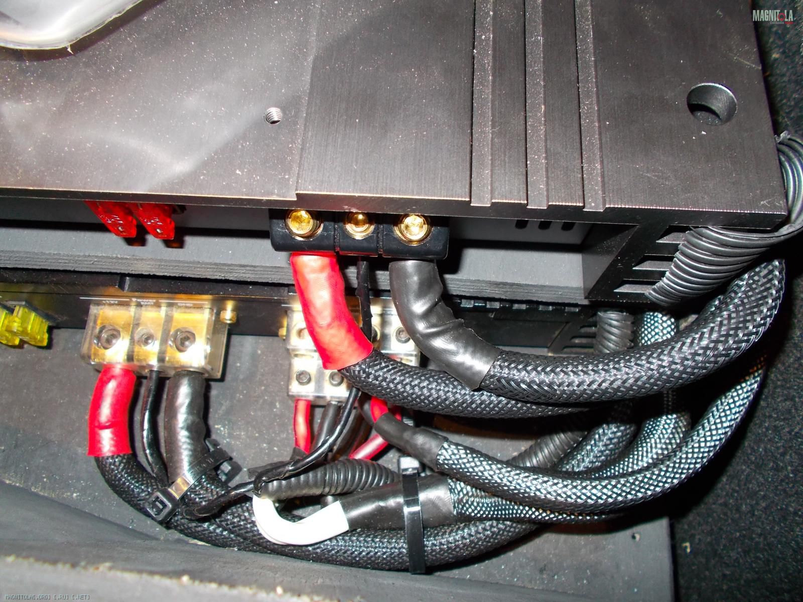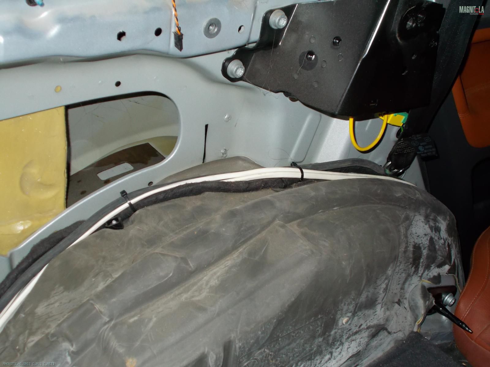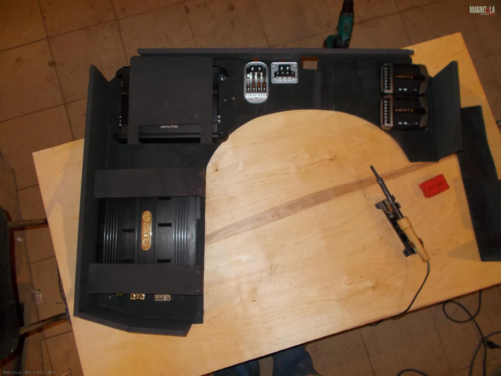 Вся проводка была заменена на новую и уложена под полом в штатном пластиковом кабель-канале. Все концы проводки залужены , к акустике припаяны. Усилитель расположил под штатным полом с левой стороны и закрепил на фальш-панельке, а ее закрепил на болты м6 вкрученные в заранее заклепанные в железо резьбовые заклепки.