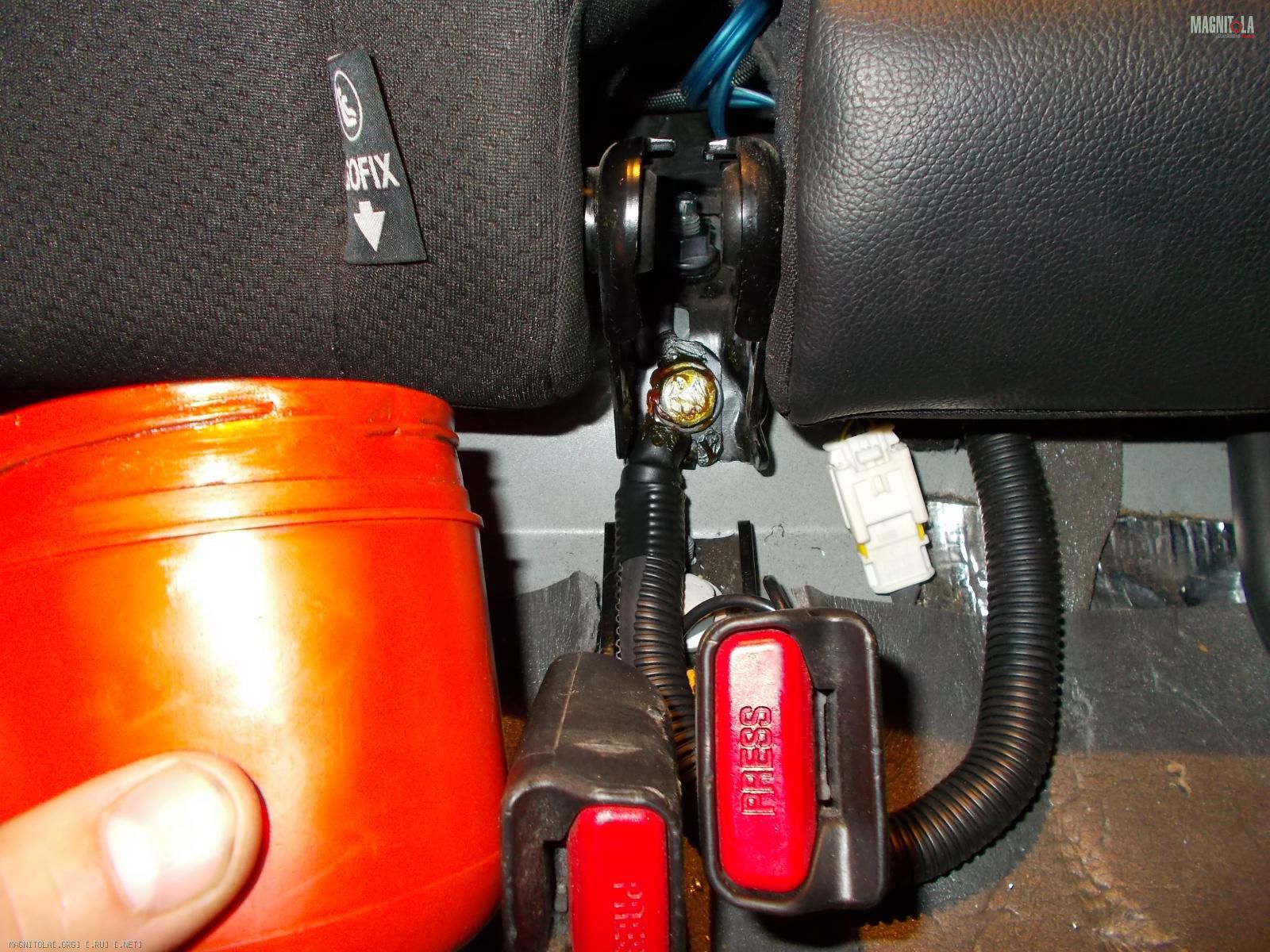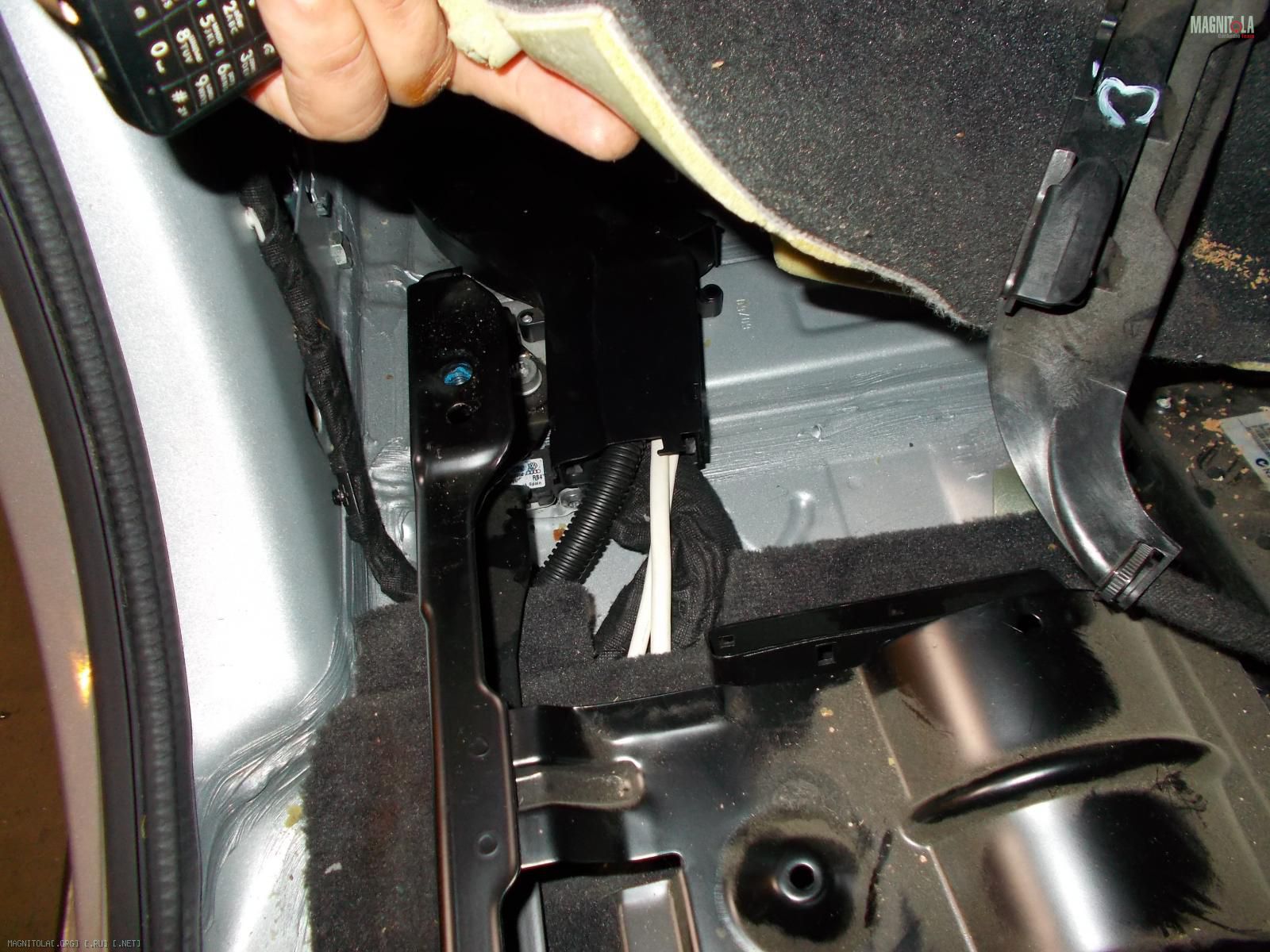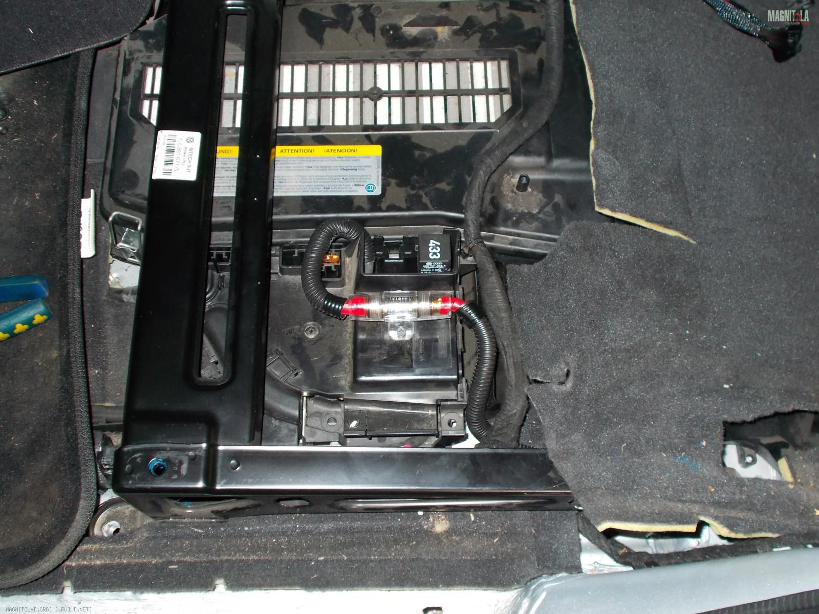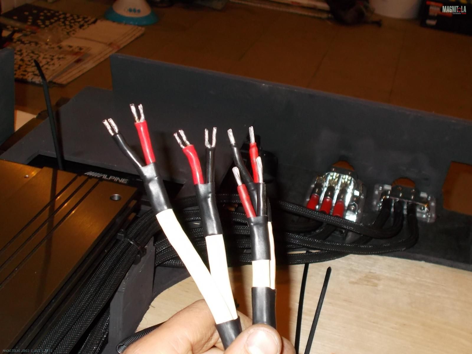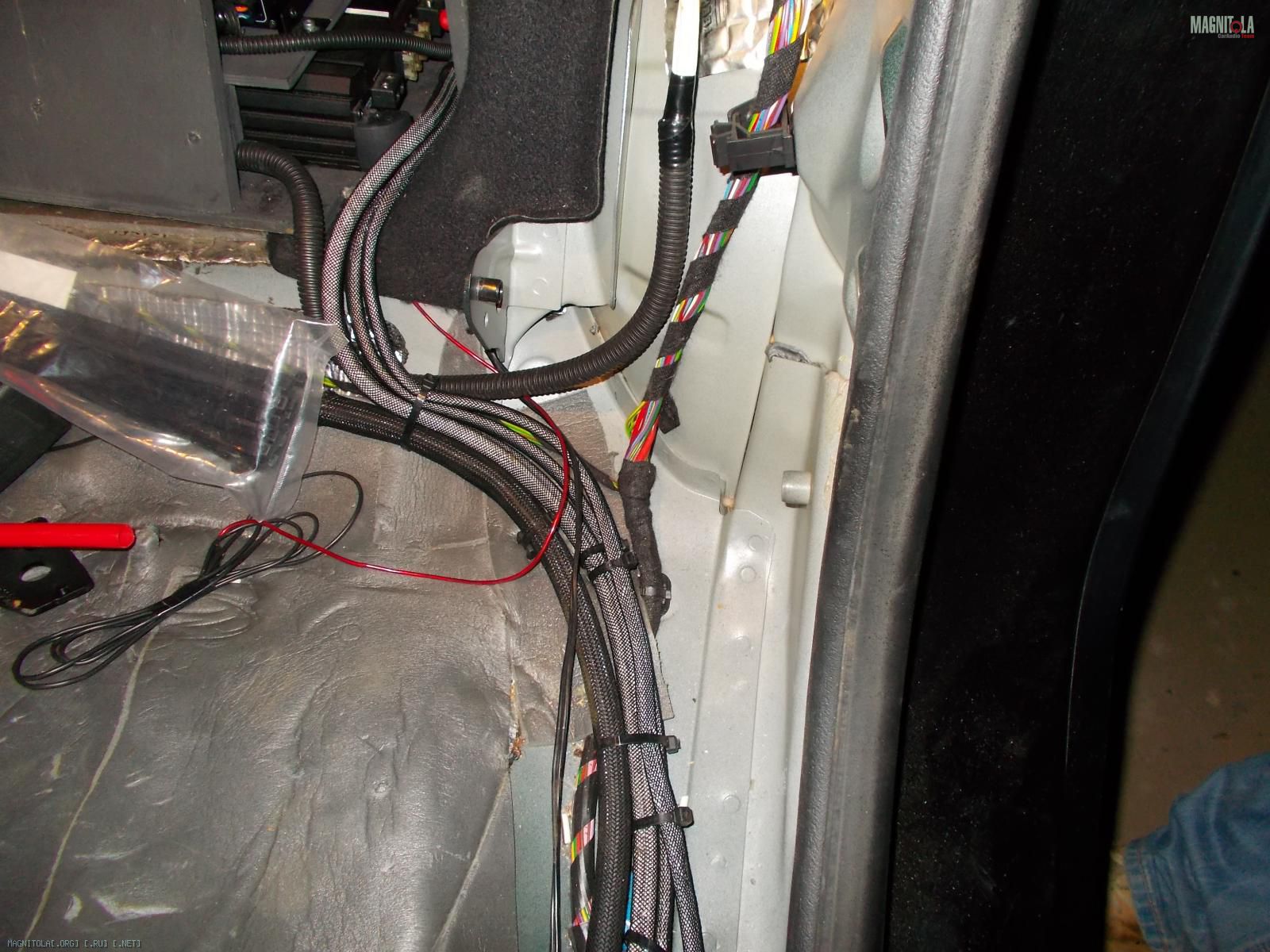 Вся проводка была заменена на новую и уложена под полом в штатном пластиковом кабель-канале. Все концы проводки залужены , к акустике припаяны. Усилитель расположил под штатным полом с левой стороны и закрепил на фальш-панельке, а ее закрепил на болты м6 вкрученные в заранее заклепанные в железо резьбовые заклепки.