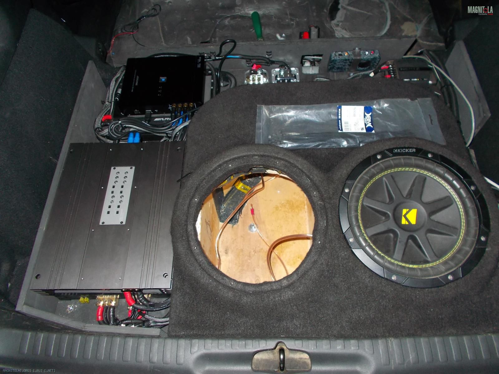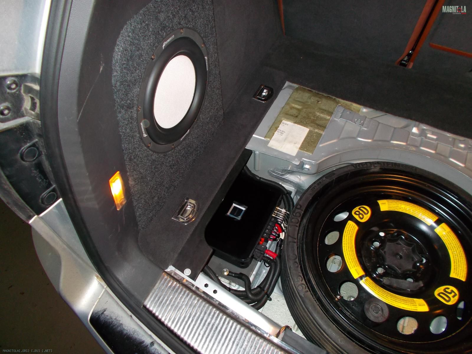 Заменить штатное ГУ на мультимедийный алпайн , сделать поканальный, 2-х полосный фронт не меняя интерьер салона и изготовить сабвуфер по технологии "стелс" в левый штатный карман.