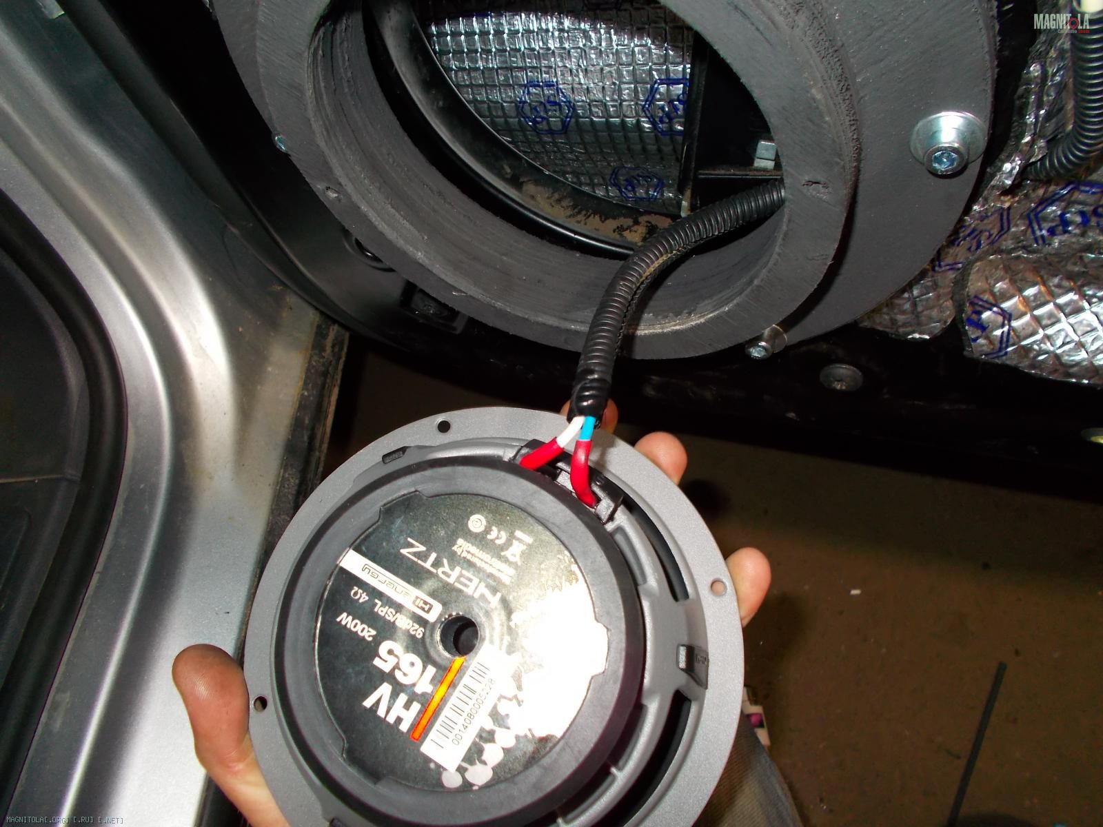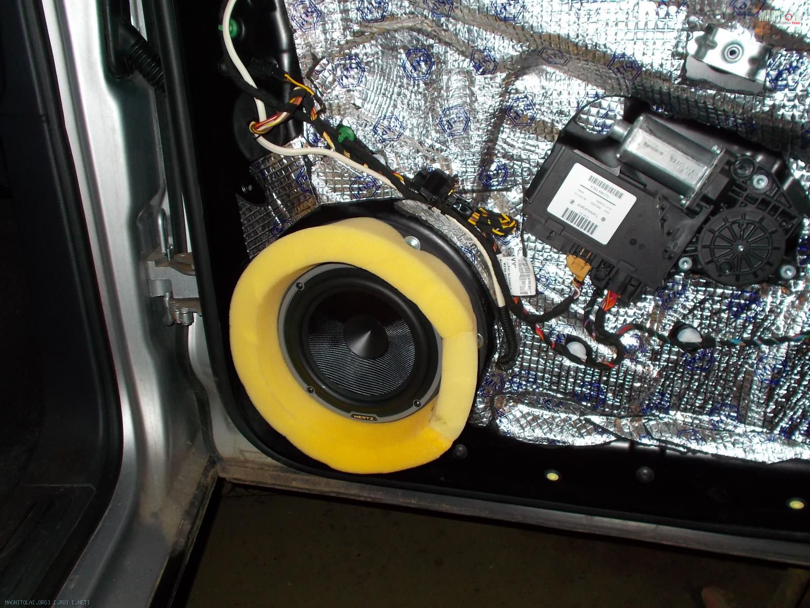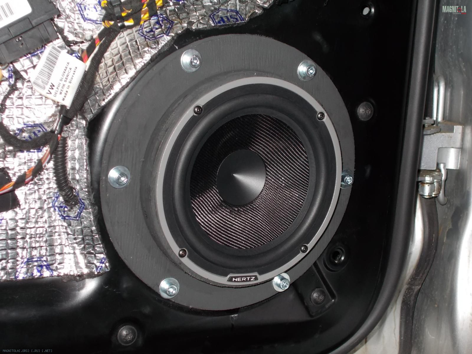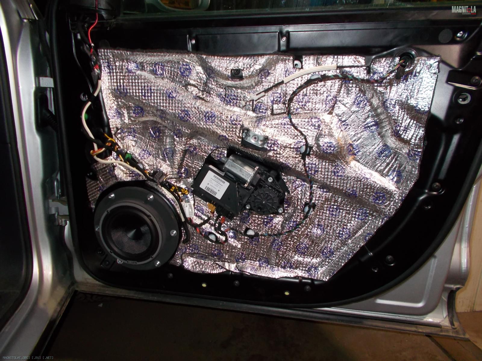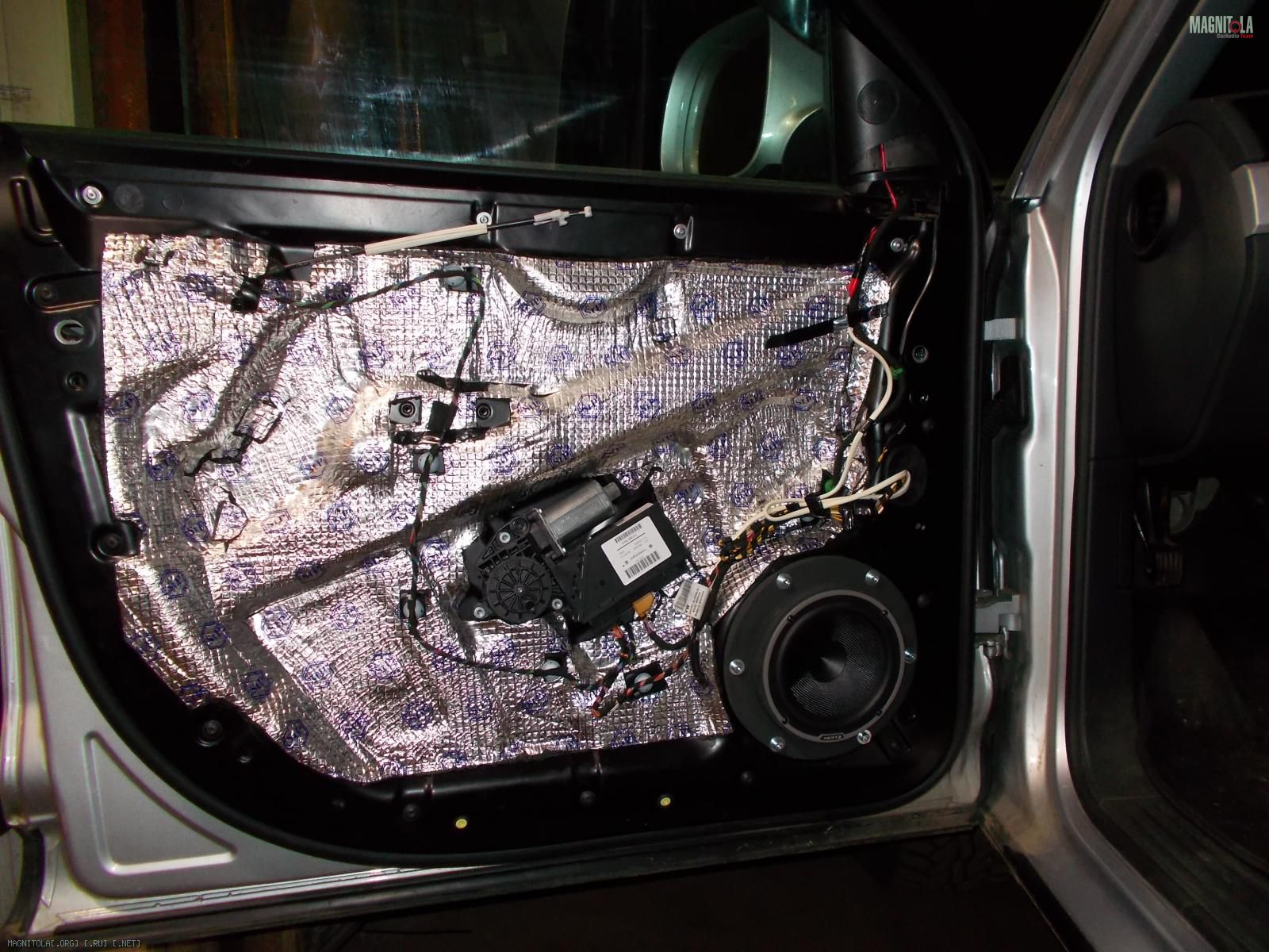 Передние двери подверглись тщательной виброизоляции, под новые мидбасы Hertz изготовил проставочные кольца , а новые твитеры Morel установил в штатные уголки взамен старых.