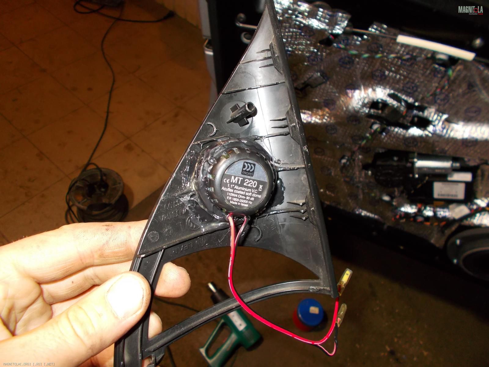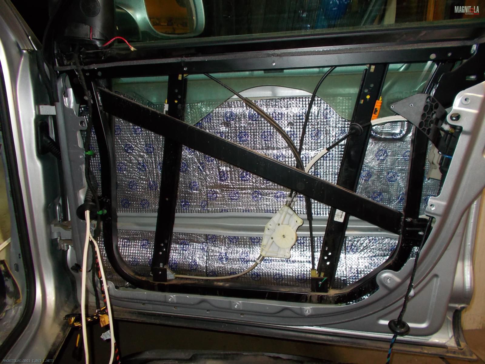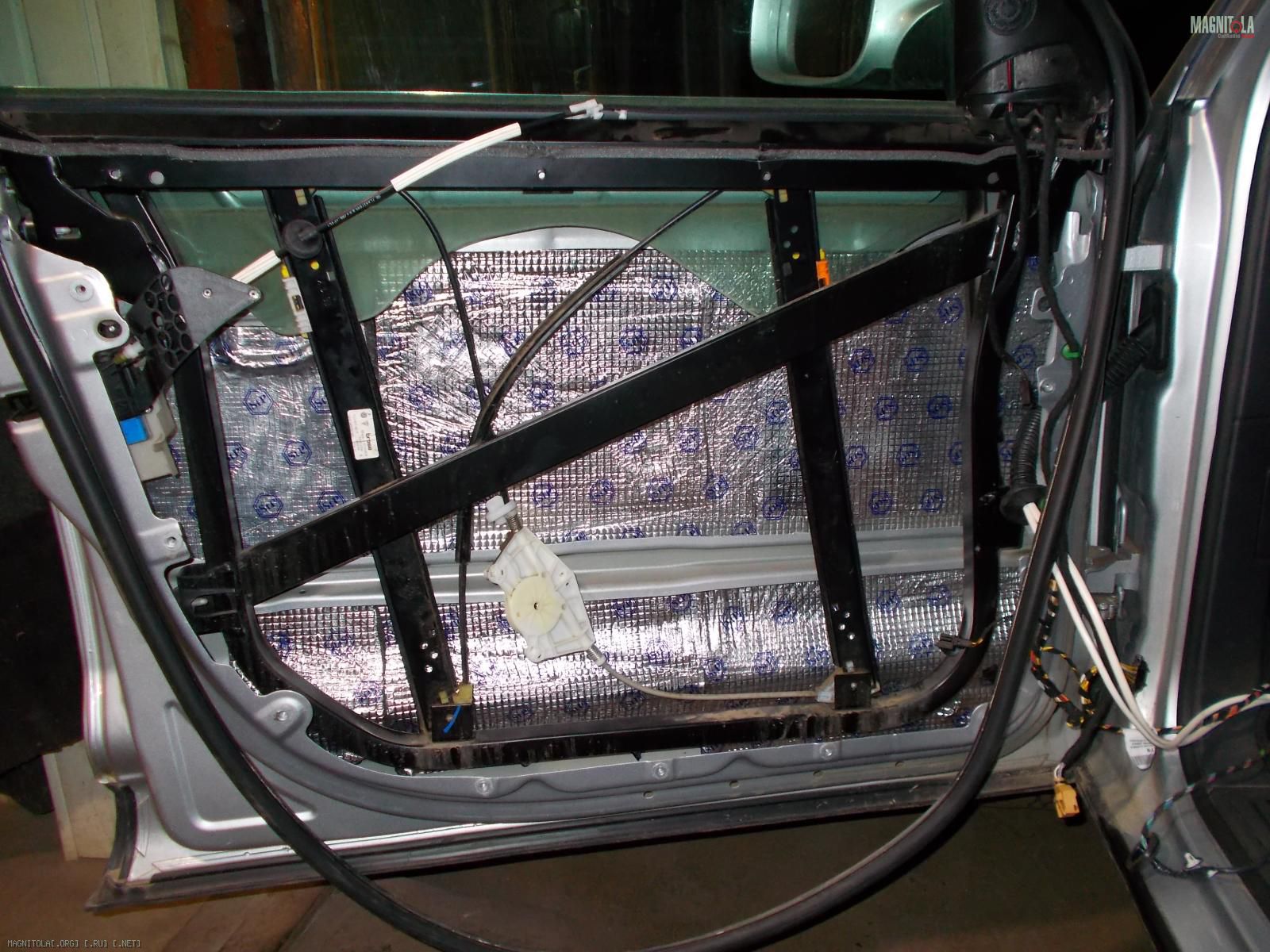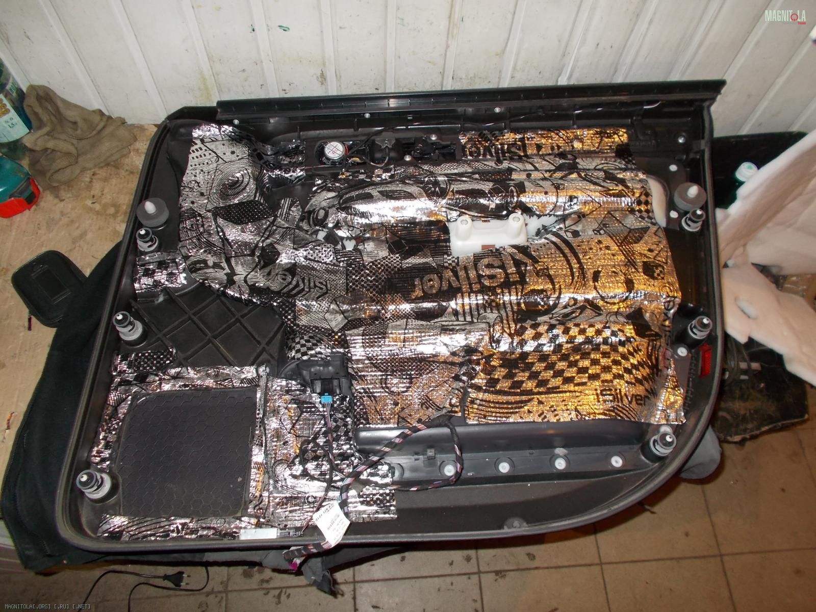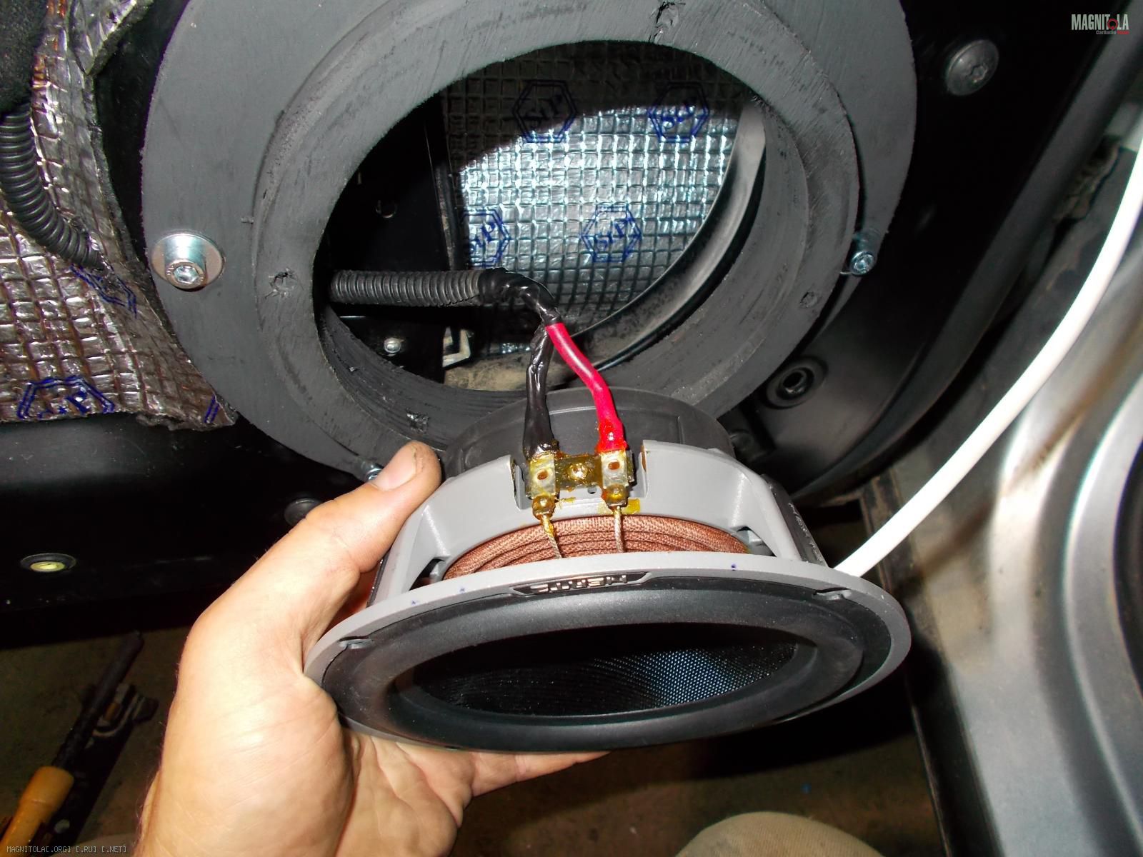 Передние двери подверглись тщательной виброизоляции, под новые мидбасы Hertz изготовил проставочные кольца , а новые твитеры Morel установил в штатные уголки взамен старых.