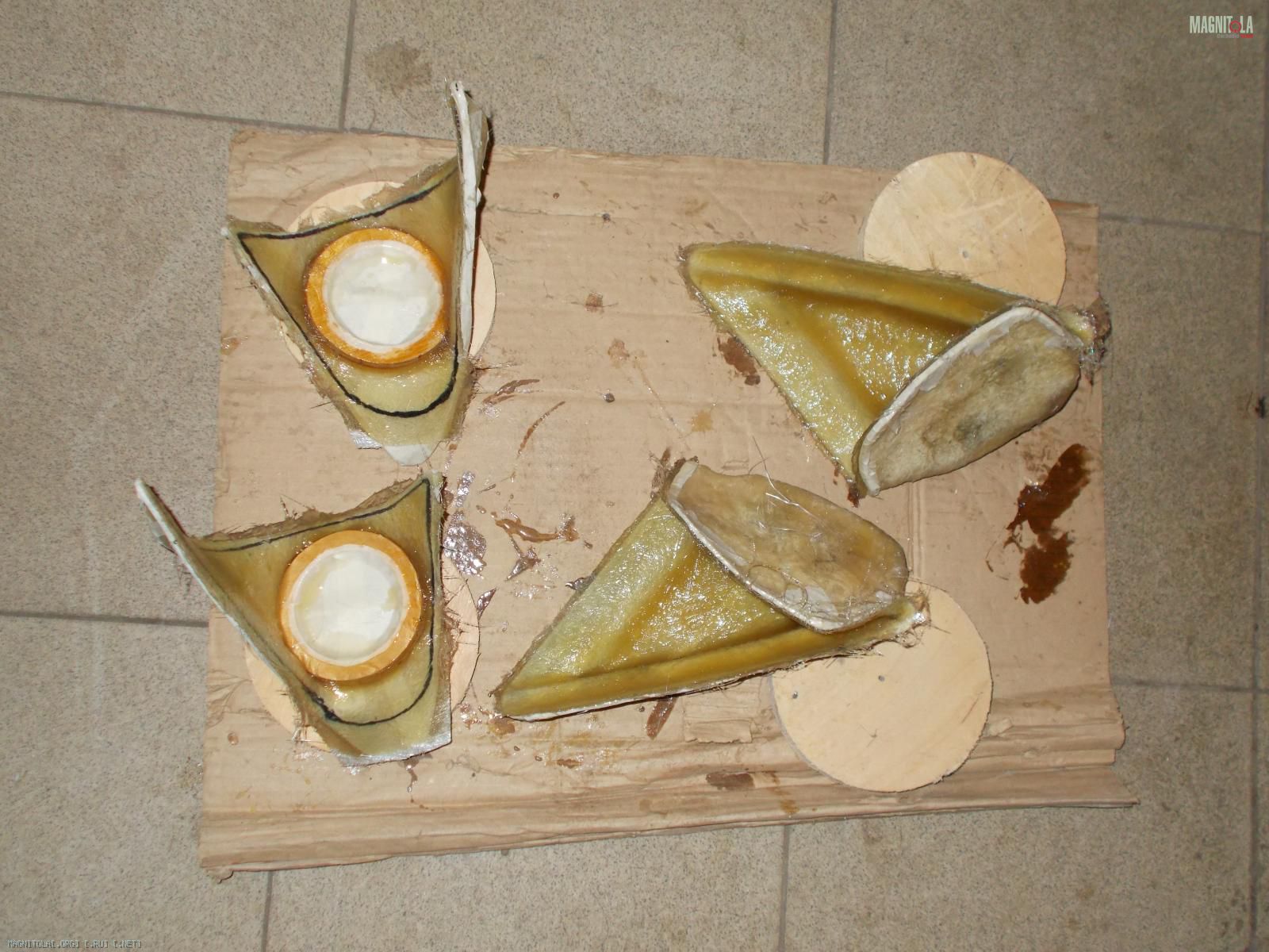 Изночально он мне прислал акустику, я сделал под них опорные кольца, после, отправил ему вместе с термопистолетом, он мне их направил на своем авто и прислал мне уже направленные стойки. Я за три дня сделал их под перетяжку и отдал мастерам на перешив кожей ( фото выложу позже, не забрал еще). Вчера они были полностью готовы.