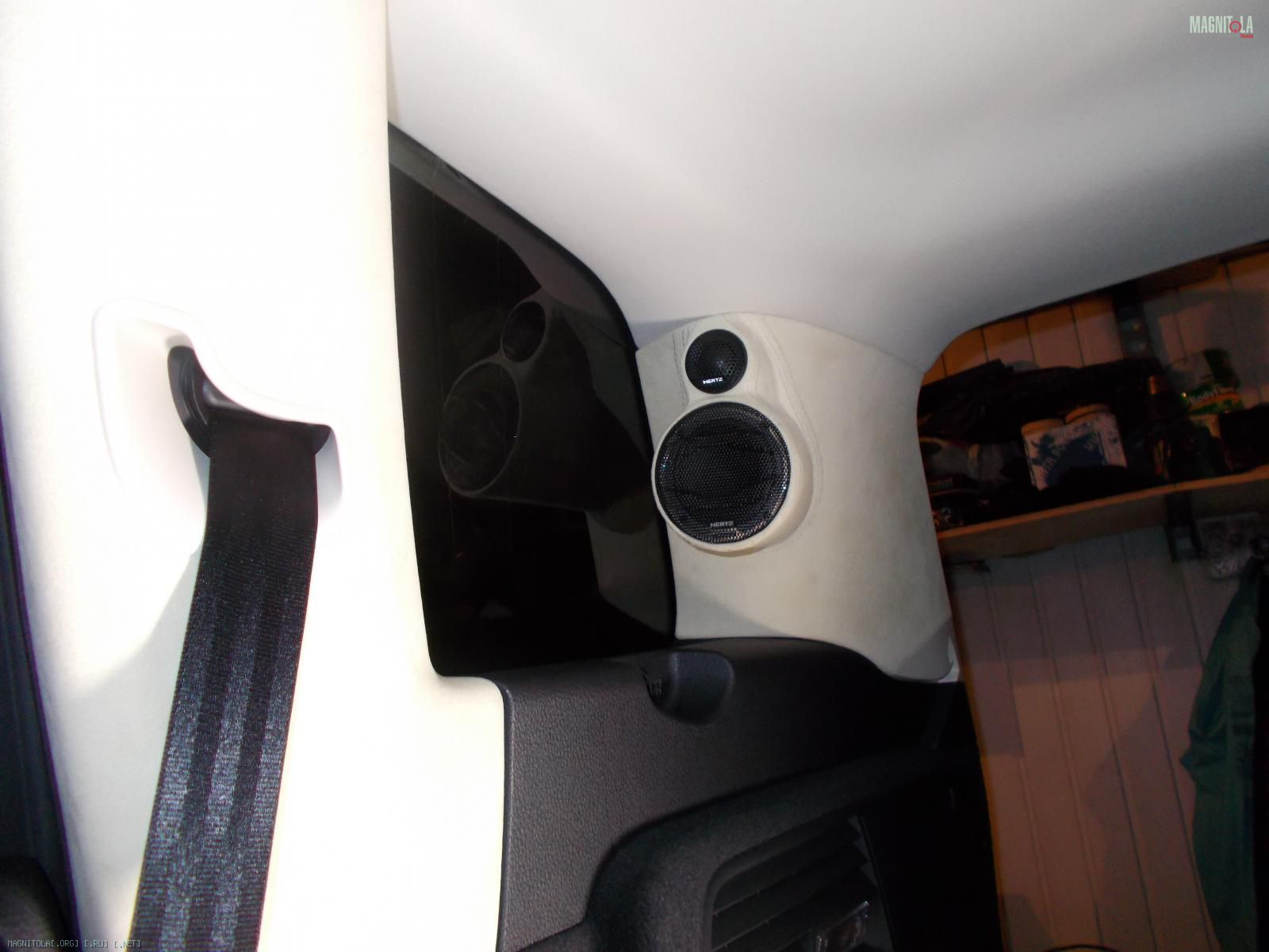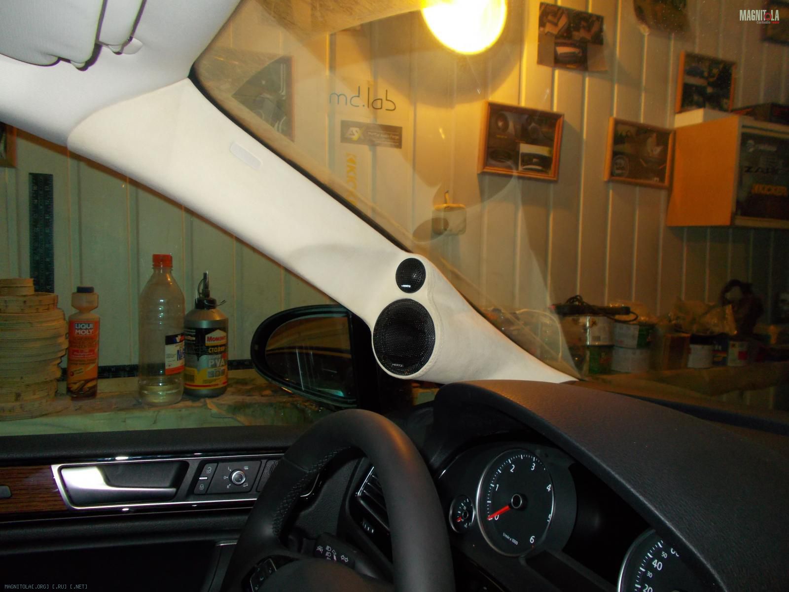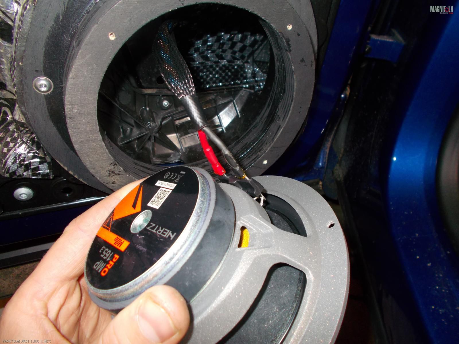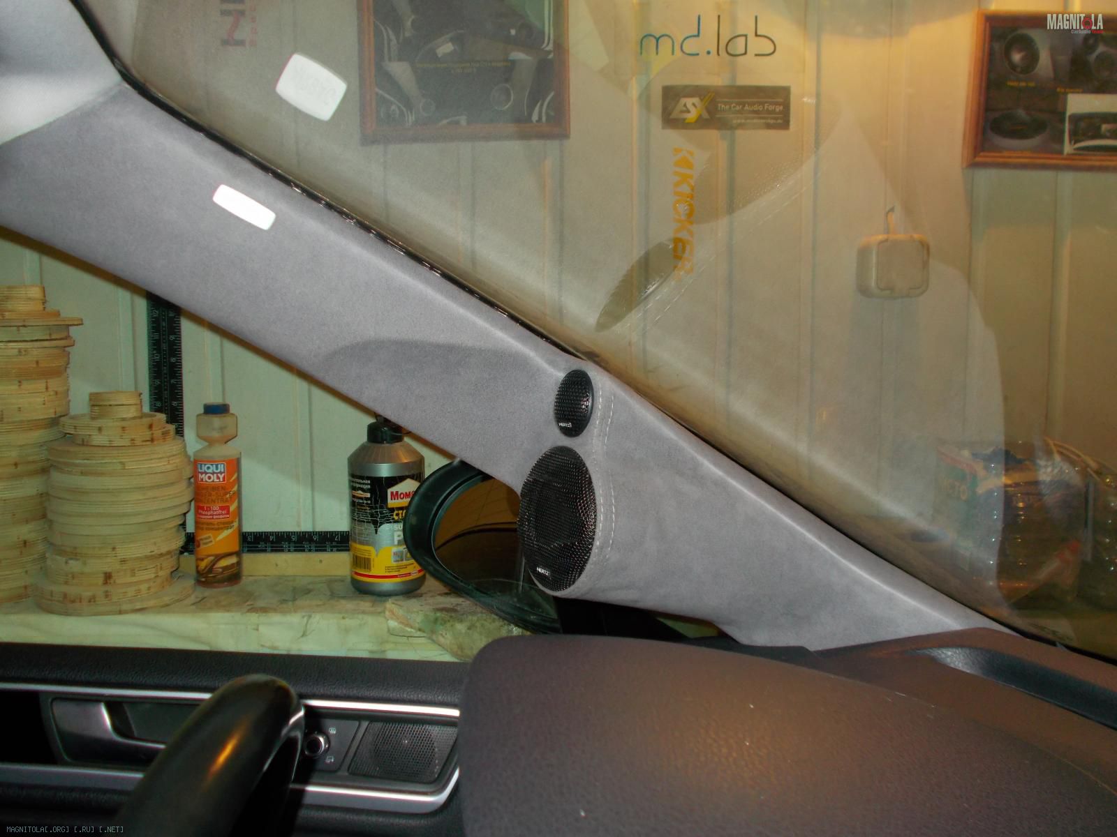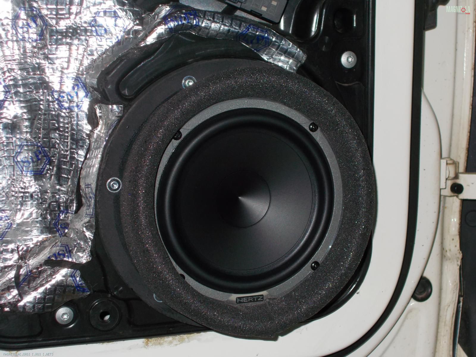 Фронт и тыл трехкомпонентный, на компонентах Hertz mpk 163.3 pro, с выносом сч/вч на передние и задние стойки + перетянуты остальные стойки в один цвет алькантары