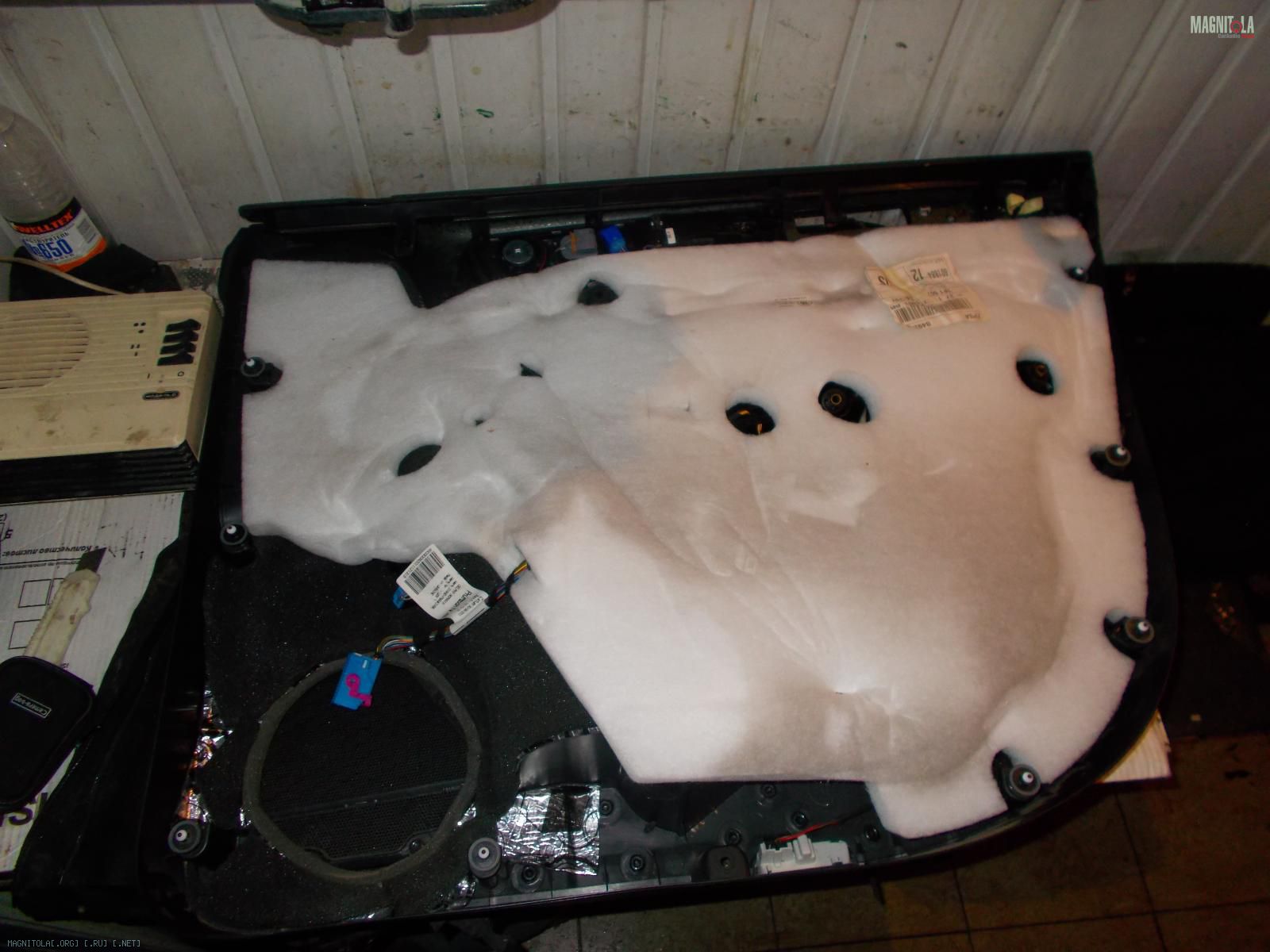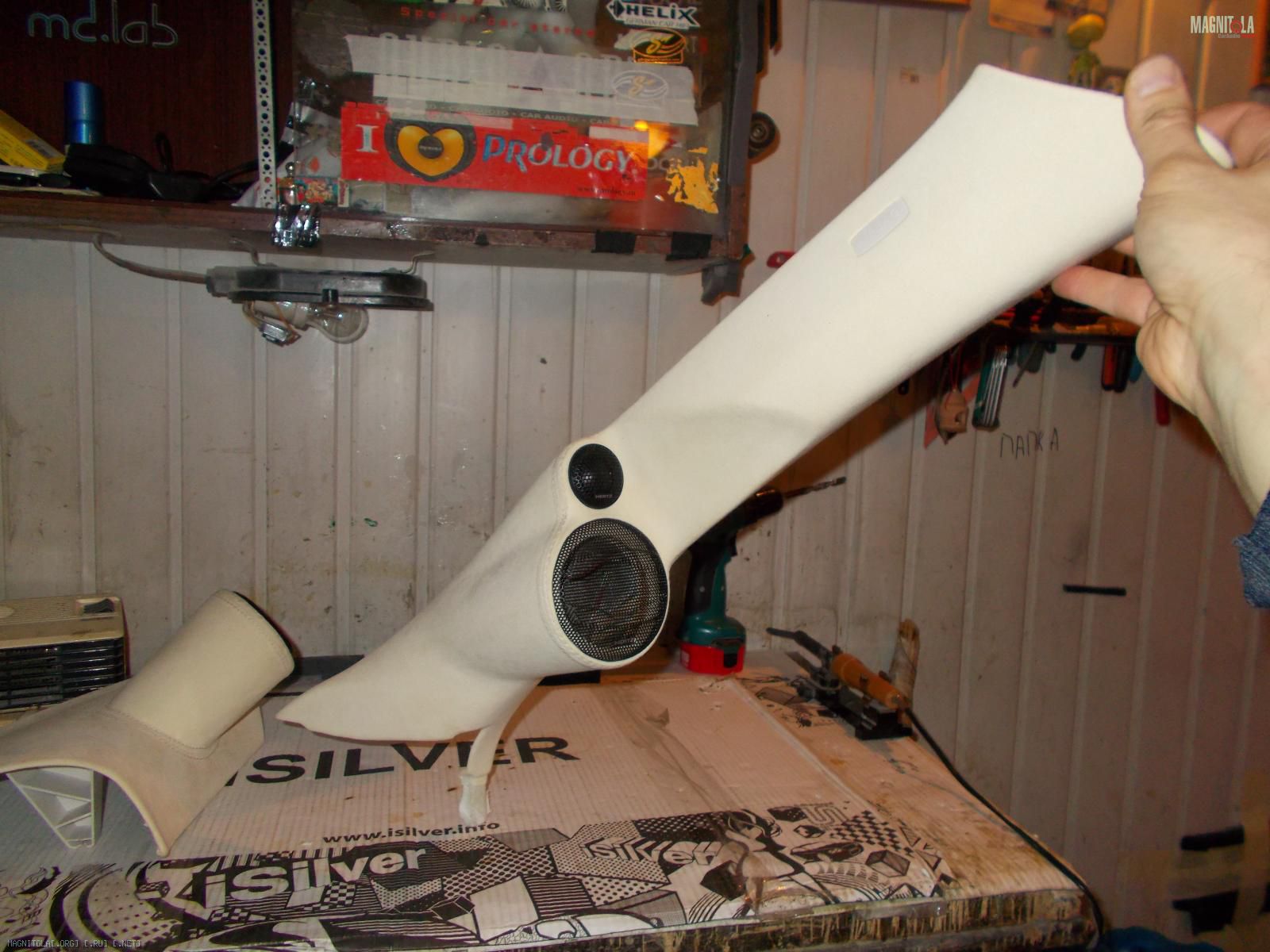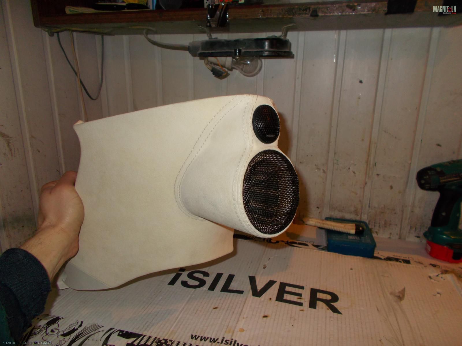 Сч и Вч по традиции вынес на стойки и перетянул серой алькантарой, в цвет будущего, алькантарового потолка. Объем ЗЯ для СЧ 500 мл, направление стоек на задние, противоположные подголовники.