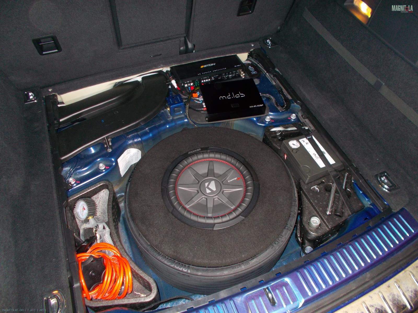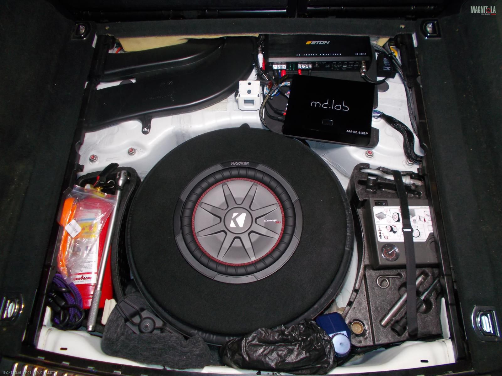 На саб идет моноблок, проверенный годами фирмы Eton sr 500.1. Усилители компактно разместились с правой стороны под полом.