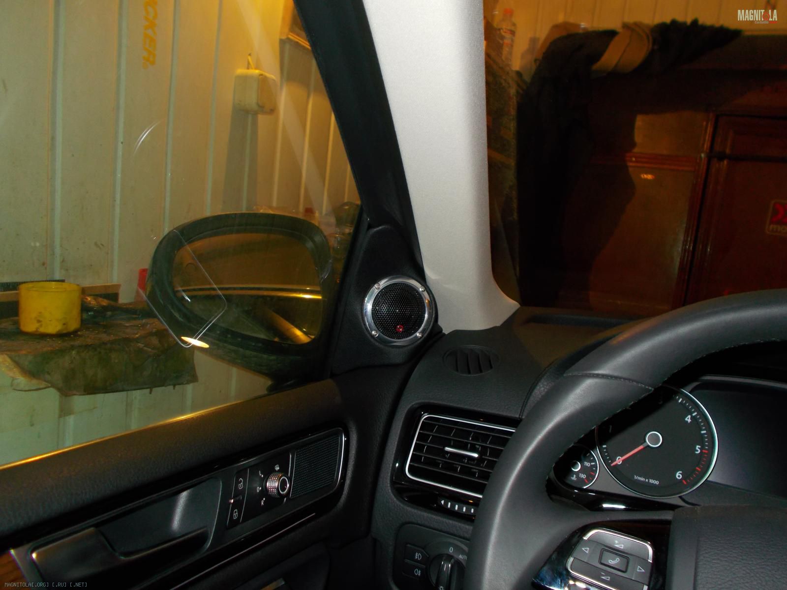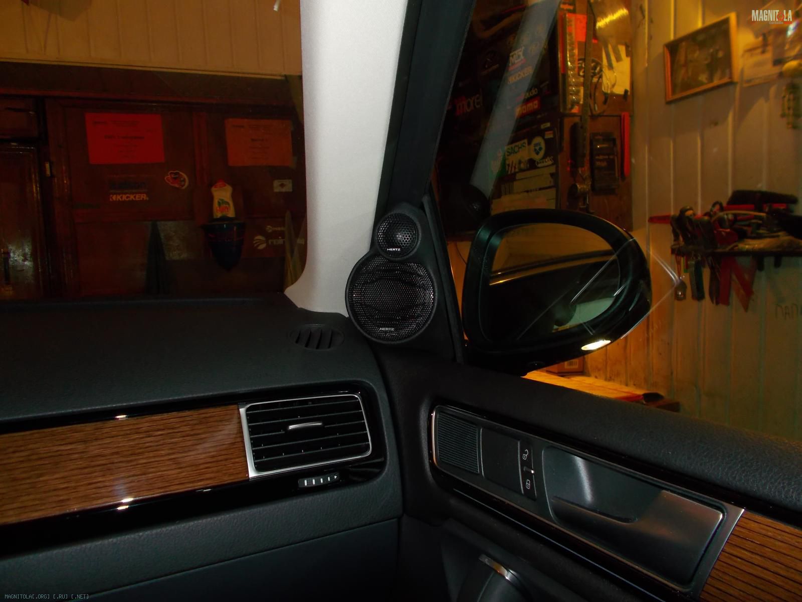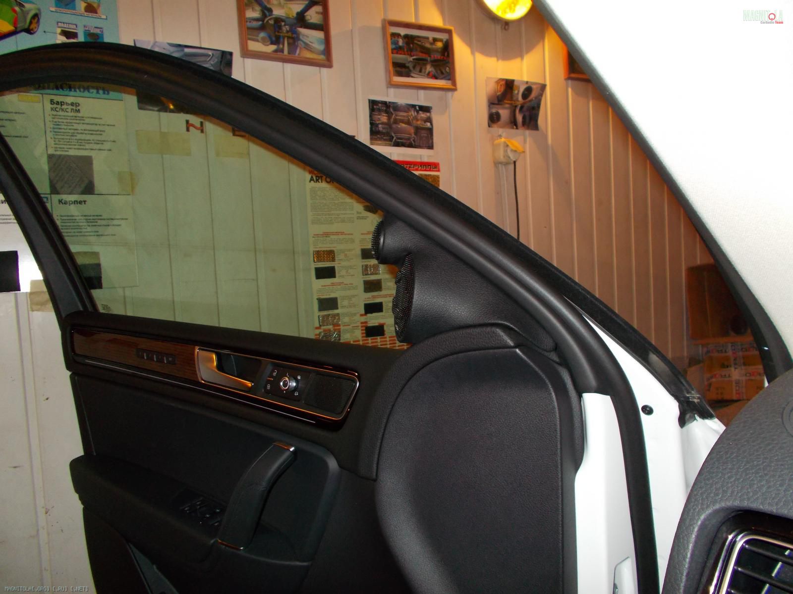 Комплект "Золотого эксклюзива" в Touareg. СЧ/ВЧ в уголки зеркал с акустикой CDT hd 632.