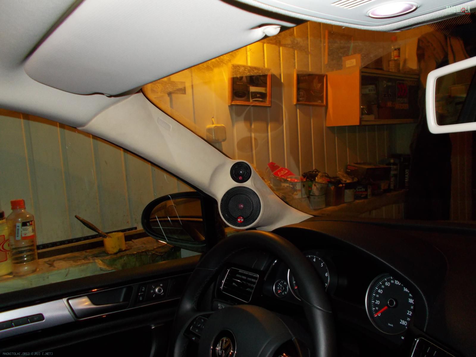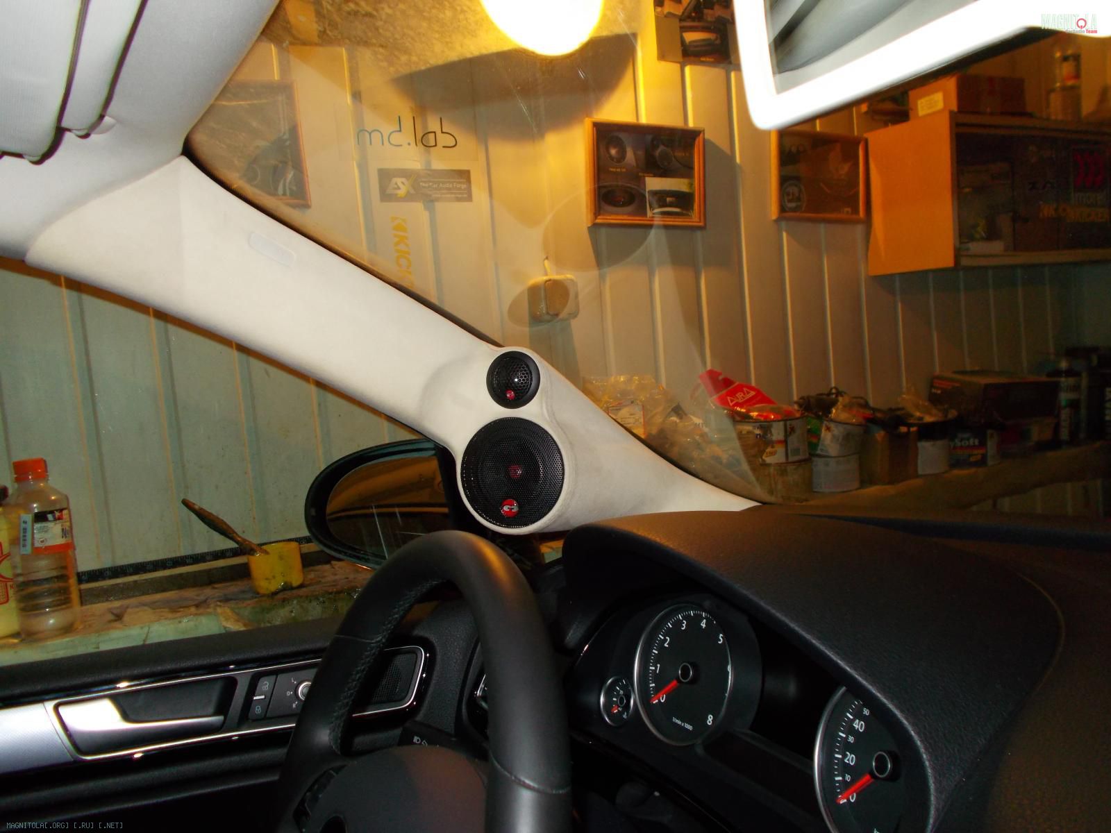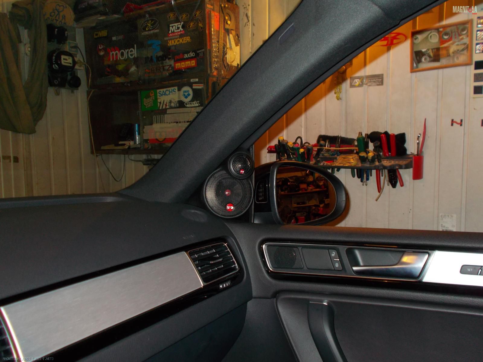 Комплект "Золотого эксклюзива" в Touareg. СЧ/ВЧ в уголки зеркал с акустикой CDT hd 632.