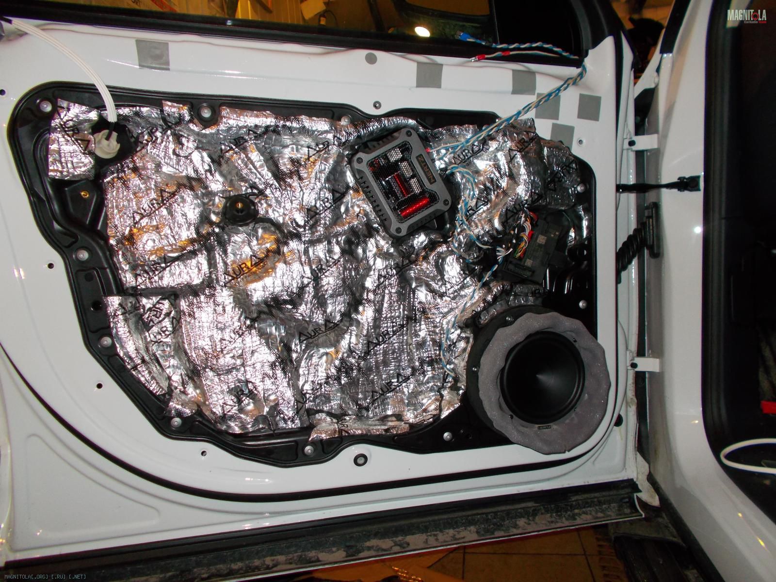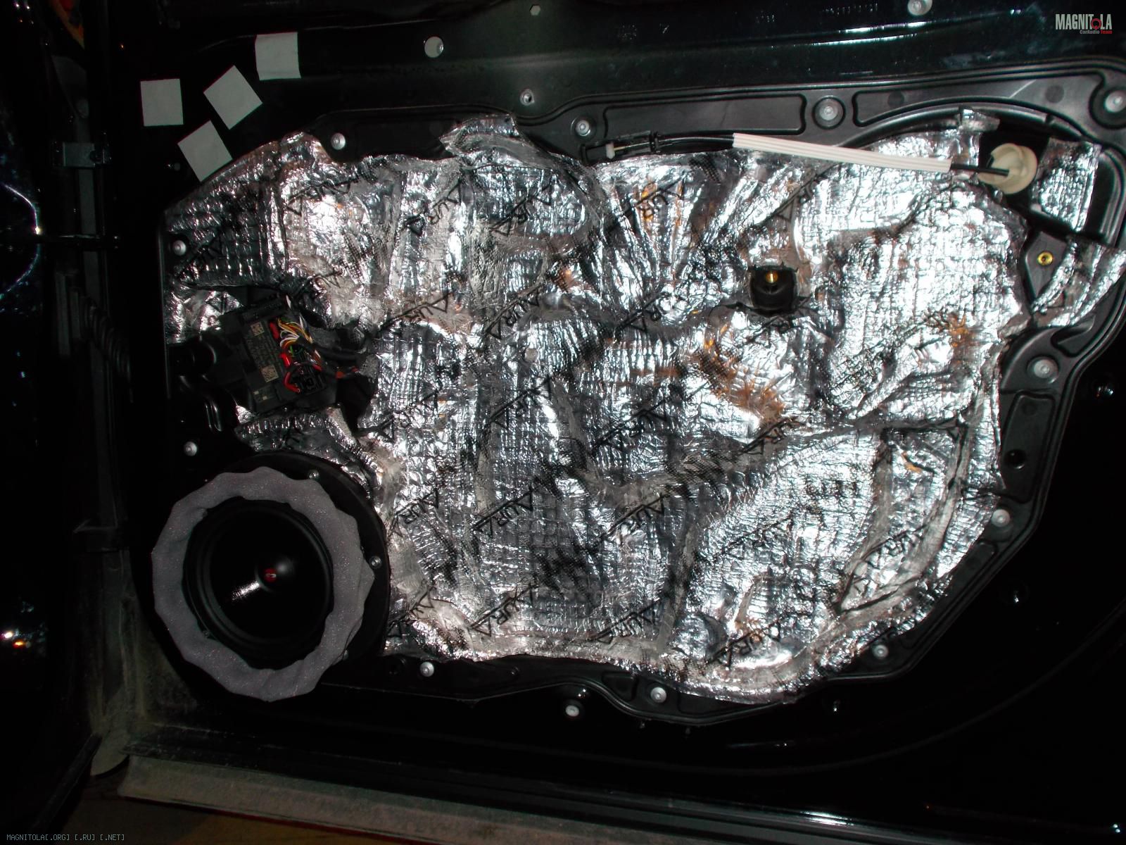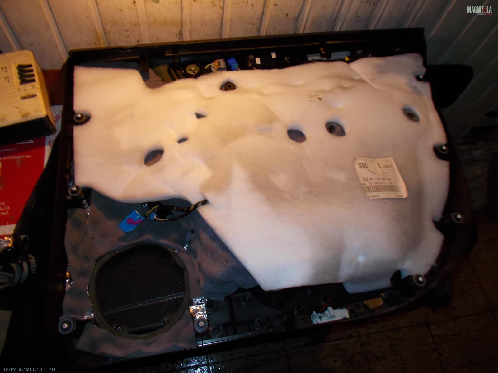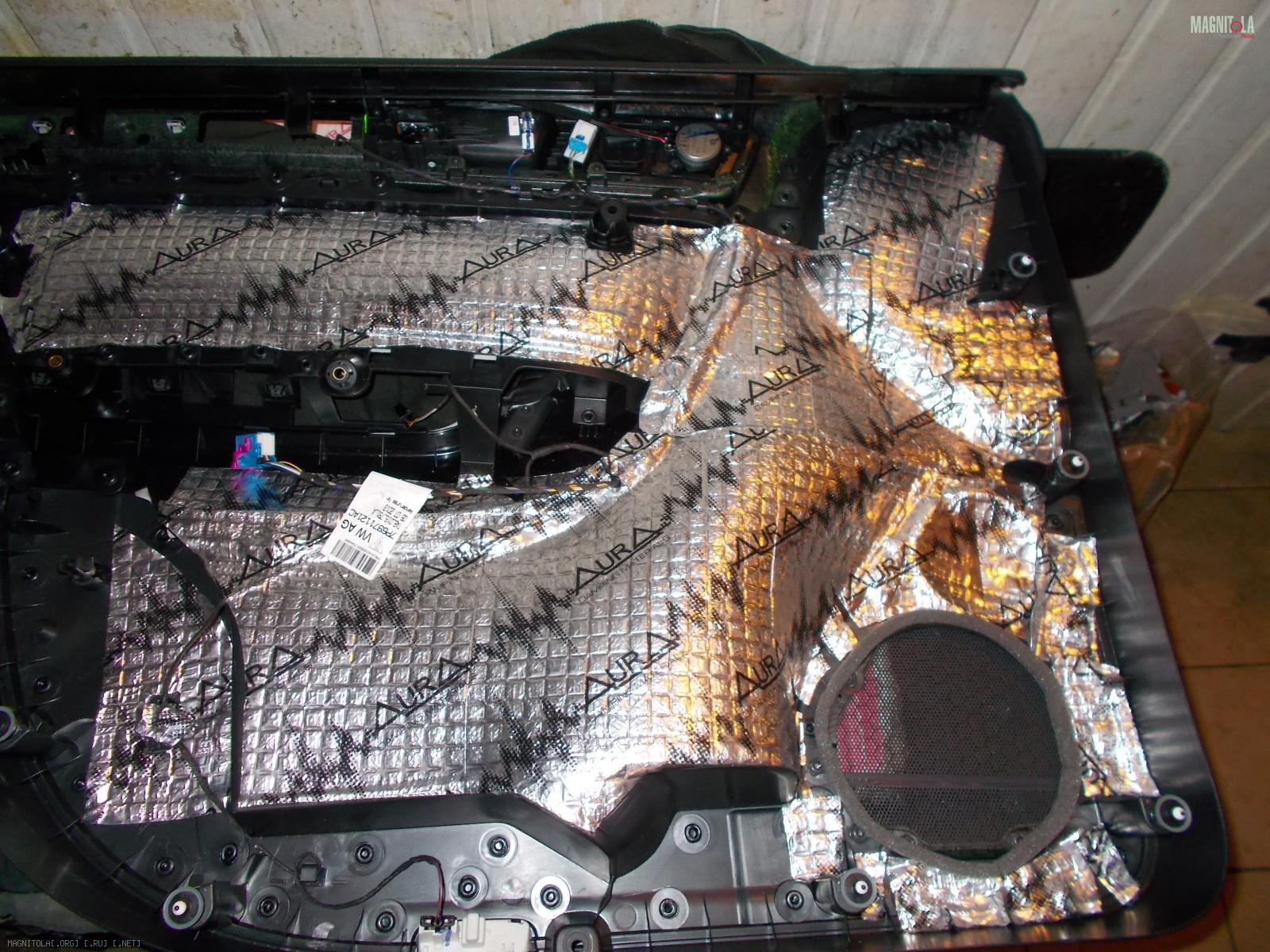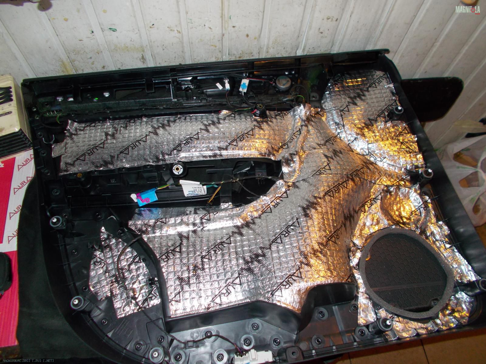 Автомобиль уже был проклеен шумоизоляцией и эту статью расходов я из списка вычеркнул, но как выяснилось позже, что только на половину. Двери проклеены только внутри, на щите где динамик они ничего не клеят. Пришлось доклеивать наружние щиты.