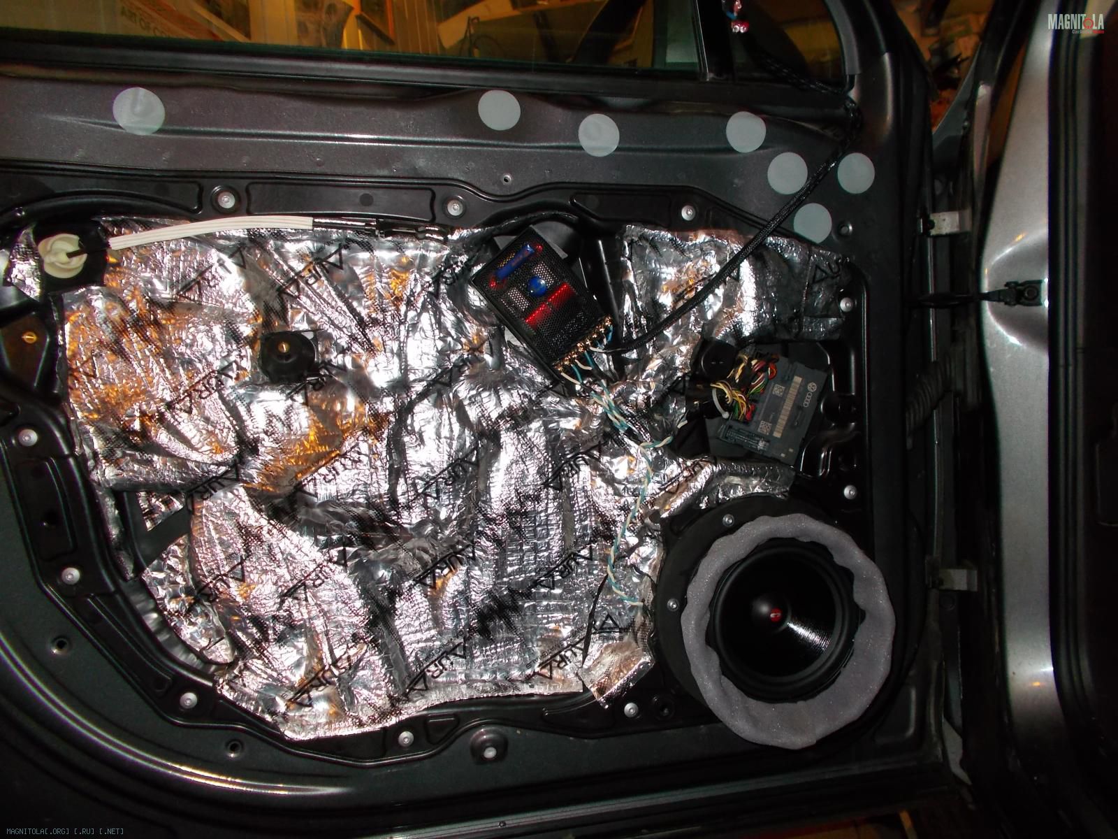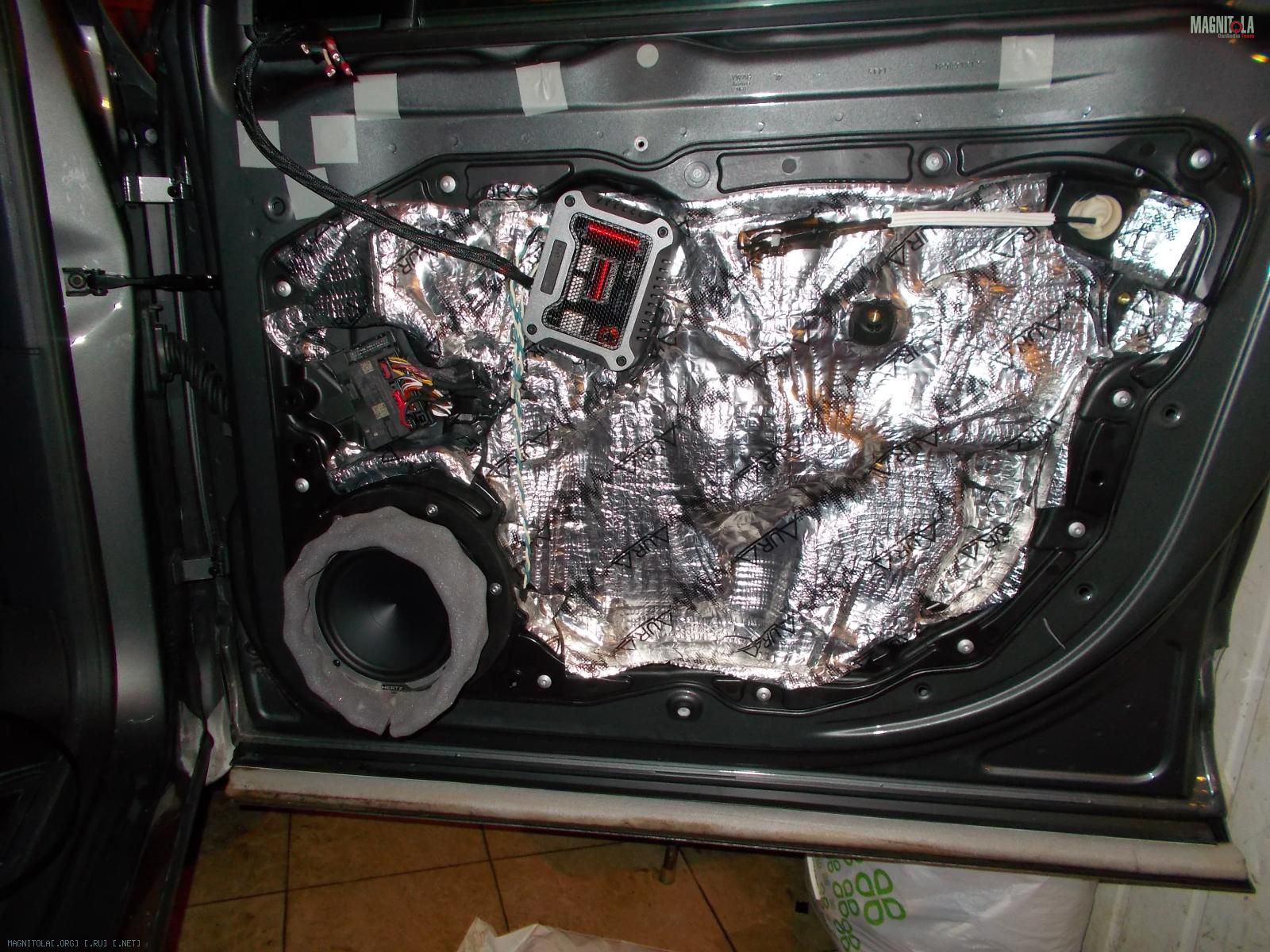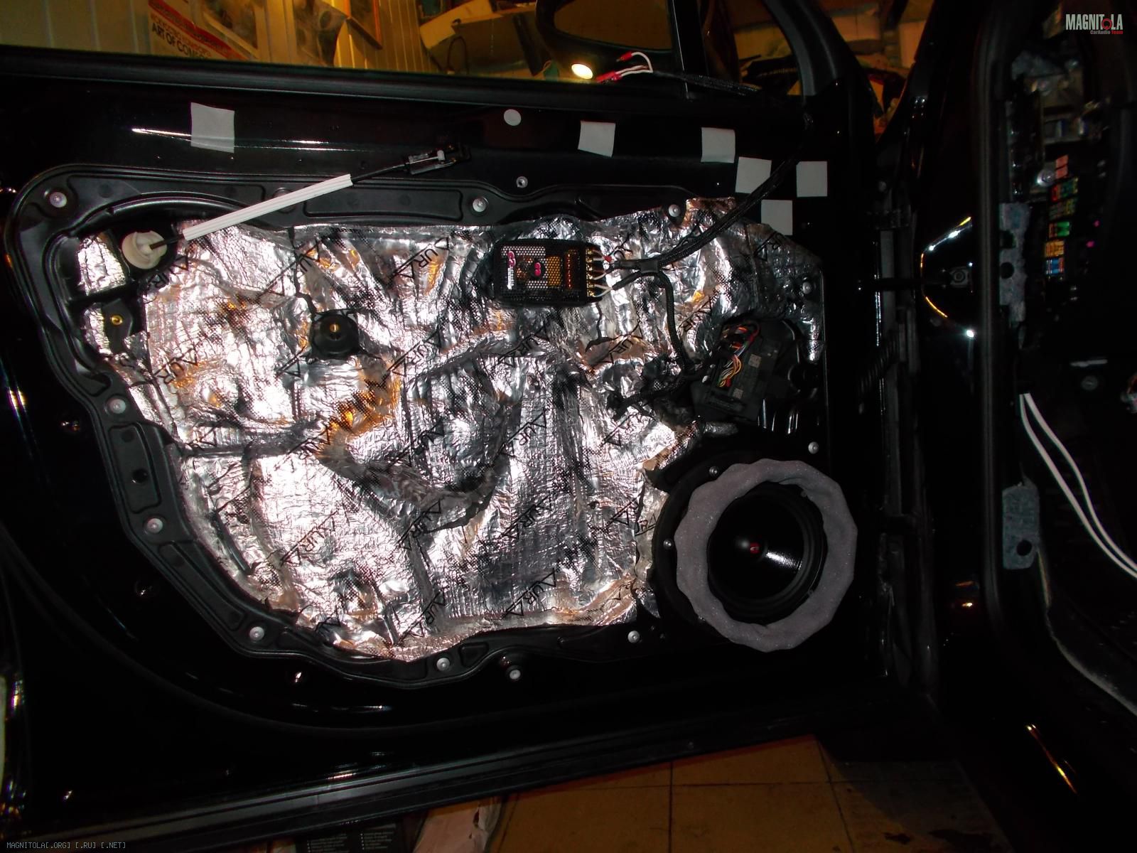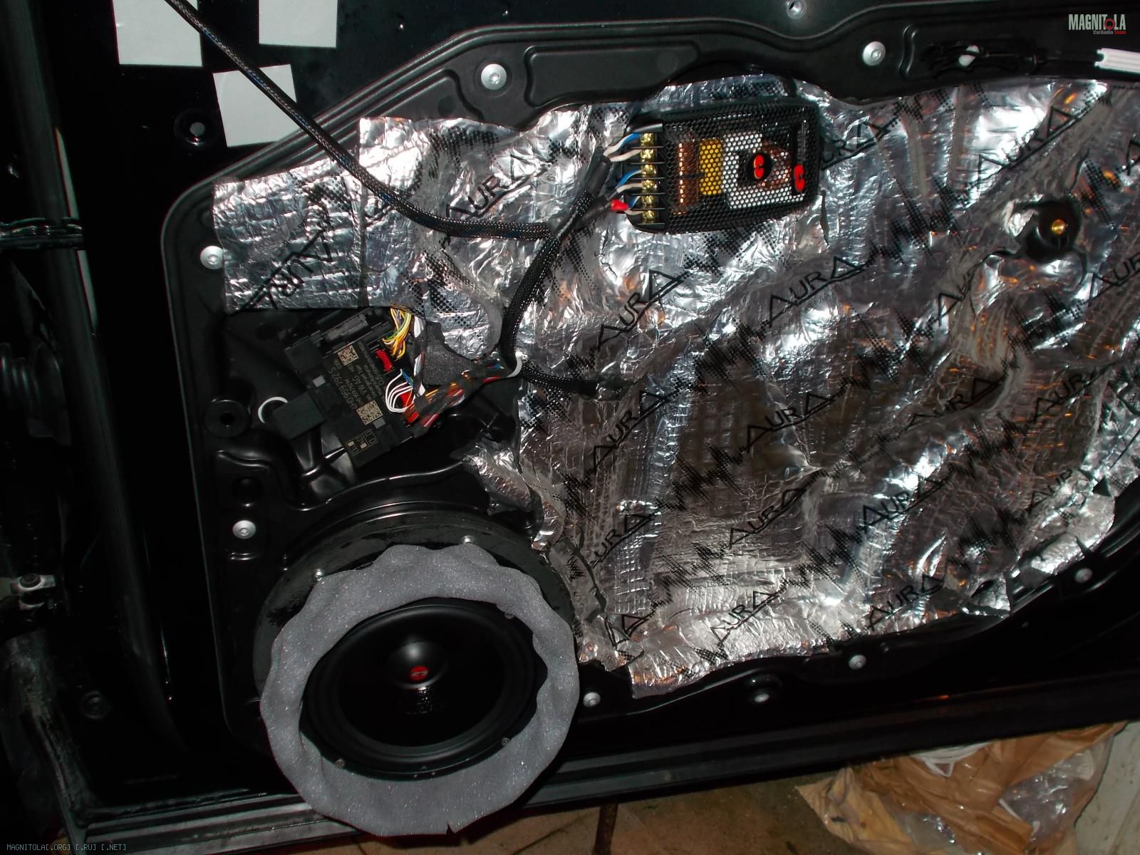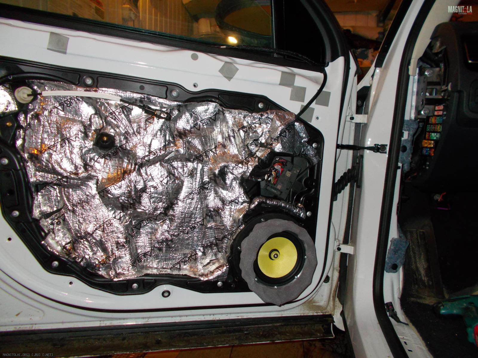 Автомобиль уже был проклеен шумоизоляцией и эту статью расходов я из списка вычеркнул, но как выяснилось позже, что только на половину. Двери проклеены только внутри, на щите где динамик они ничего не клеят. Пришлось доклеивать наружние щиты.