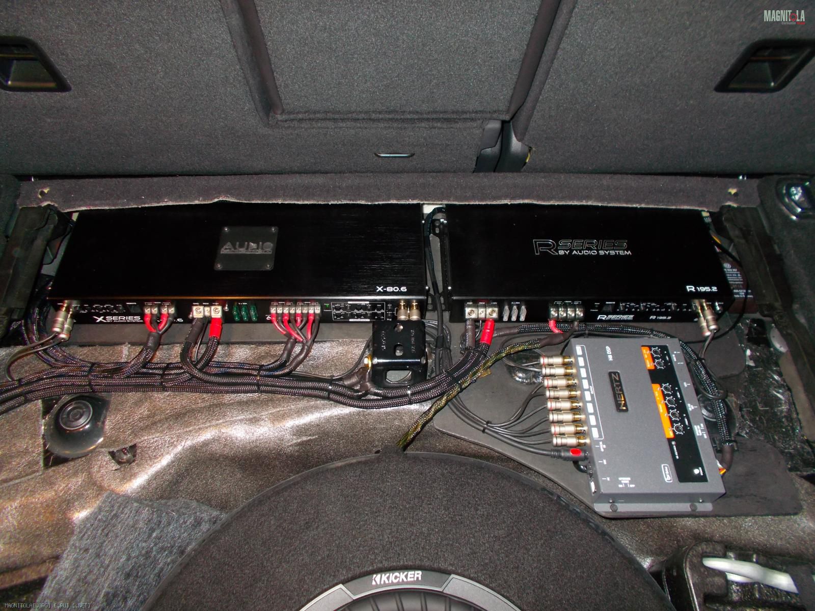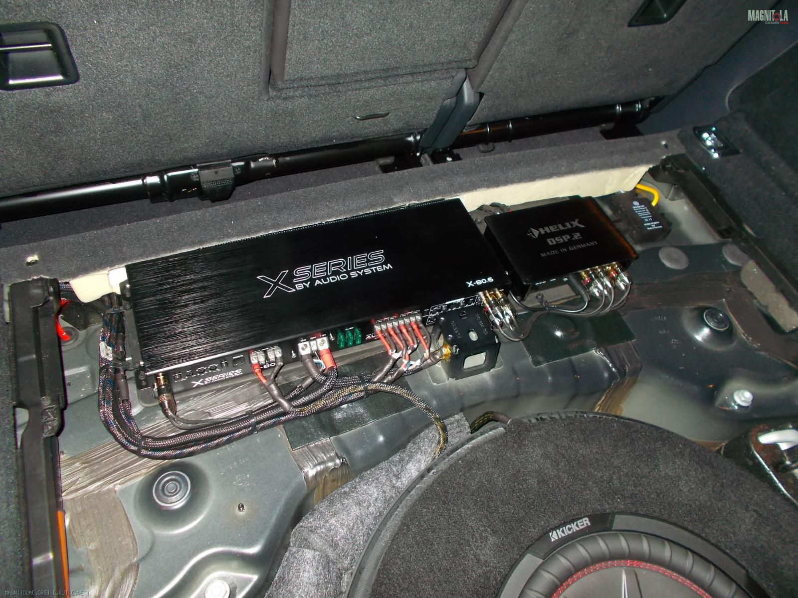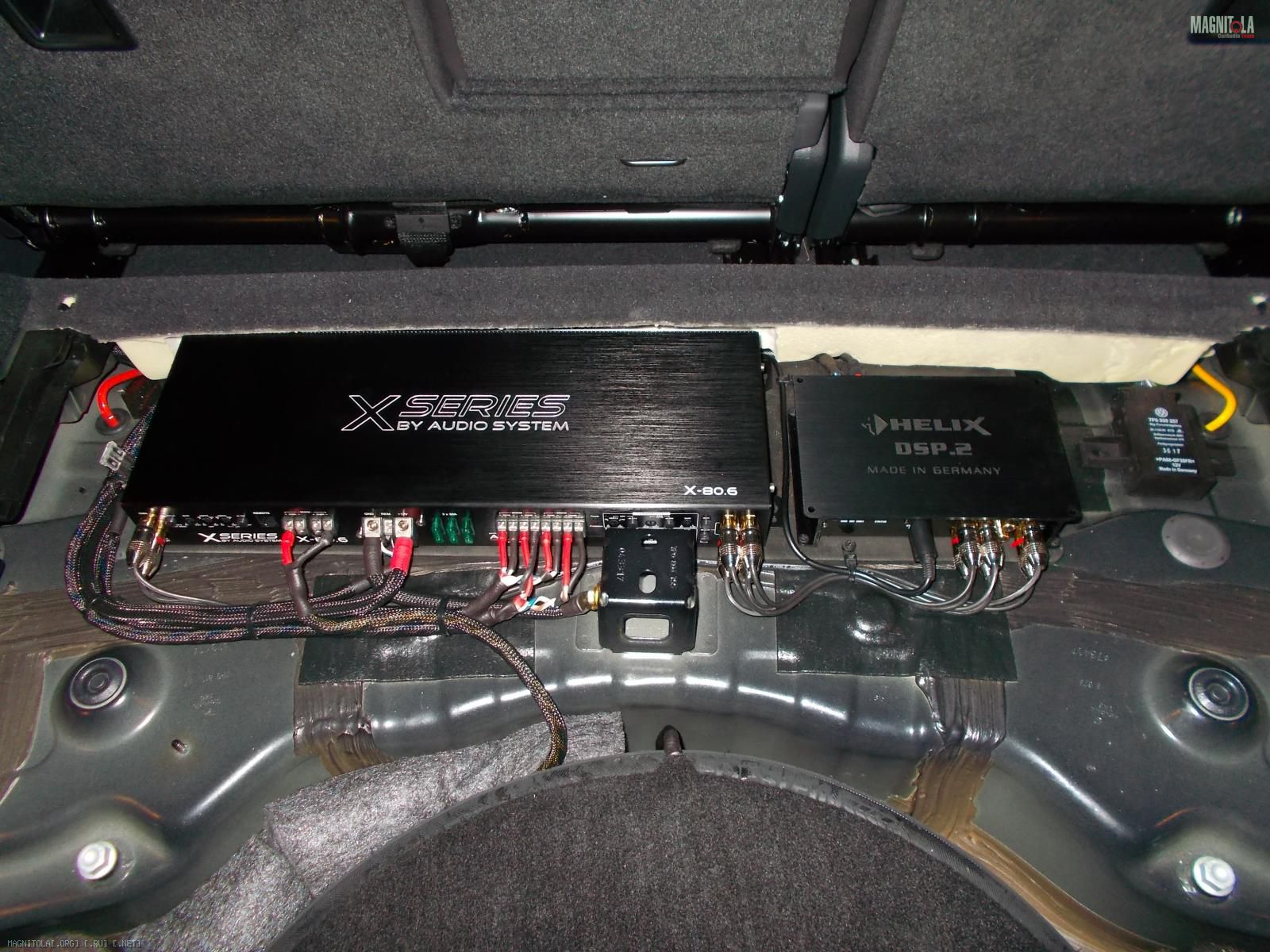 1) Усилитель на фронт и тыл, проверенный уже не раз 6-ти канальный Audiosystem x 80.6 подключенный: 2 канала на СЧ\ВЧ от кроссоверов, 2 канала на НЧ в передних дверях и тыл двухкомпонентный на пассиве ( от кроссоверов) от последних, двух каналов.
