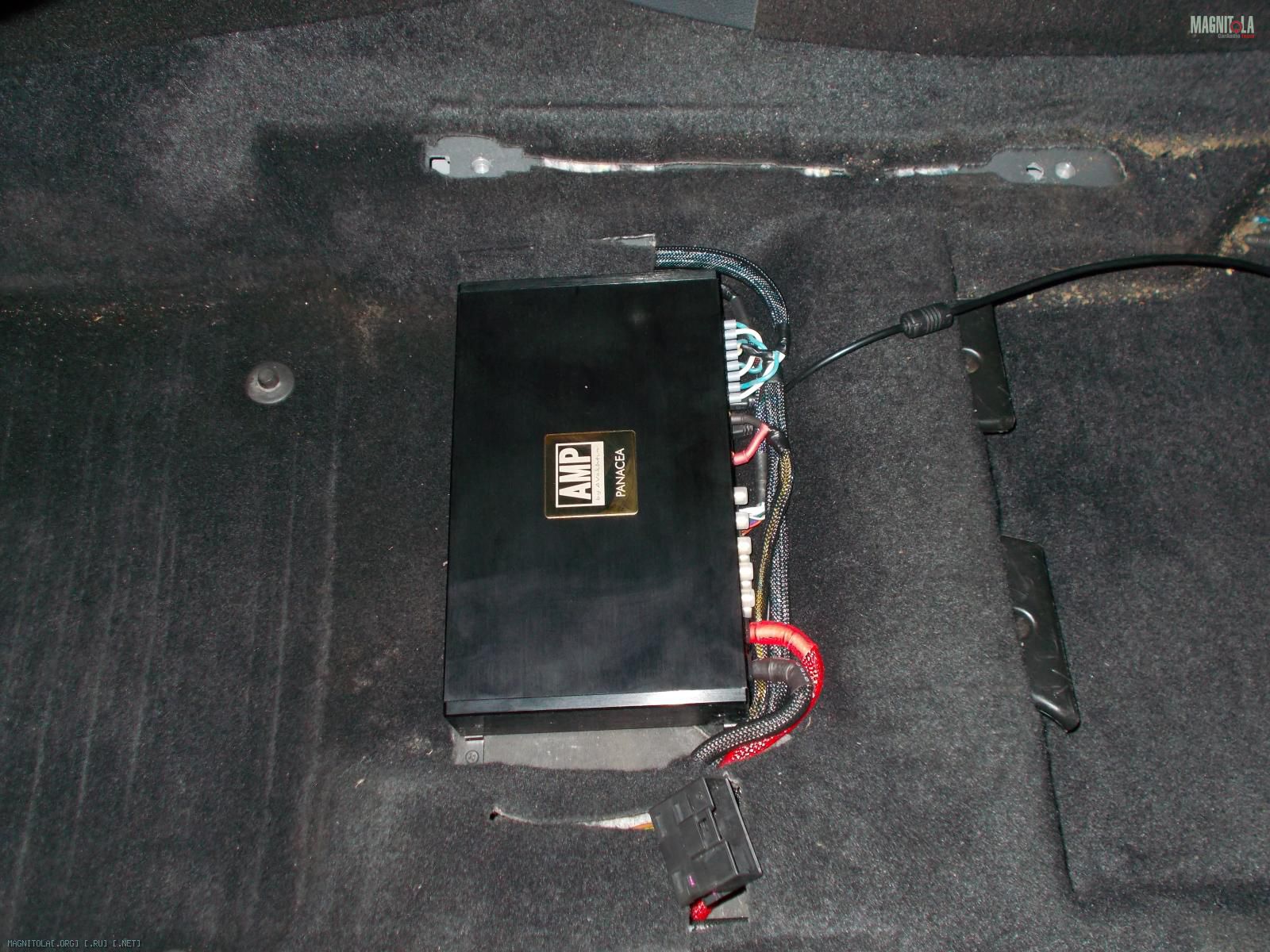 Усилитель решили взять АМП Панацею, так сказать, на пробу и завести по высокому уровню от штатного коламбуса, подключив 4 канала на фронт и два канала мостом, на уже имеющийся, корпусной сабвуфер.