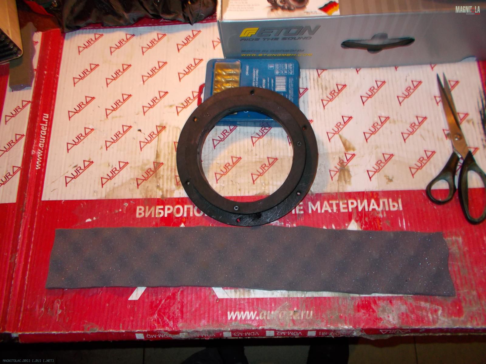 Для мидбасов сделал новые, проставочные кольца и закрепил их на болты м6. Поверх кольца приклеивается сопрягающее кольцо, чтобы звуковая волна не уходила под обшивку.