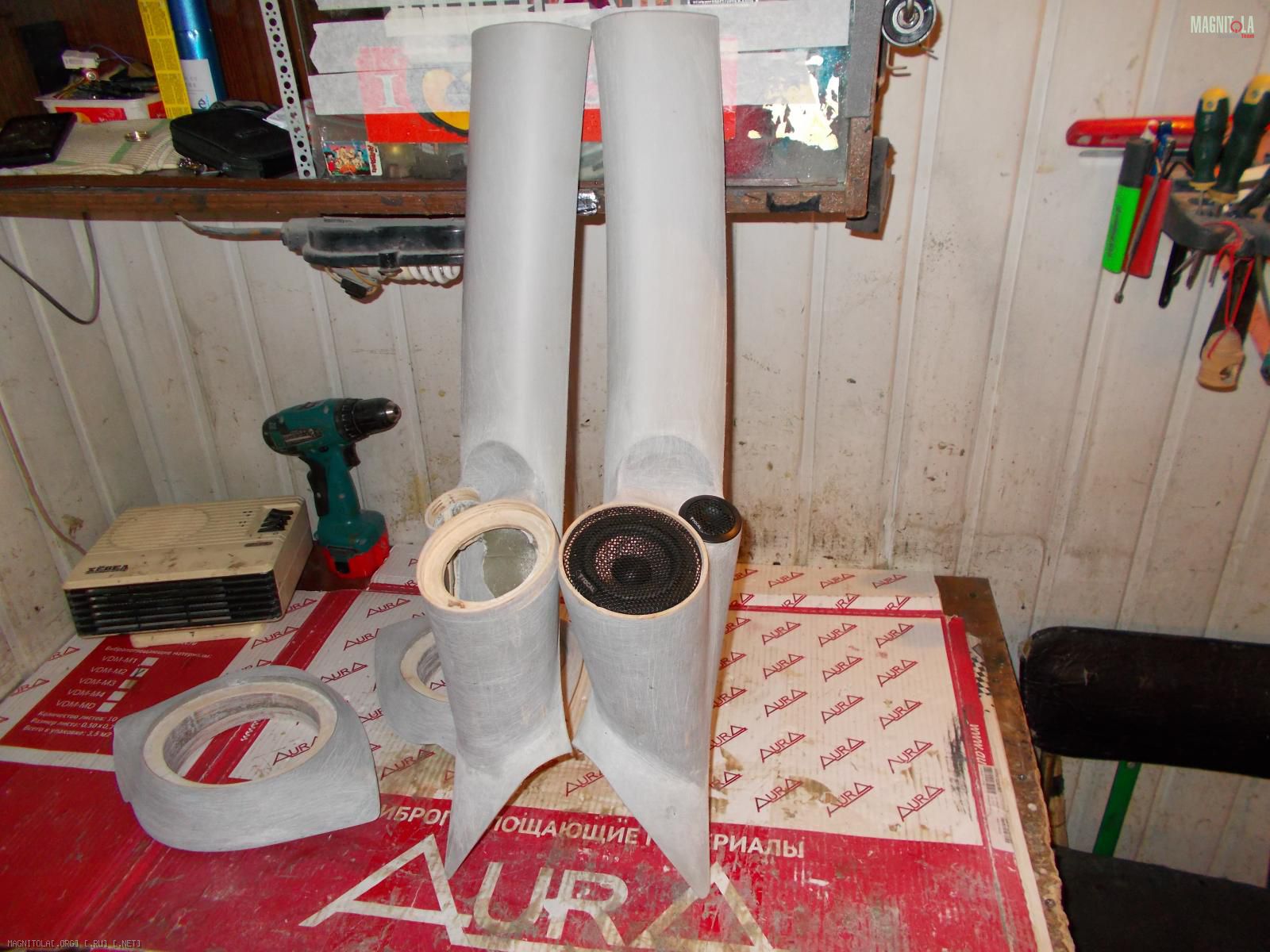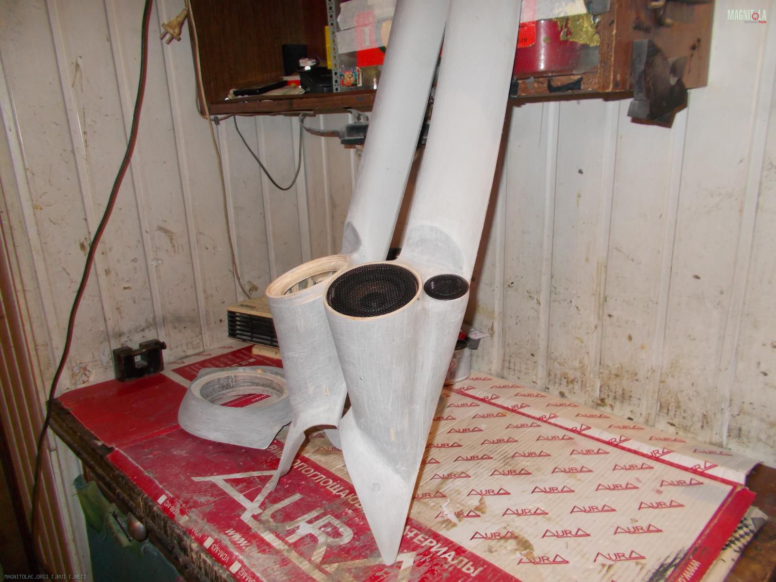 Направление стоек решили изменить и направить их на противоположного слушателя, (ранее делал их с большим доворотом в центр салона) именно так сделано у меня в автомобиле. Послушав, ему оно пришлось по душе, что в итоге сказалось очень и очень положительно, как на звуке, так и по перегораживанию обзора со стороны водителя.