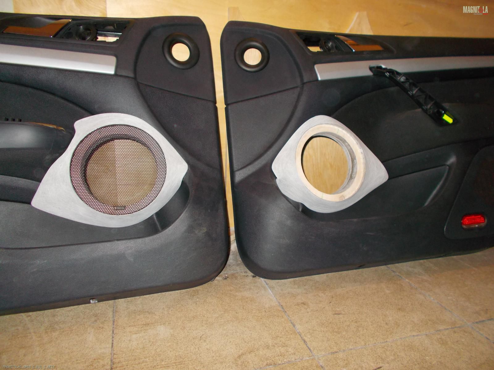2-ой Вариант — это не трогать обшивку, поставить в штатные места новые мидбасы (мидбасы в штатном варианте стоят в заде и играют прямо в сиденье), а на стойки сделать ширики CDT-HD2al, т.к. основной сч и вч диапазон будет идти из стоек, а миды пусть "бубнят" в штатных местах.