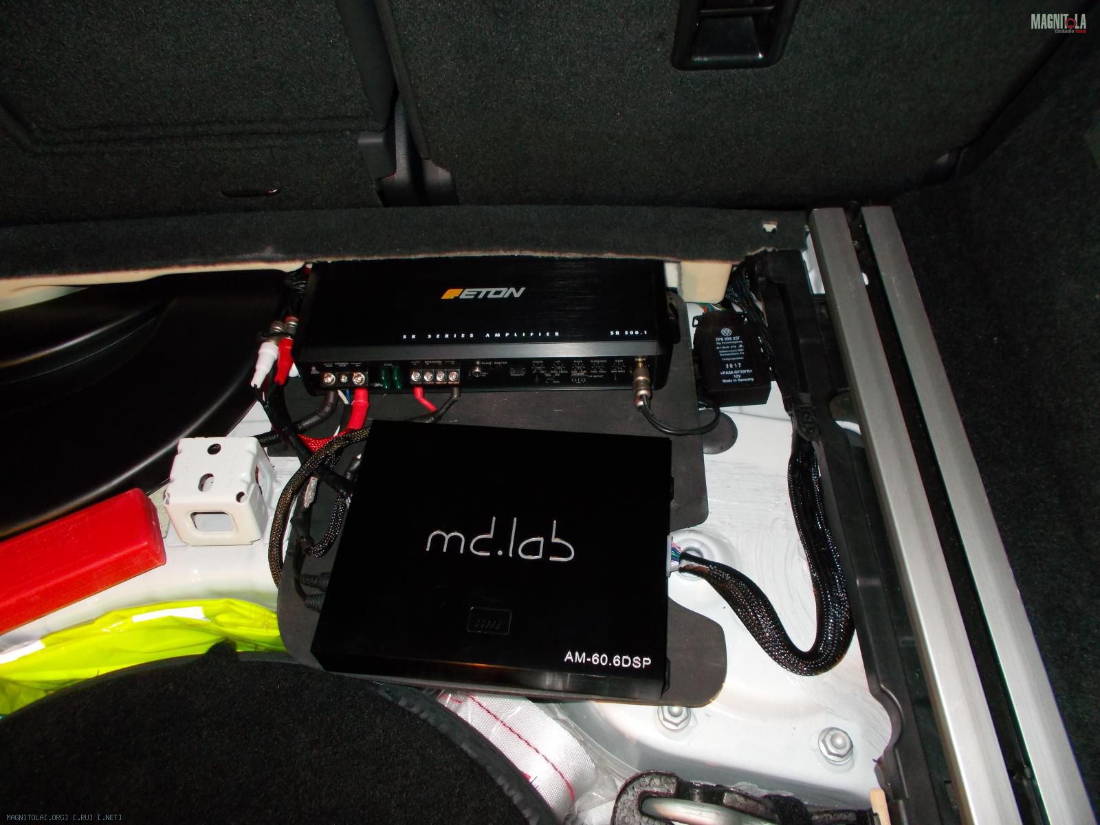 Состав системы прежний: RNS -850 через триому тослинк, ширики CDT HD 2, мидбас CDT ES6 KW, усилитель на саб Eton sr 500.1, саб Kicker cwrt122, только вместо мд лаба AM 6.60, поставил тоже усилитель с процессором, только amp panacea da-80.6 dsp. Он оказался все таки интереснее по звуку, мощнее и внешне он по красивее. Единственный минус - это то, что подключение пульта управления и шнура настройки находится под клемниками акустики, но это конечно мои трудности)) на звук это никак не влияет!