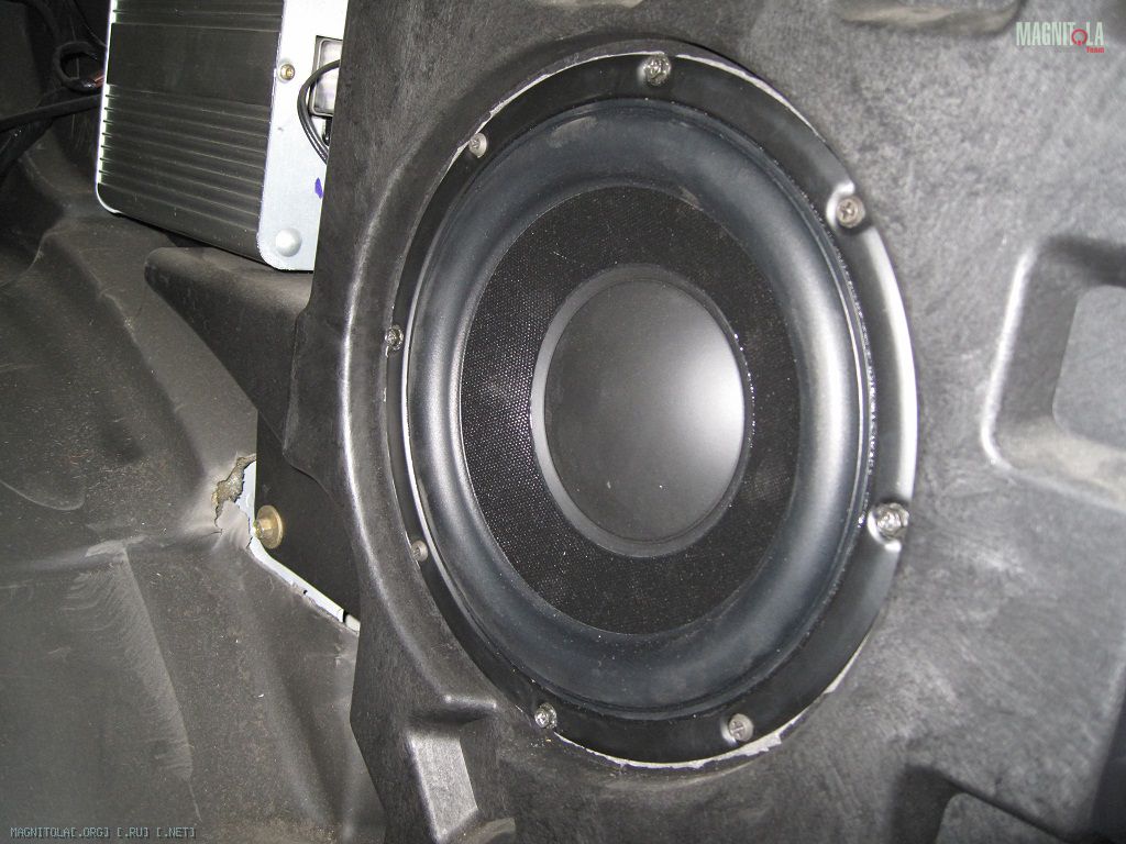 Подвес родного саба разлохматило так, что диффузор превратился в отдельную деталь. В родной корпус отлично встал саб Peerless SLS-315/8. Заиграл обалденно жёсткий и довольно лёгкий бумажный диффузор, большой линейный ход, отличная динамика.