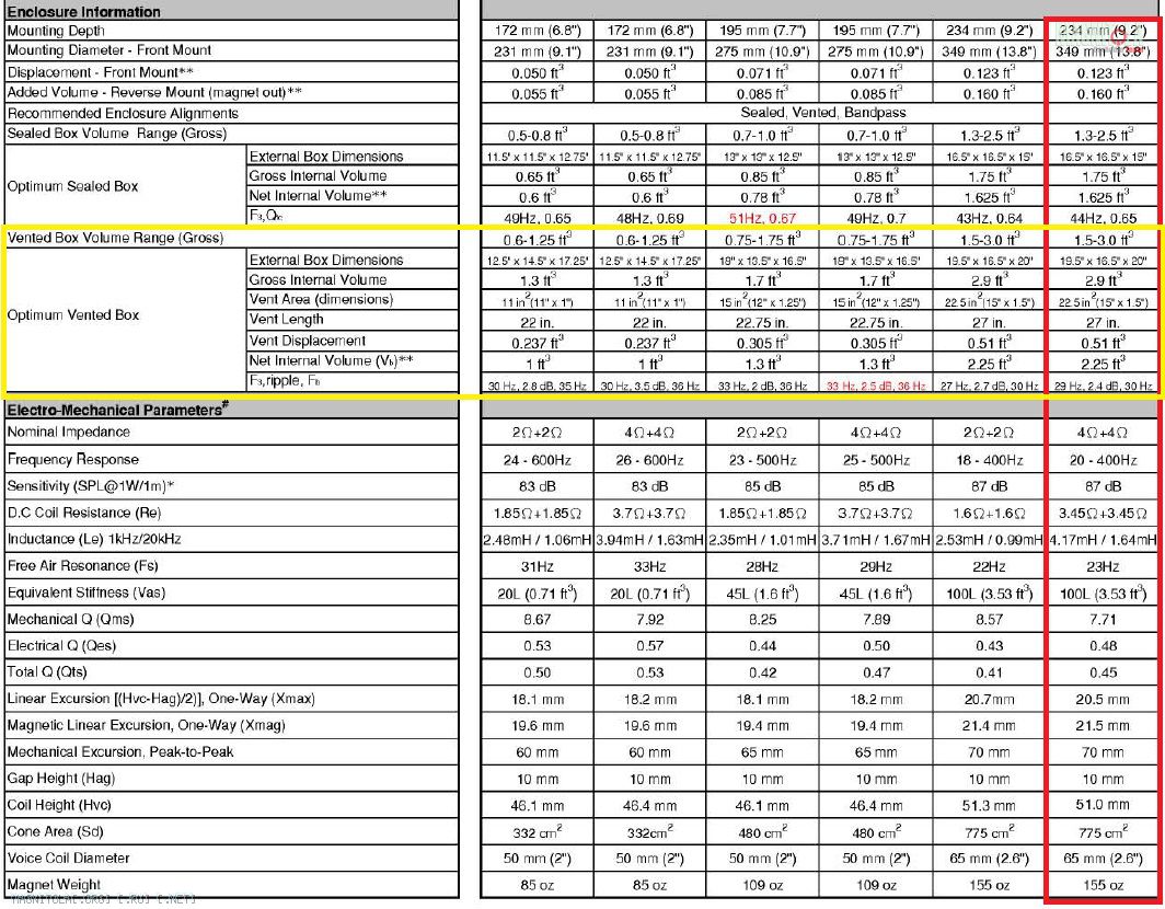 там где NET INTERNAL VOLUME , стоит ** , и объясняется ** - based upon 3/4" (19mm) baffle thickness, with opening cut aprox. to gasket inner diametr.
