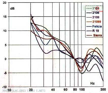 Это графики АЧХ салонов из книг Анатолия Шихатова. Раньше я тоже баловался замерами до 200 герц, но поскольку это лучше делать рано утром(пока тихо), то теперь делаю это не часто. Брал какой нибудь сабик и мерял во флэте его АЧХ на розовом шуме на улице подальше от стен. Микрофон выставлял приблизительно на том же удалении и высоте как саб будет стоять в машине... Потом засовывал саб в машину и снова замерял на тех же уровнях громкости и настройках... Полученные АЧХ вычитал одну из другой и получал АЧХ салона до 200 герц. Не могу сказать , что этот метод очень точен, но по крайней мере бывает ясно что и где опадает и вспучивается. Вот именно из за этих непонятных опаданий/вспучиваний иногда и ФИ с правильной настройкой в машине ведет себя как конфетка. А так еще и надо не забыть о задержках.... Иногда покрутишь и выясняется, что эквалайзер не нужен;)