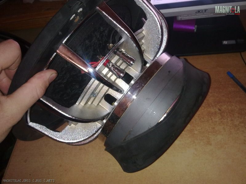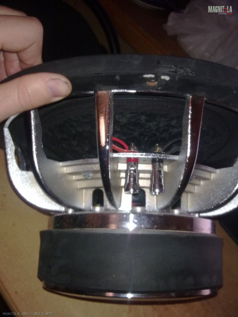 магнитная система, корзина, подвес, подвижка идентичны. Нитки красные только. Если рассмотреть, через окна охлаждения в магнитной системе, на катушке сверху есть пластиковое уплотнительное кольцо, на нем можно увидеть надпись " sundown"