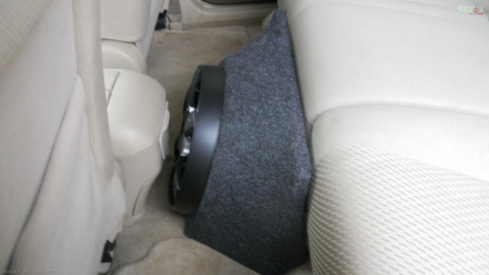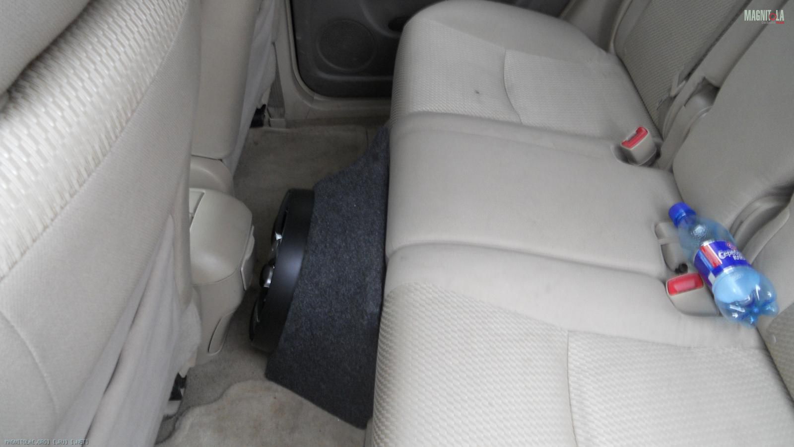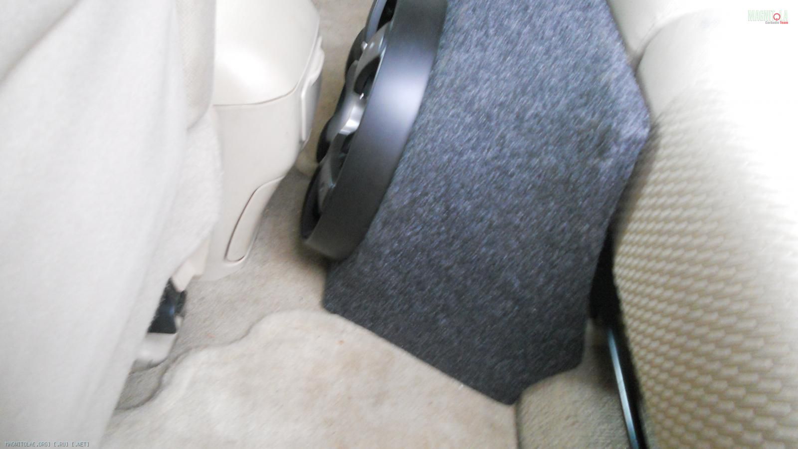 4. Стоит саб в багажнике, направлен на подлокотник, между сабом и спинкой сиденья пространство 20 см.