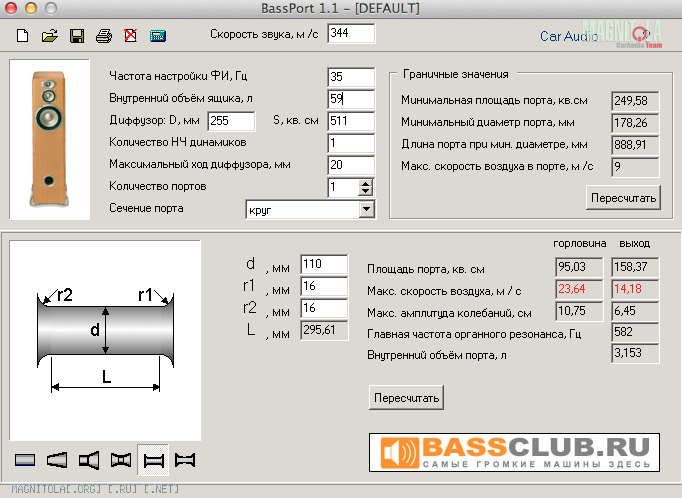 Прикладываю фото расчетов в Bassport и изображения портов. Фото сабвуфера и описание компонентов на первой странице. Заранее благодарю за помощь.