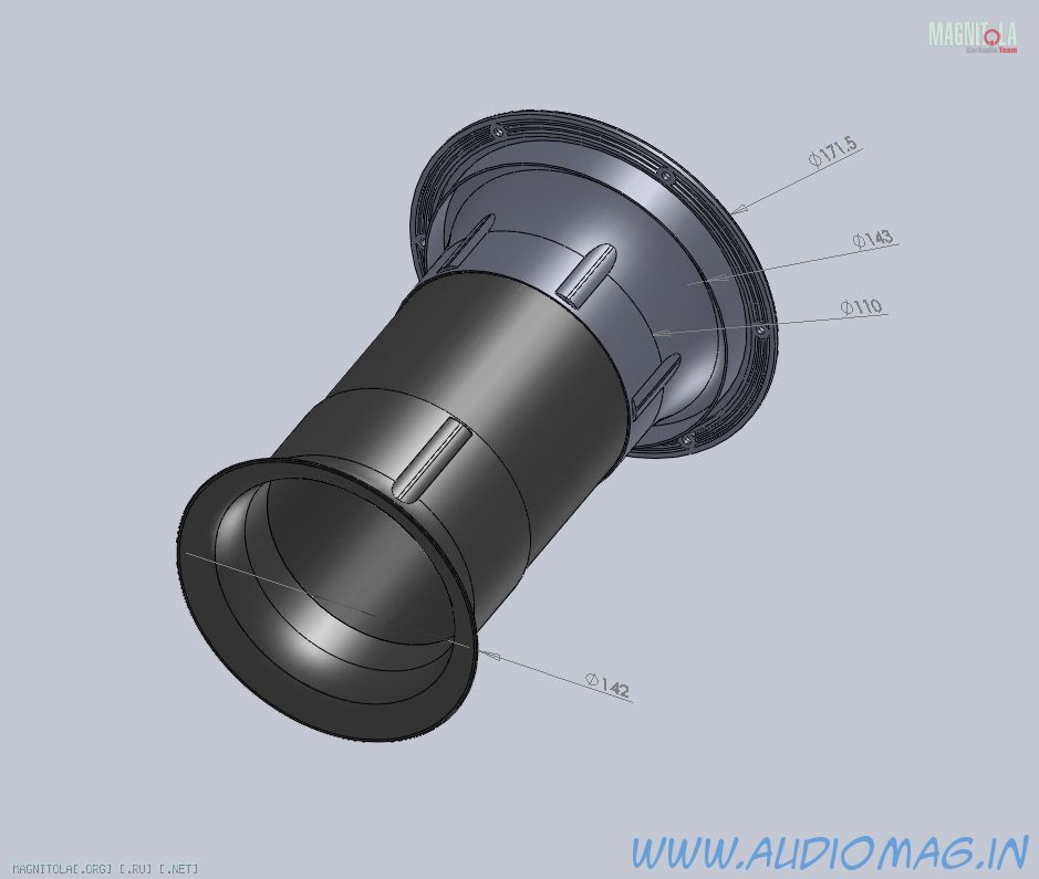 2) если посмотреть на изображения портов, то у порта диам. 110 мм площадь на выходе после "раскрытия" составляет (14,3/2)2х3.14=160 кв.см, а порт диам. 75 мм после "раскрытия" имеет площадь на выходе (11,6/2)2х3,14=105 кв.см и, т.к. портов 2 шт, то суммарно выходит 210 кв.см